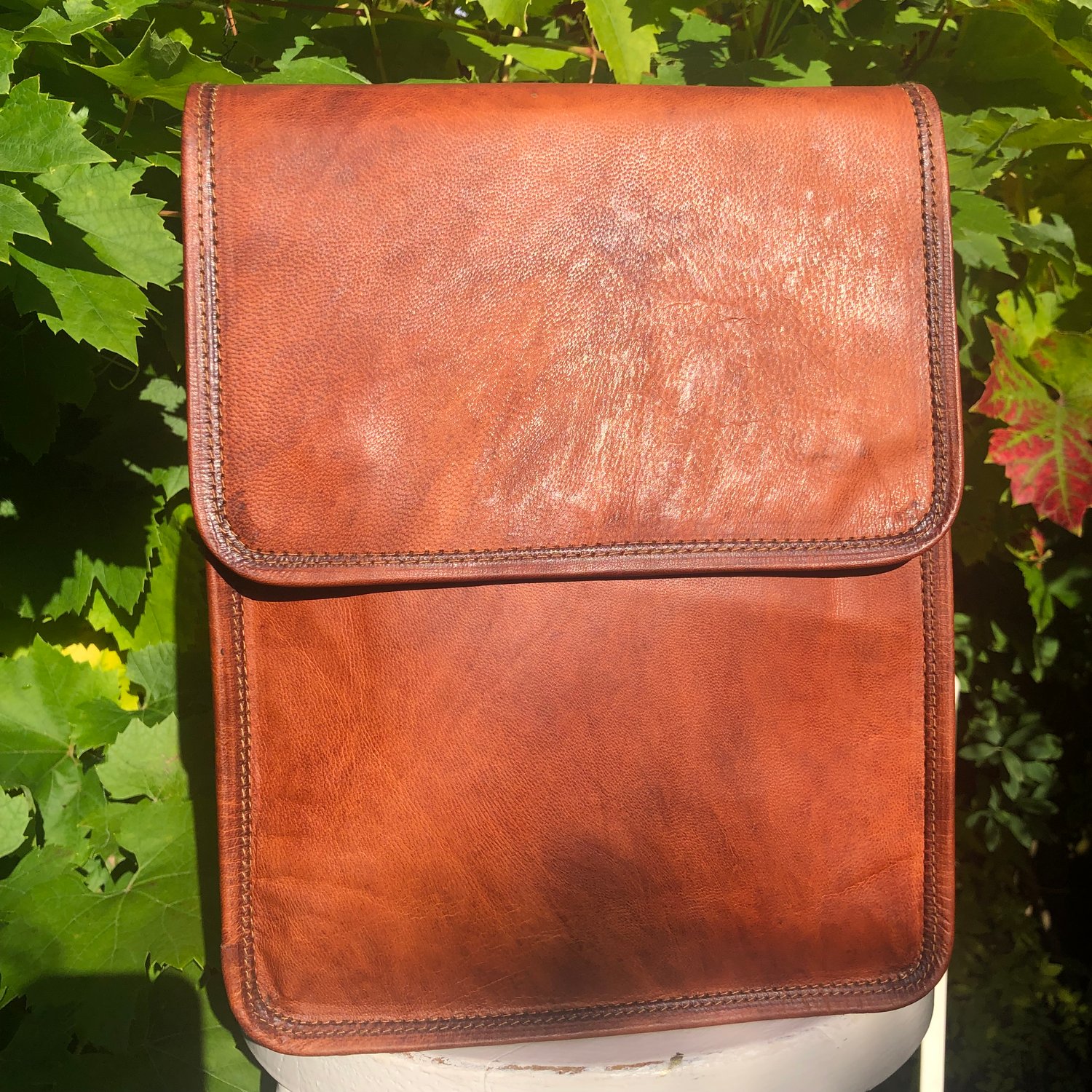 Rustic leather unisex satchel/ipad bag. This goat skin leather bag has been oiled and dried in the Indian sunshine and will improve with age.