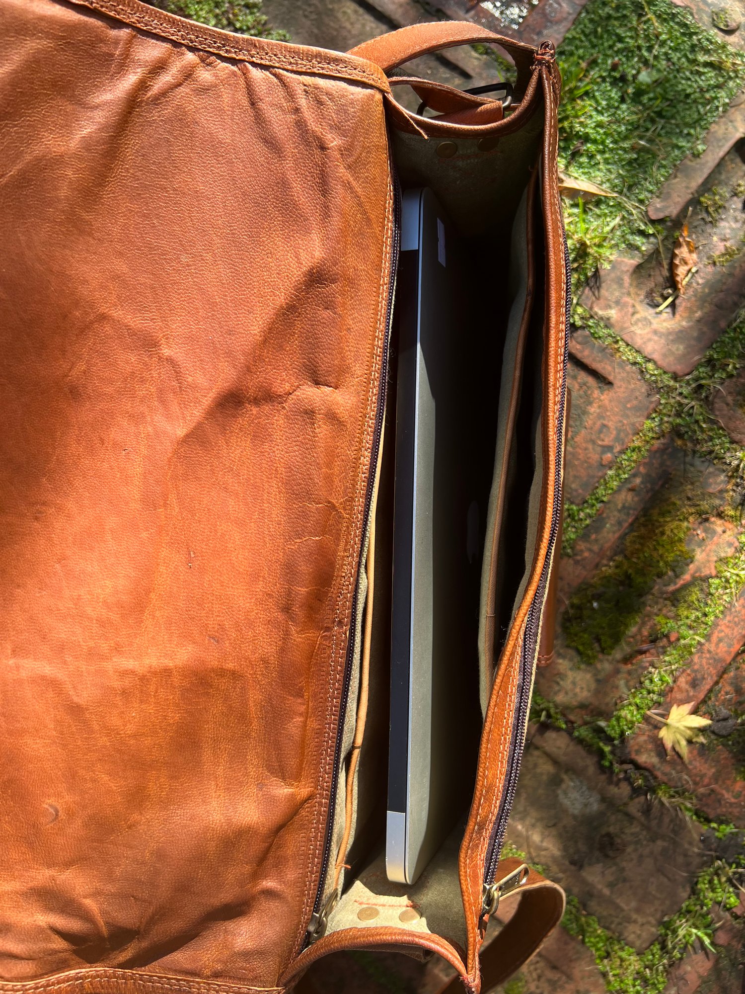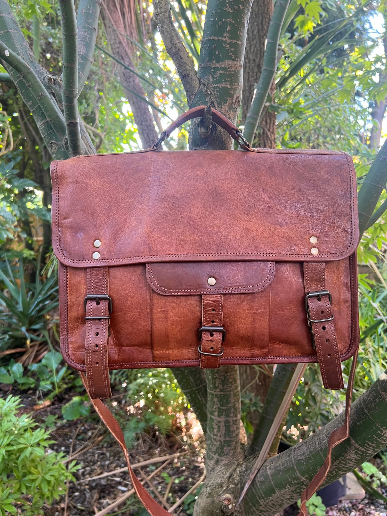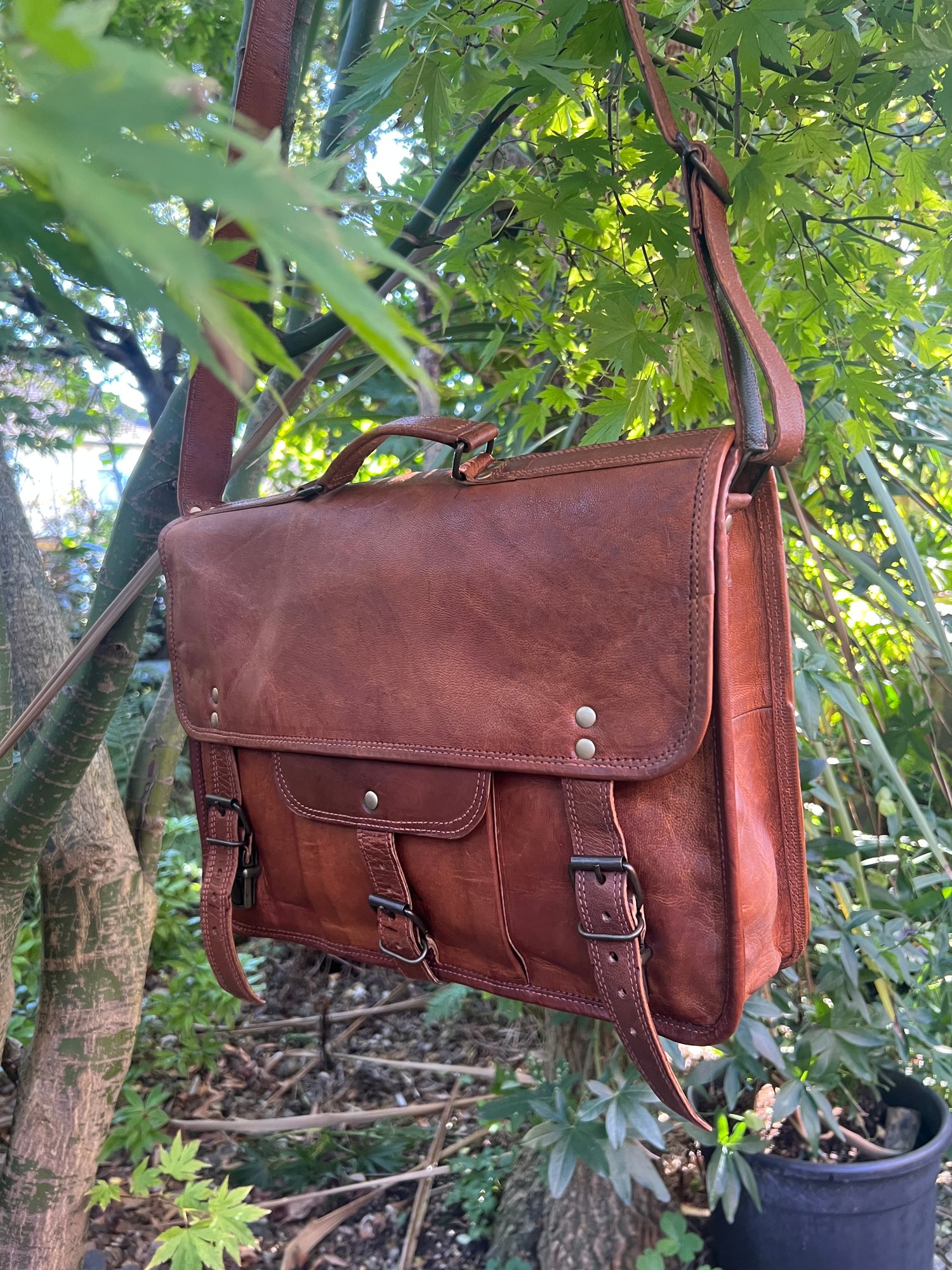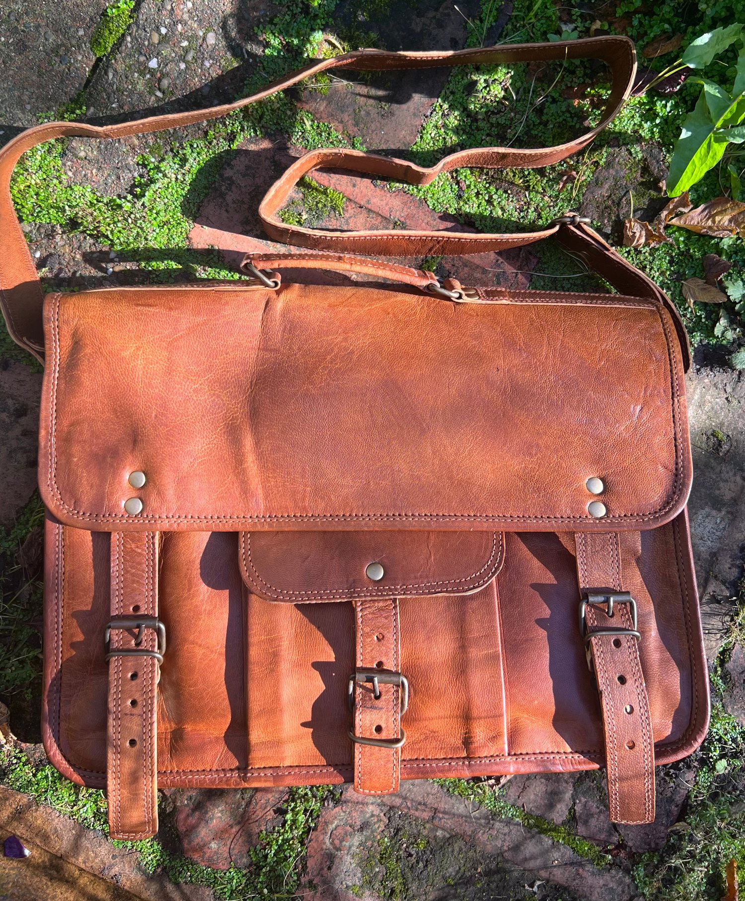 This spacious handmade crossbody messenger is made from leather which is oiled and dried in the Indian sunshine giving it a distressed vintage finish. The leather softens and the colour deepens with age.