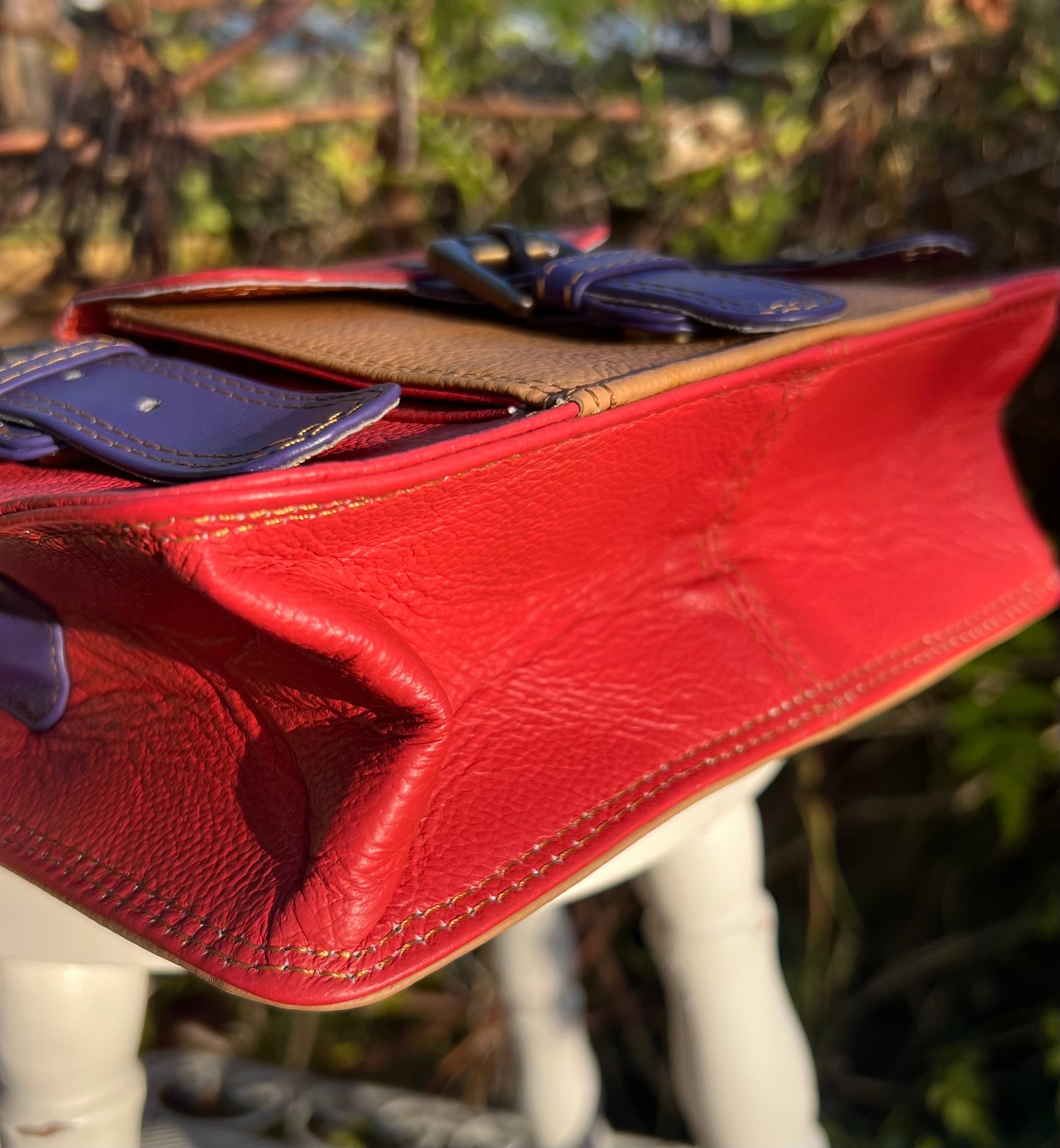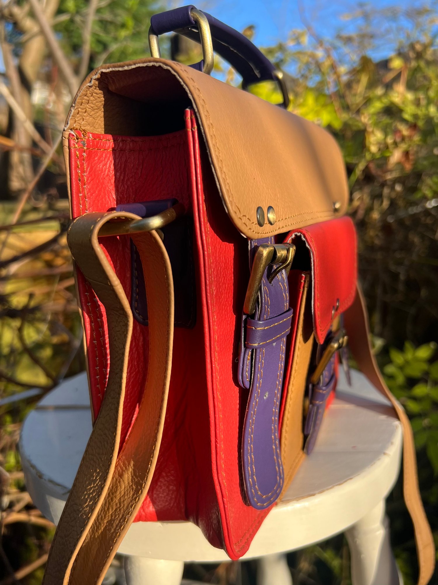 Our traditional satchels are practical and ever-popular, so we incorporated the design using buffalo leather offcuts. With long strap and a useful carry handle, this one-of-a-kind bag is so cute, it definitely should be in every girl's wardrobe.
