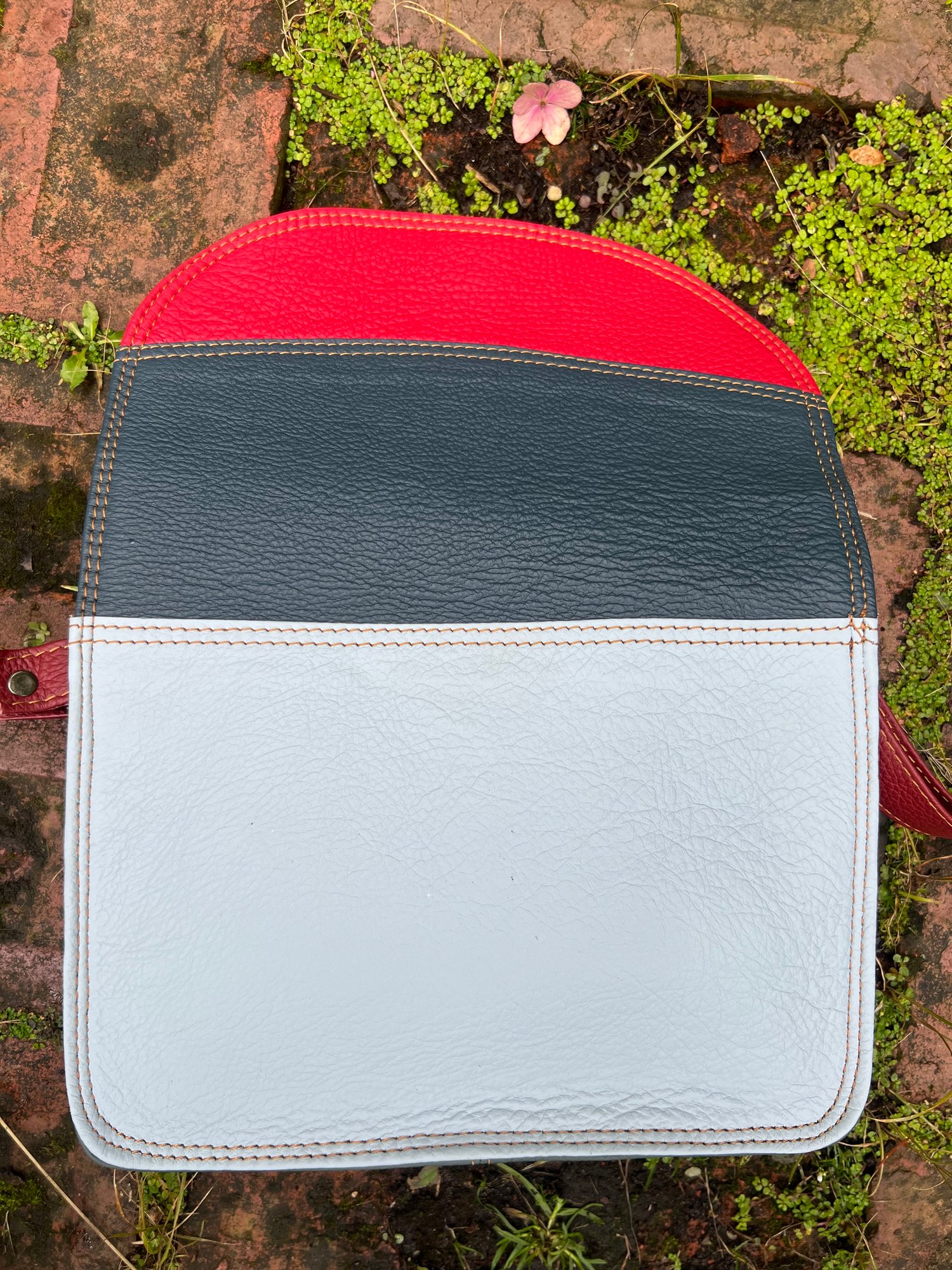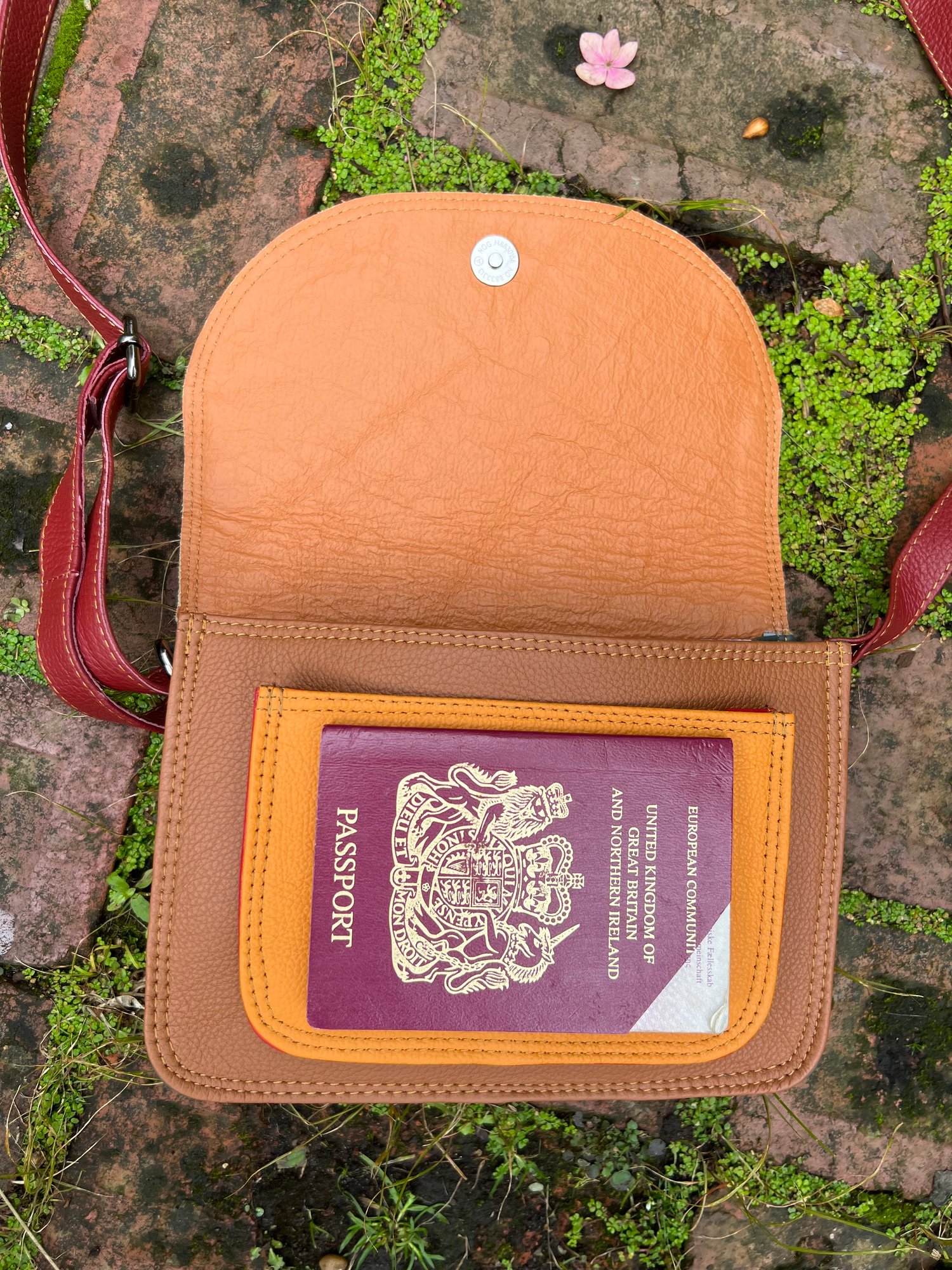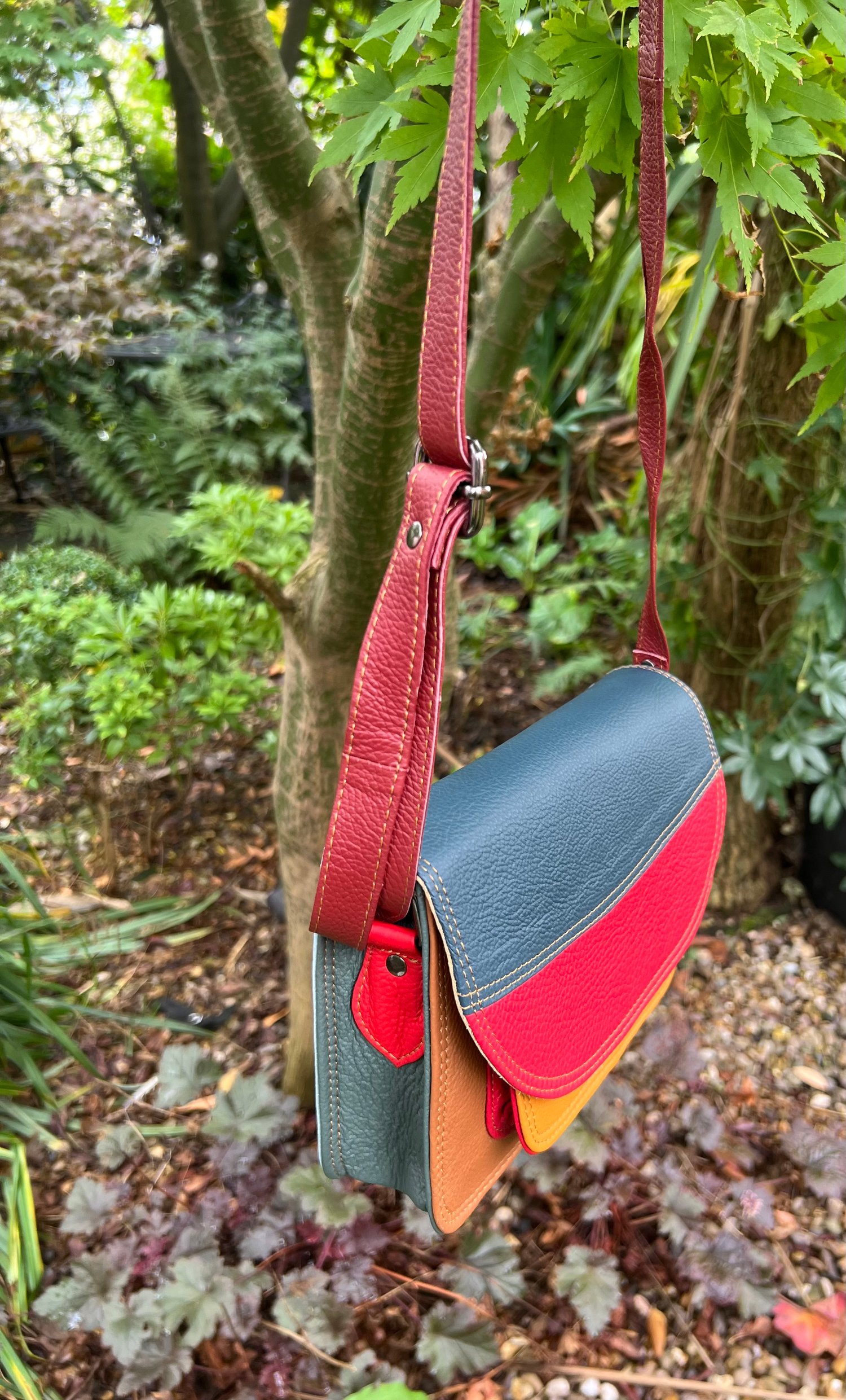A simple stylish bag of fabulous colours, which will brighten up any outfit. Crafted by our Indian artisans from leather offcuts, it’s a unique, one-of-a-kind bag - and a really useful size.