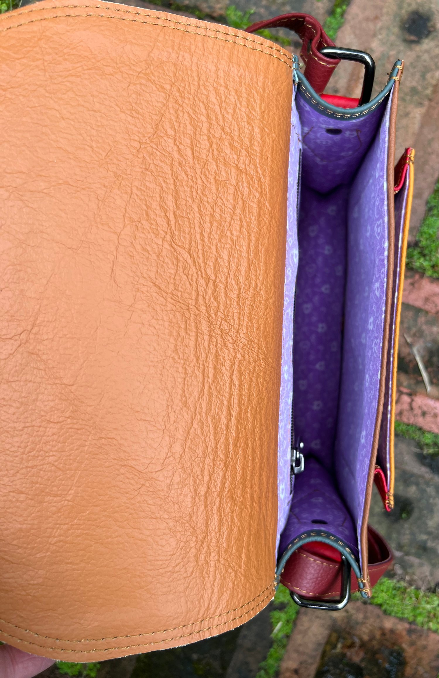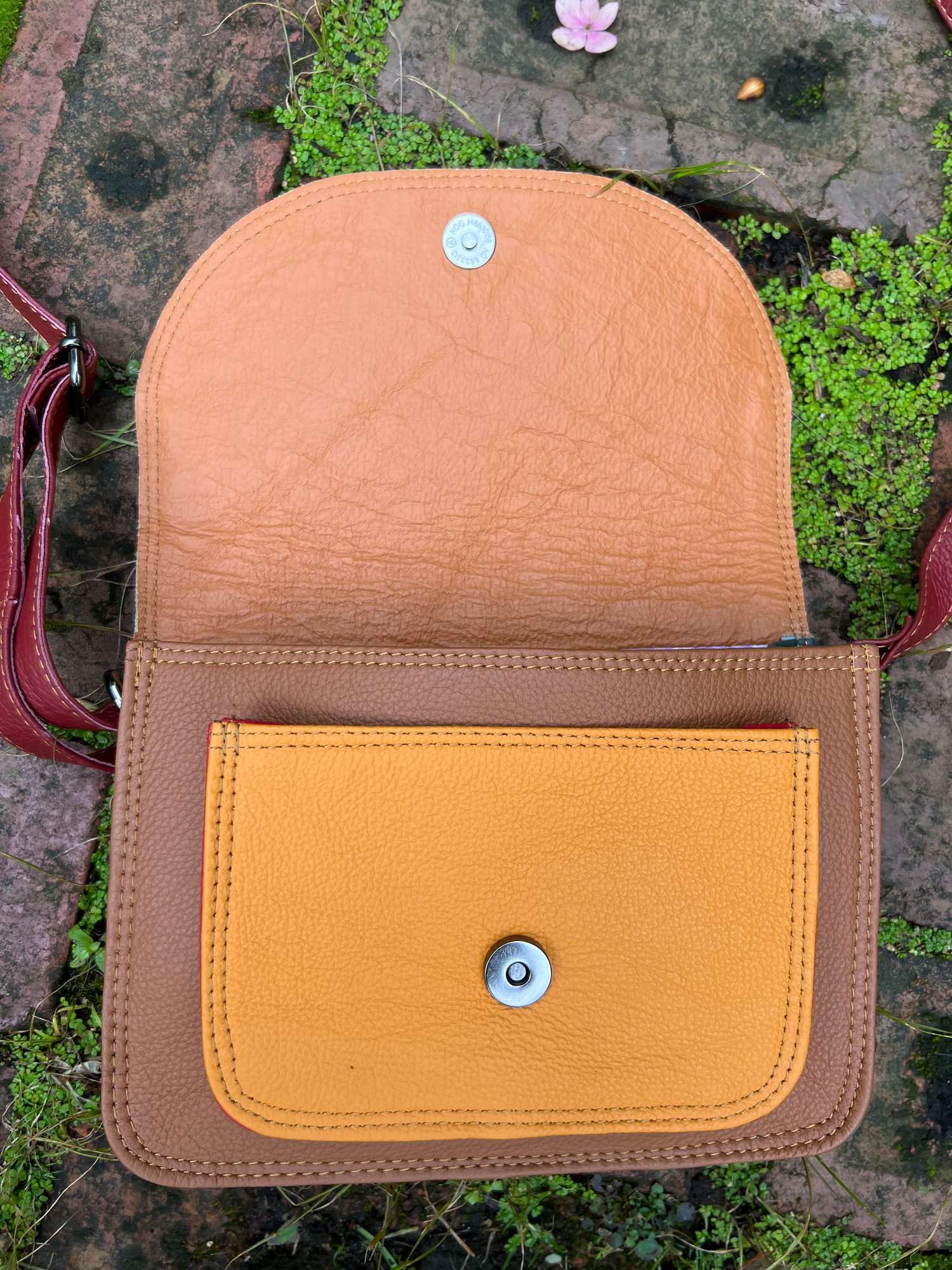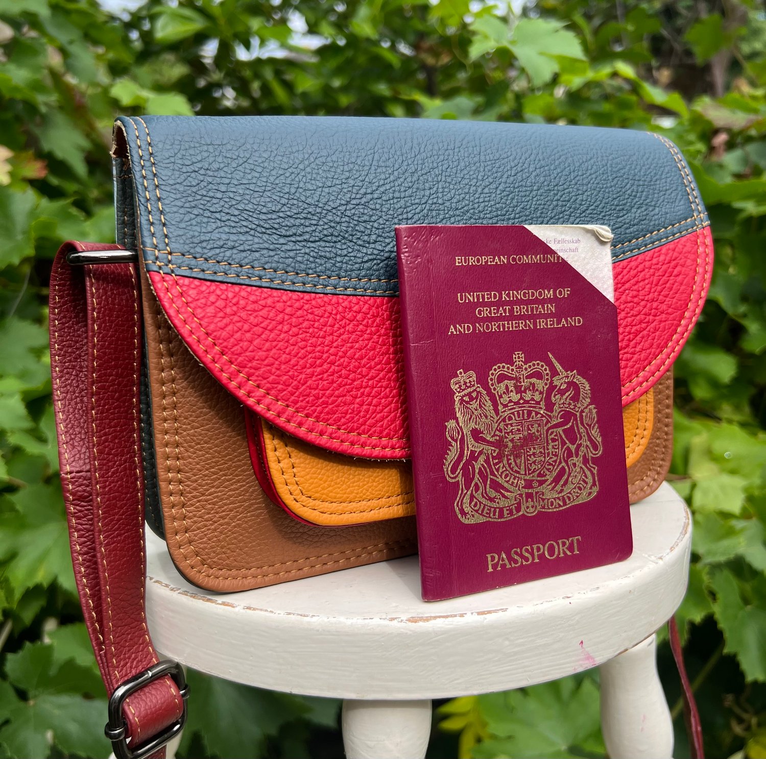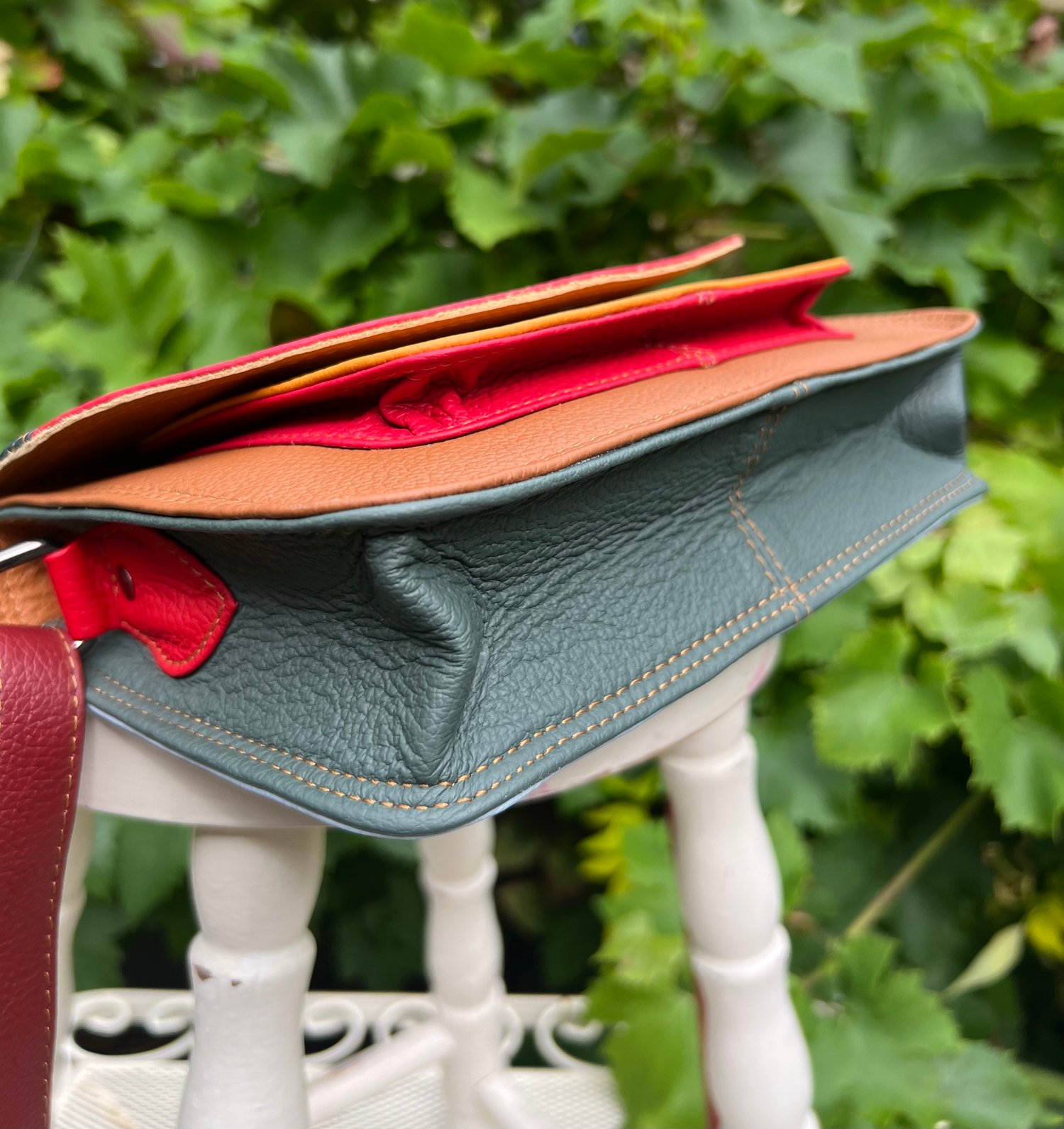 A simple stylish bag of fabulous colours, which will brighten up any outfit. Crafted by our Indian artisans from leather offcuts, it’s a unique, one-of-a-kind bag - and a really useful size.