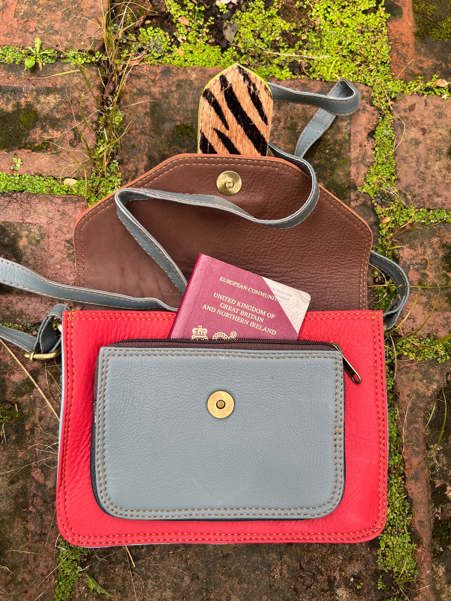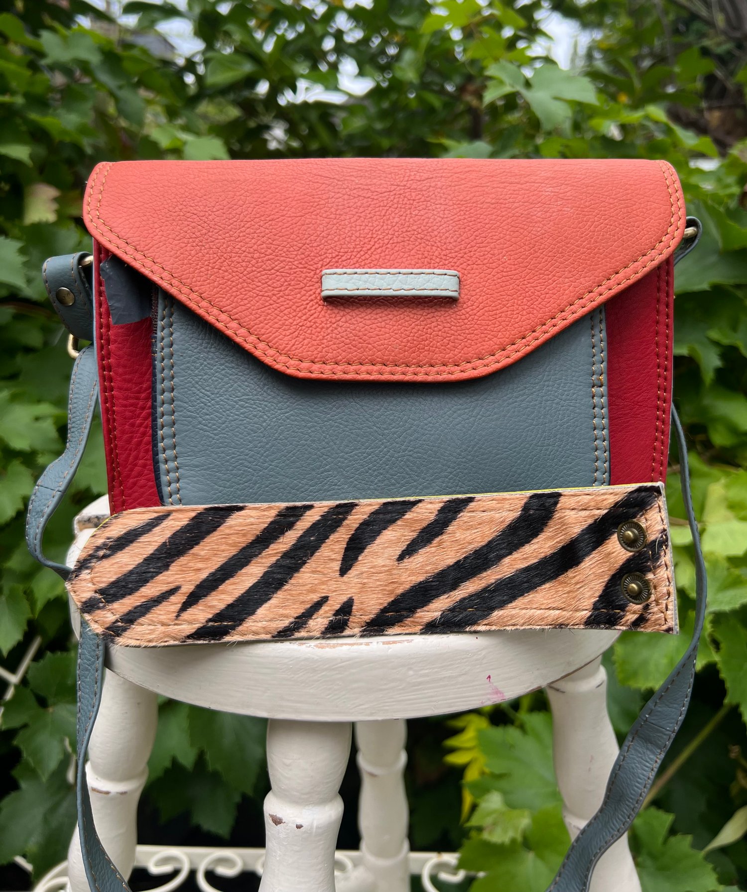 Here’s a useful little bag, with two looks! The central detail has a plain or animal print side and is easily interchangeable!