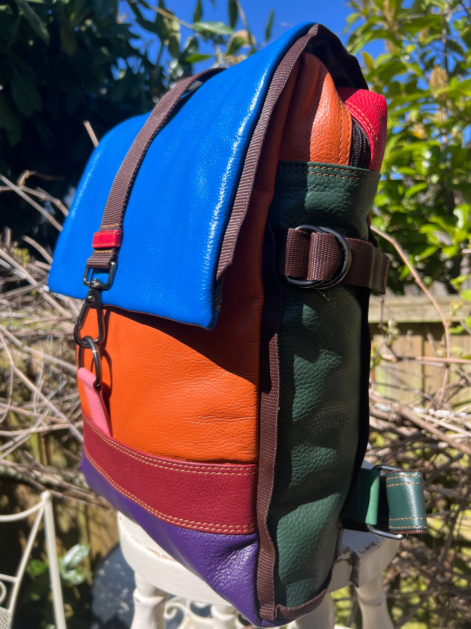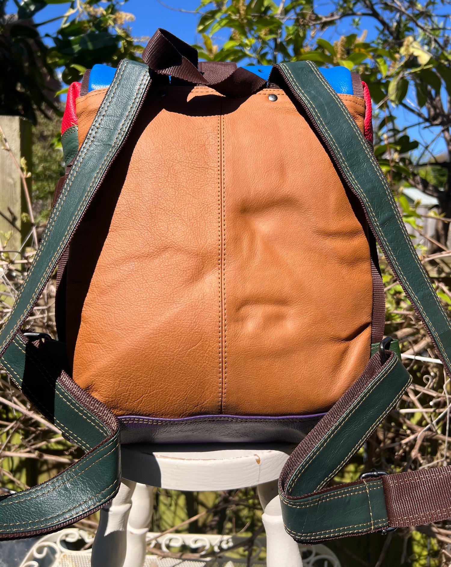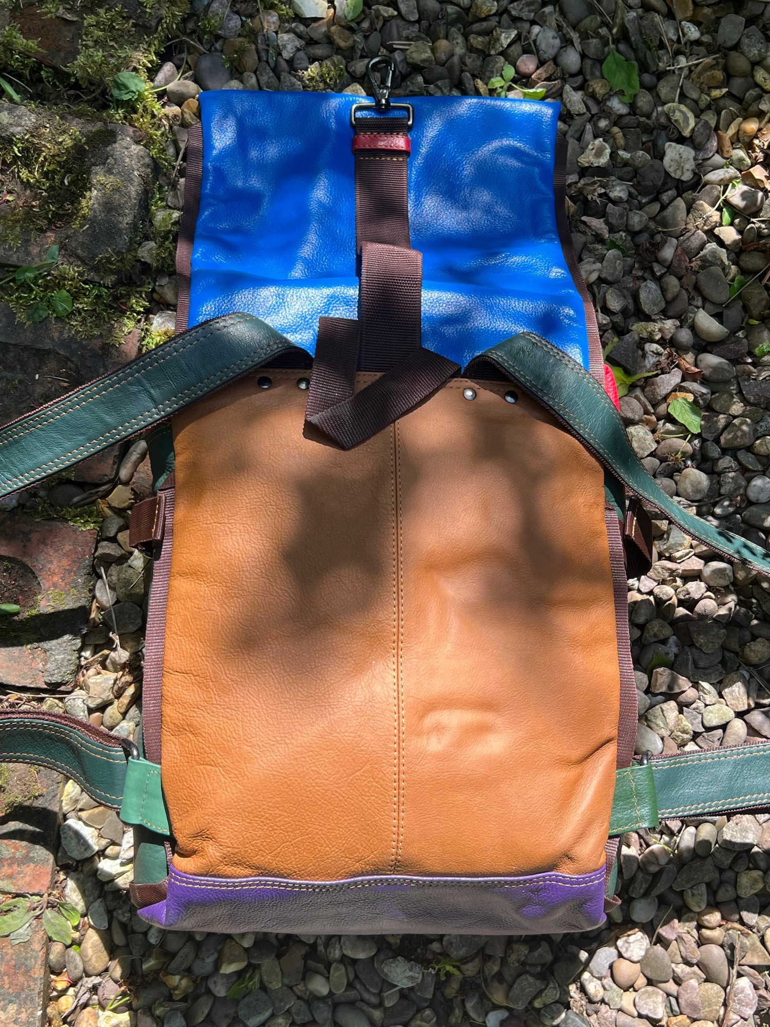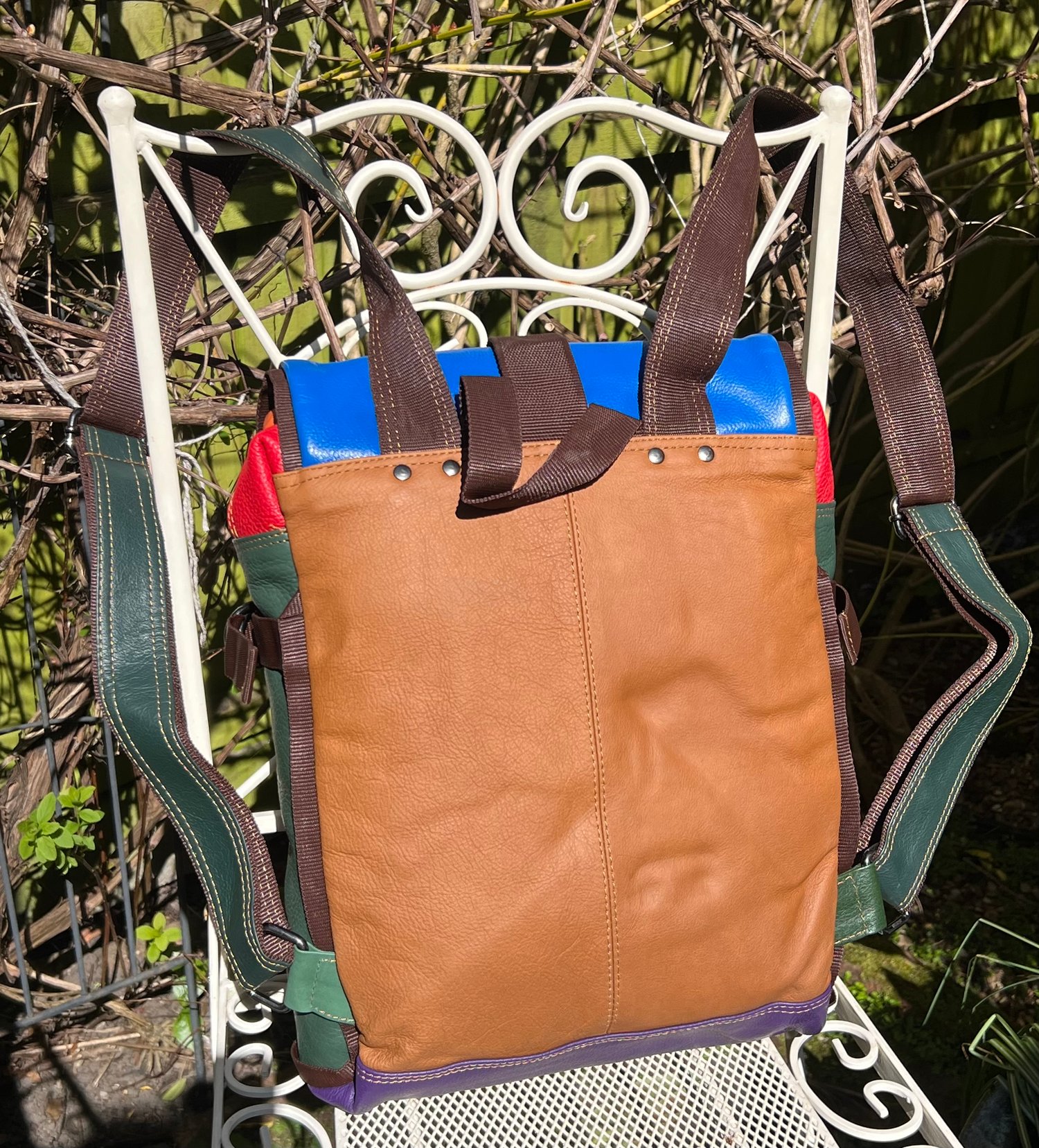 We tried to combine a large useful backpack with a large useful baby changing bag and came up with this. Soft strong buffalo leather, which is also lightweight at only 1kg.