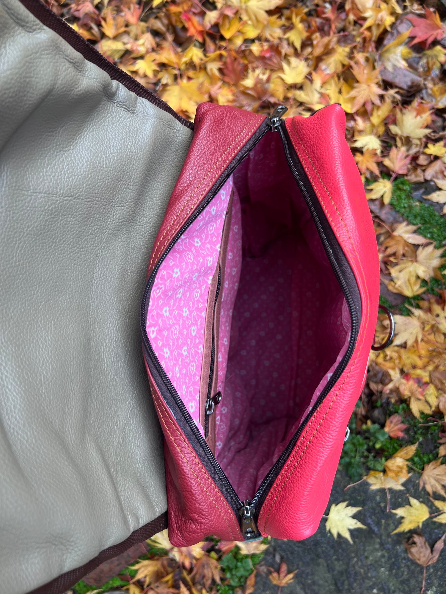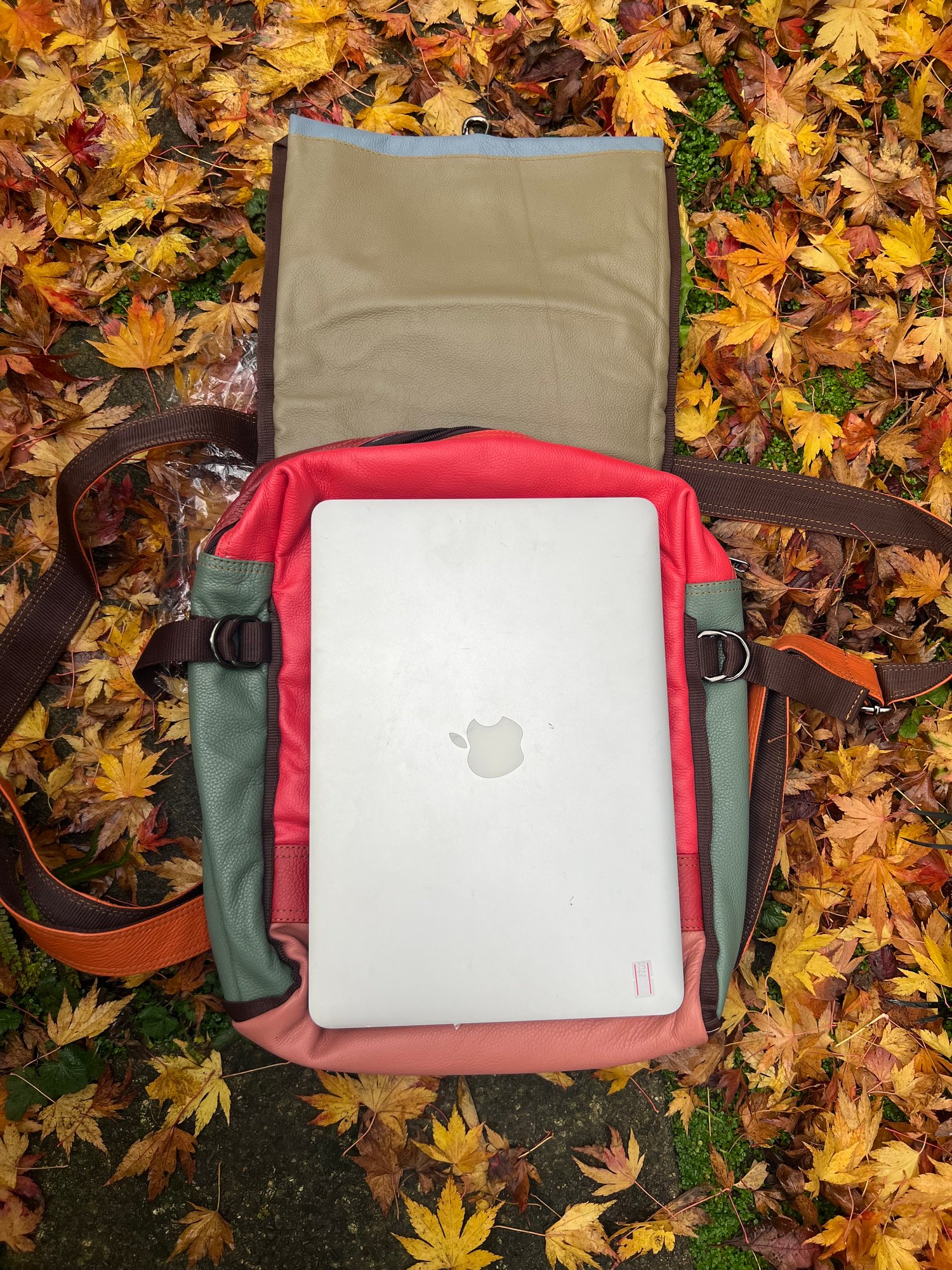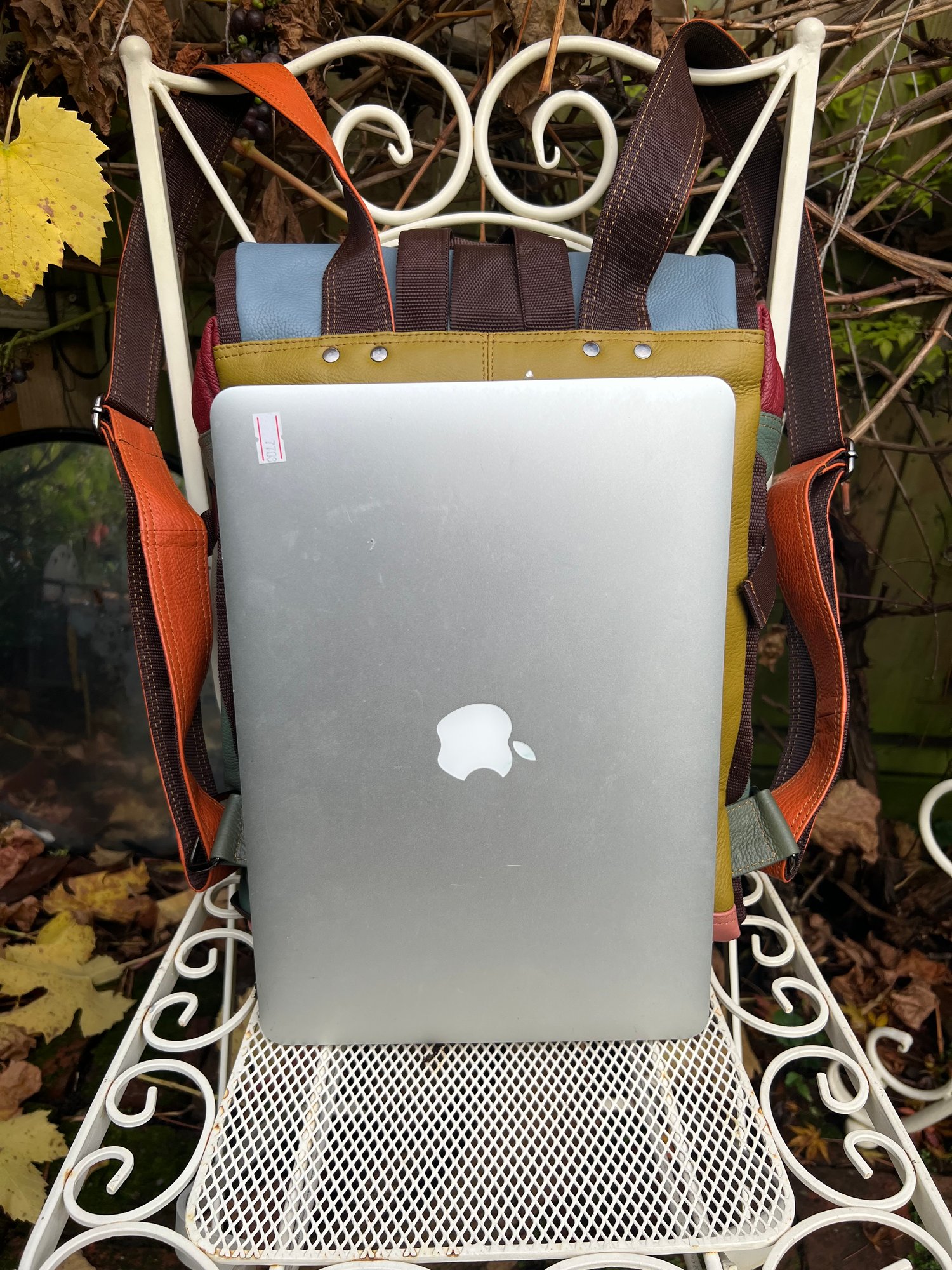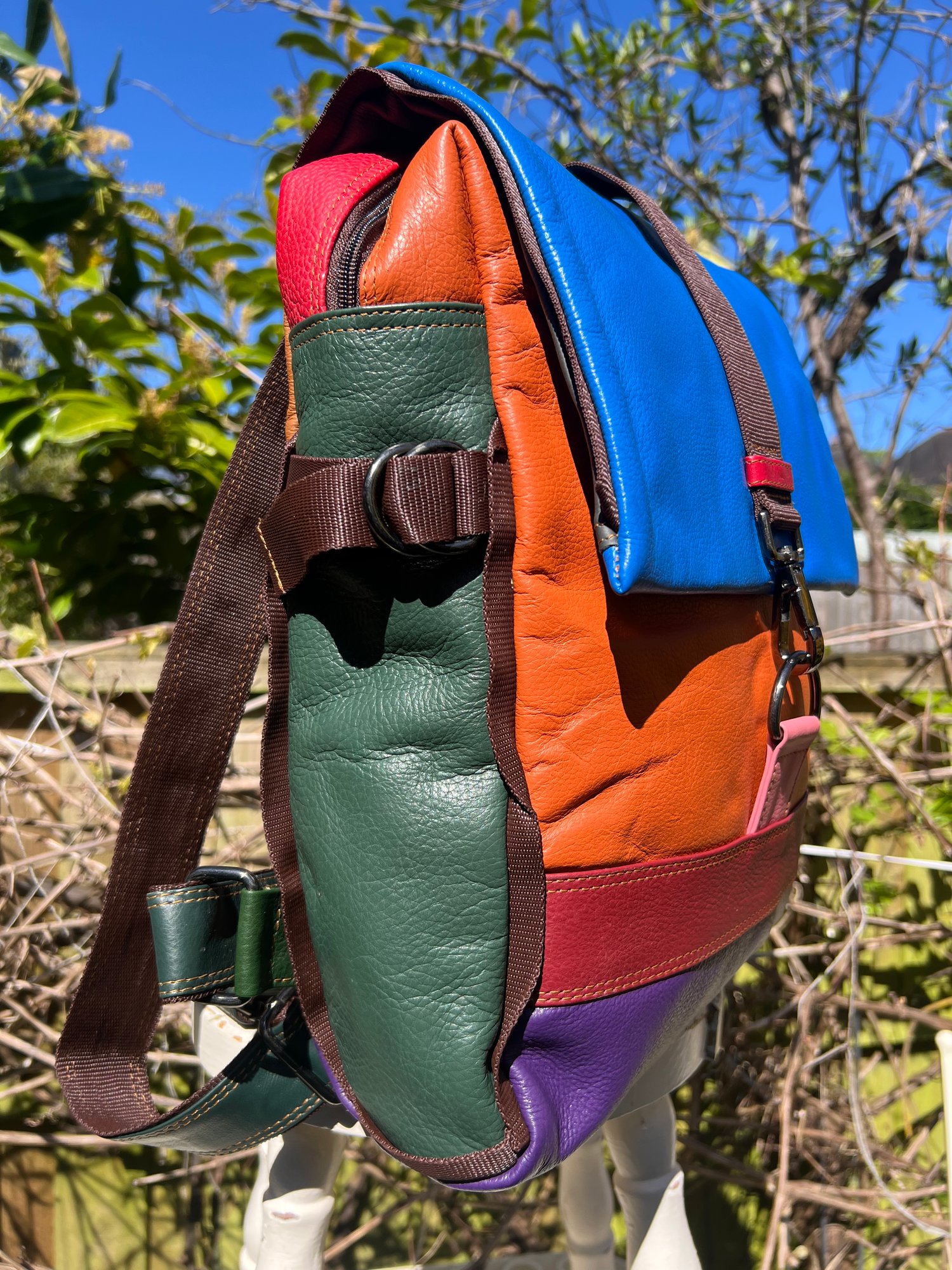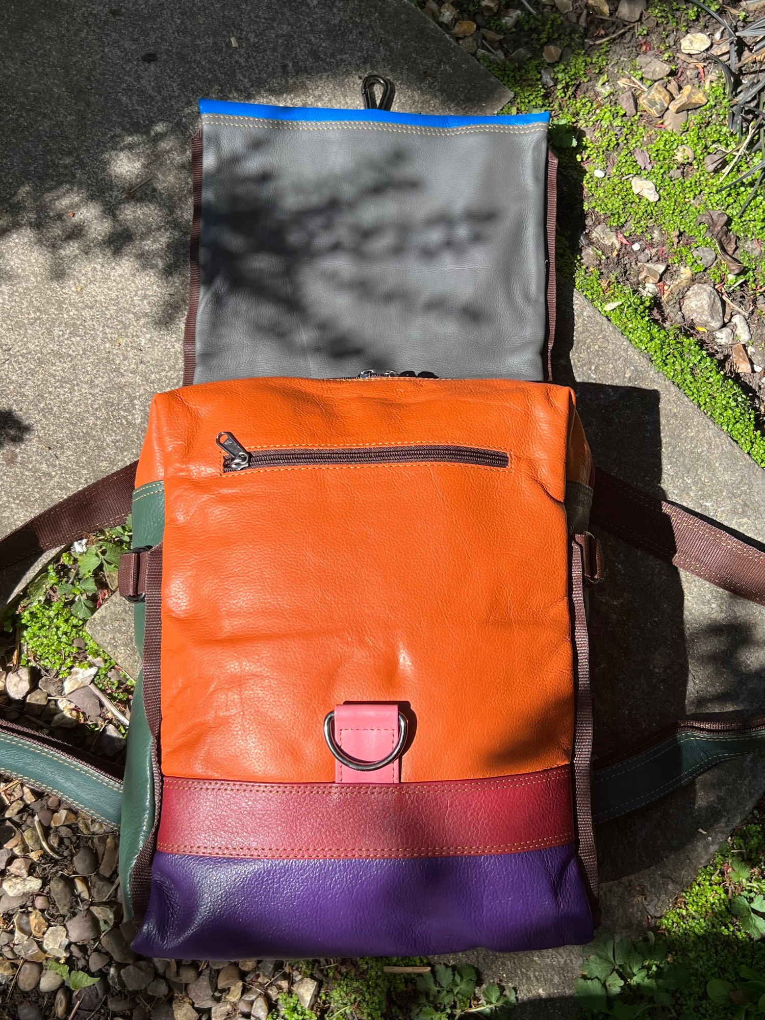 We tried to combine a large useful backpack with a large useful baby changing bag and came up with this. Soft strong buffalo leather, which is also lightweight at only 1kg.