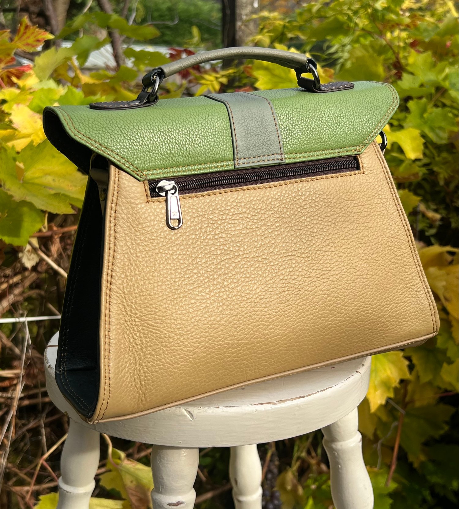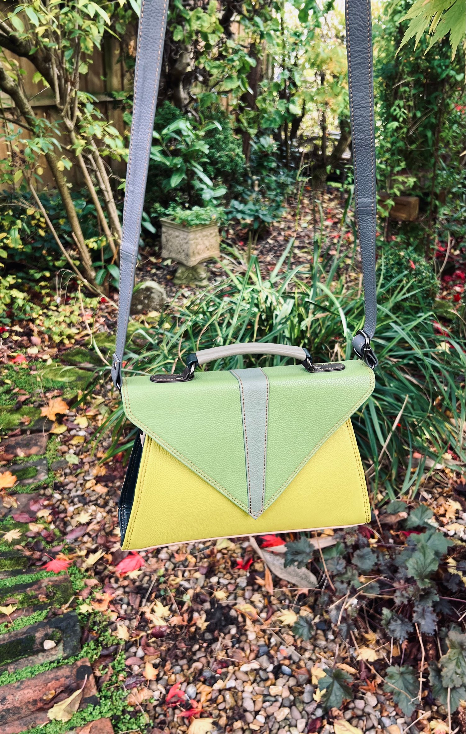 Top handle, clip-on shoulder strap and the triangular flap fastens with a magnetic stud.