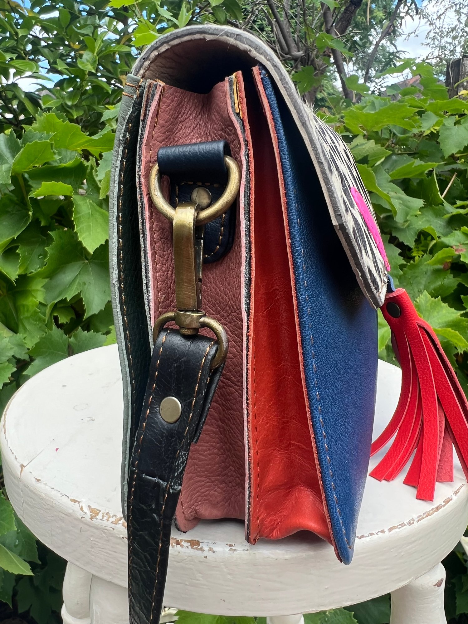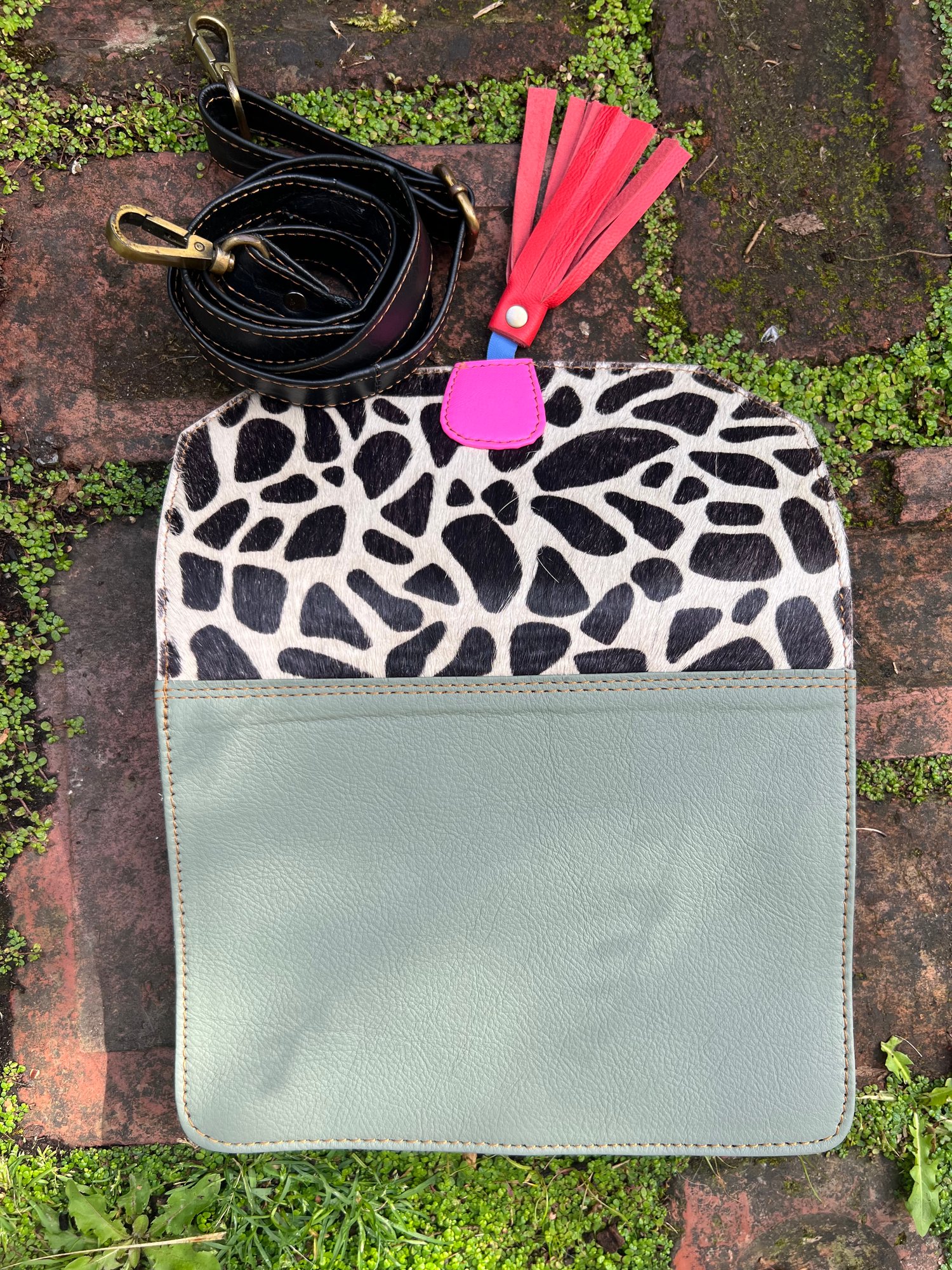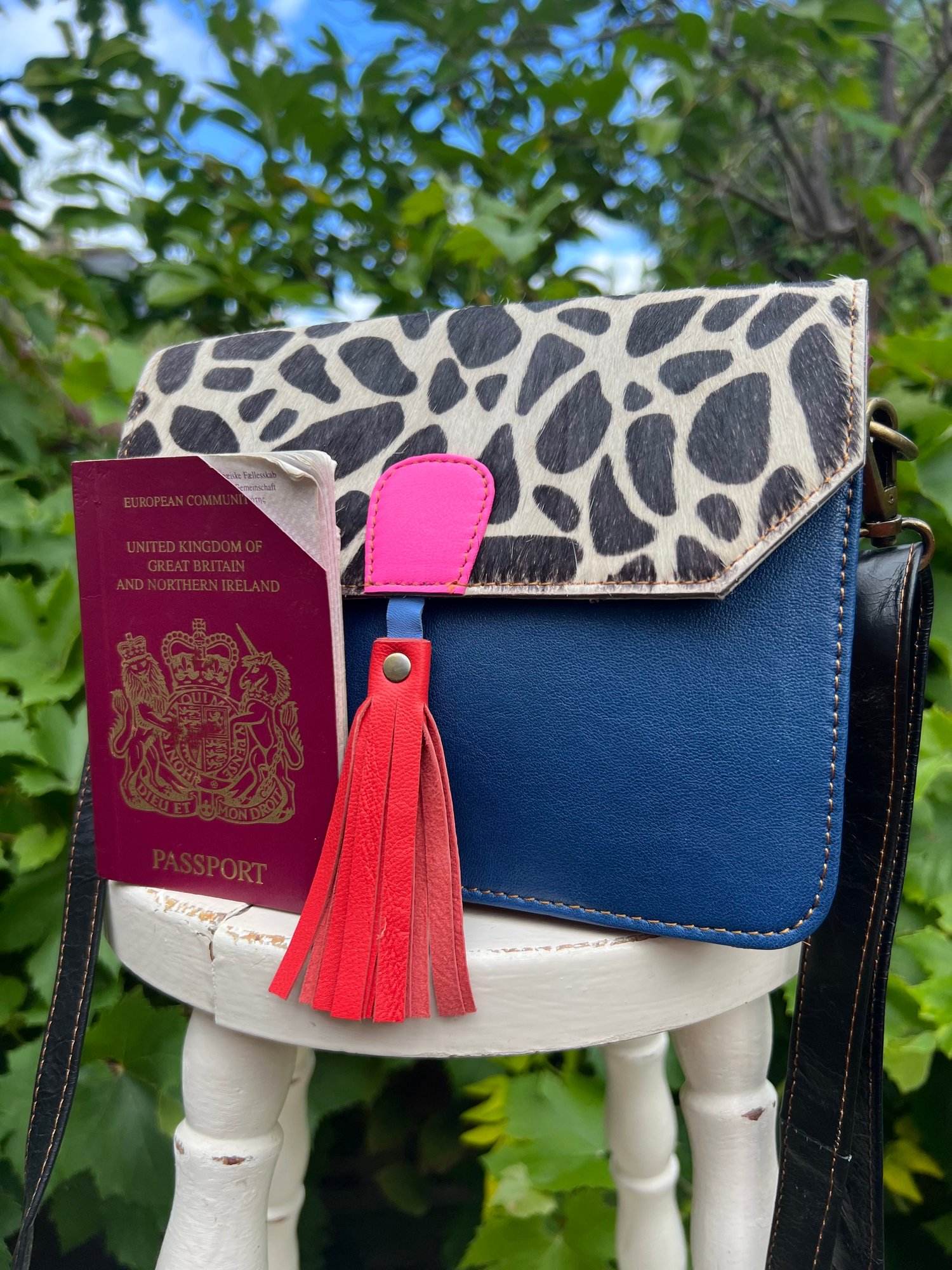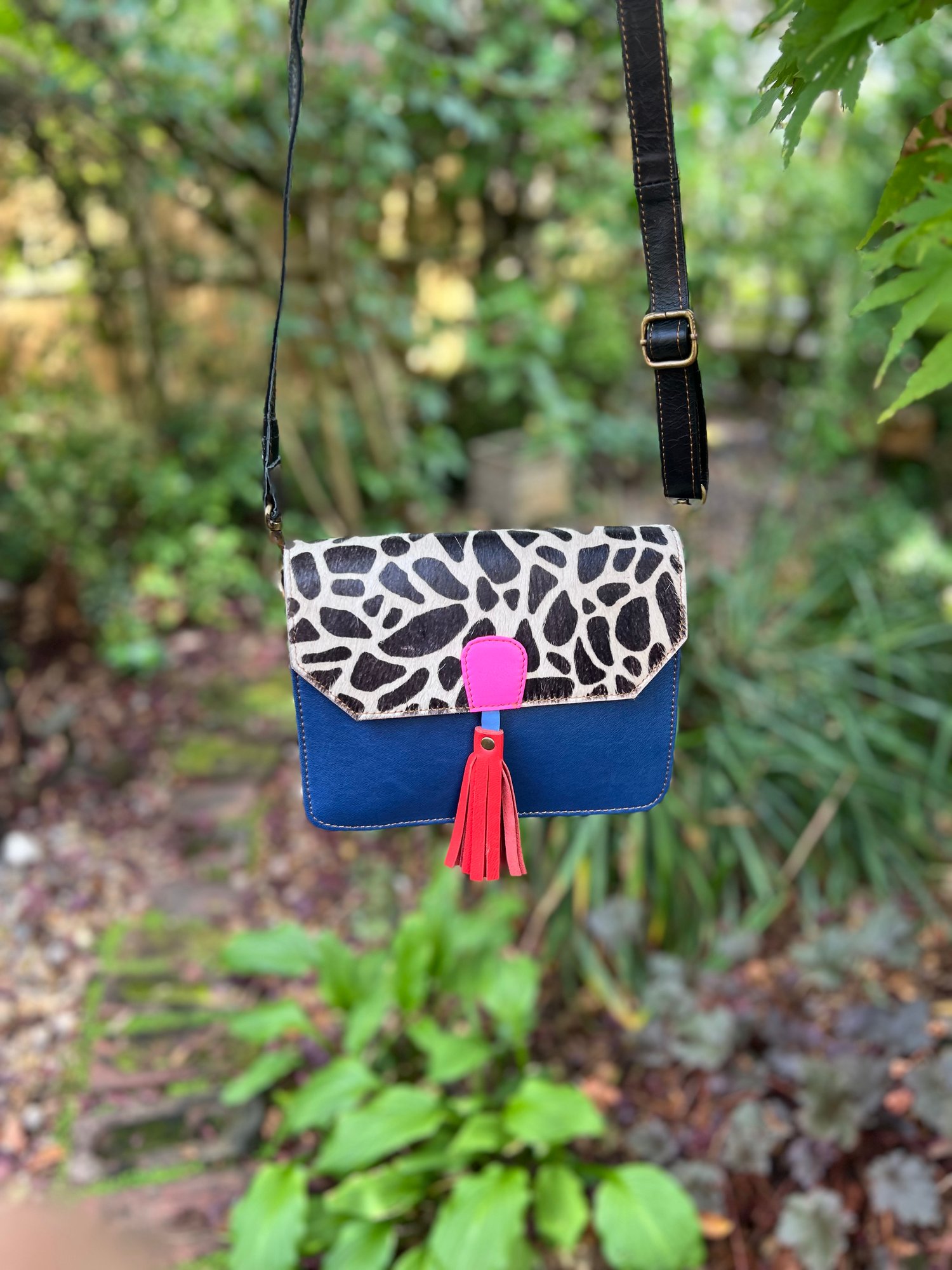This fabulous leather/animal print bag is made in India from offcuts of leather which would otherwise go to landfill. No exotic animals have been used to produce these bags, they are zerowaste, sustainable and made from printed goat skin. They have been beautifully crafted together to produce what will certainly be a talking point when you take it out.
