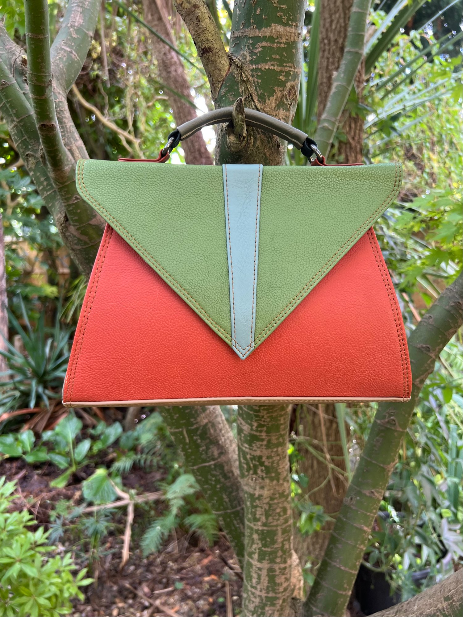 Top handle, clip-on shoulder strap and the triangular flap fastens with a magnetic stud.