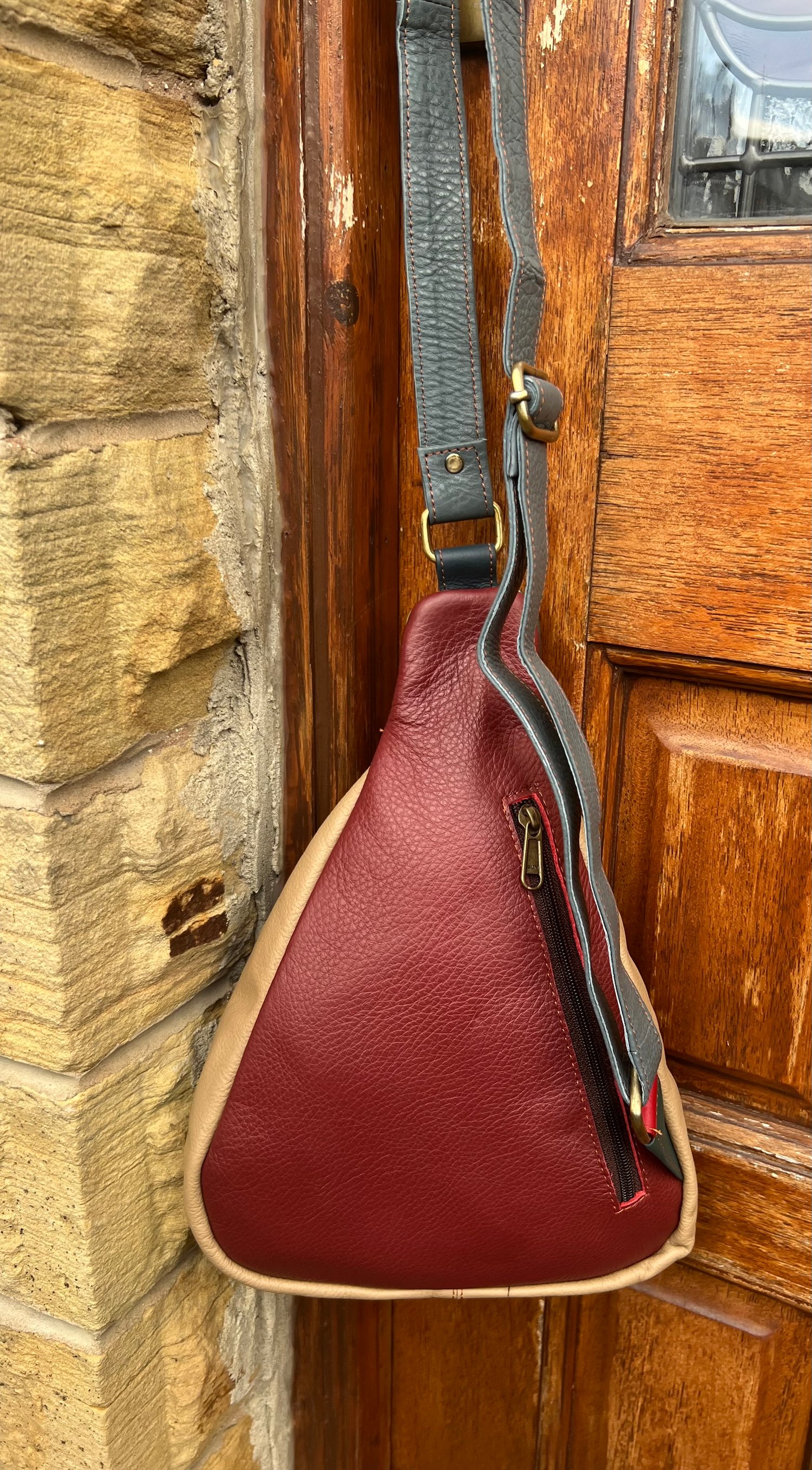 Harlequin Collection - Recycled leather Triangle Sling #TS1