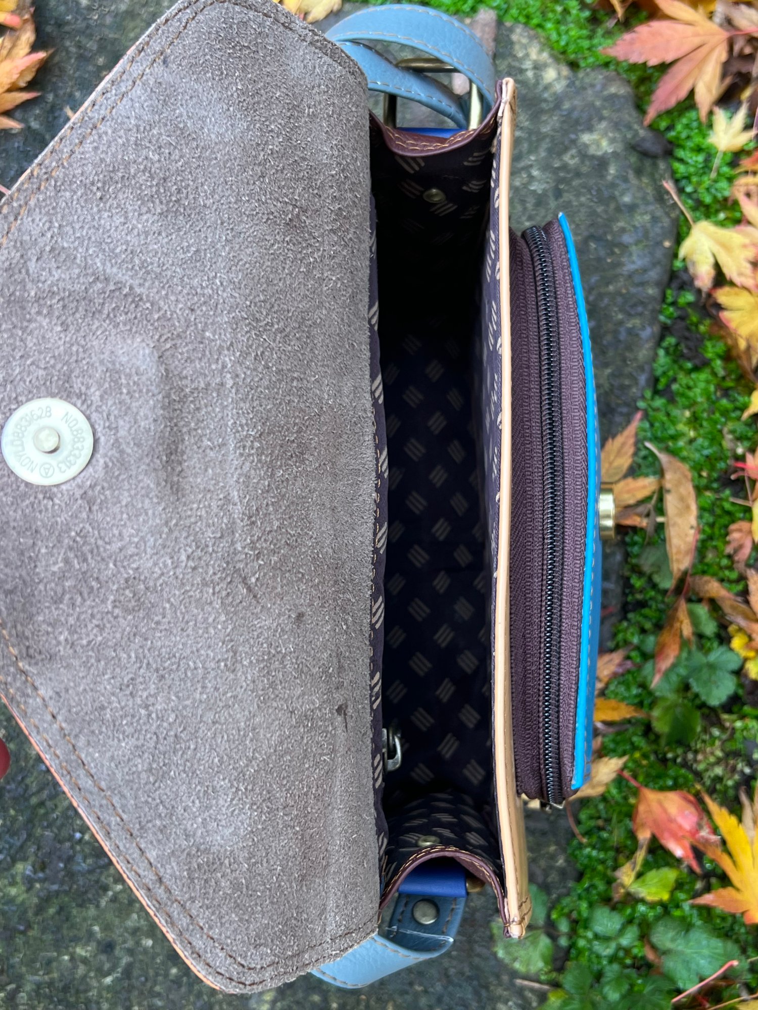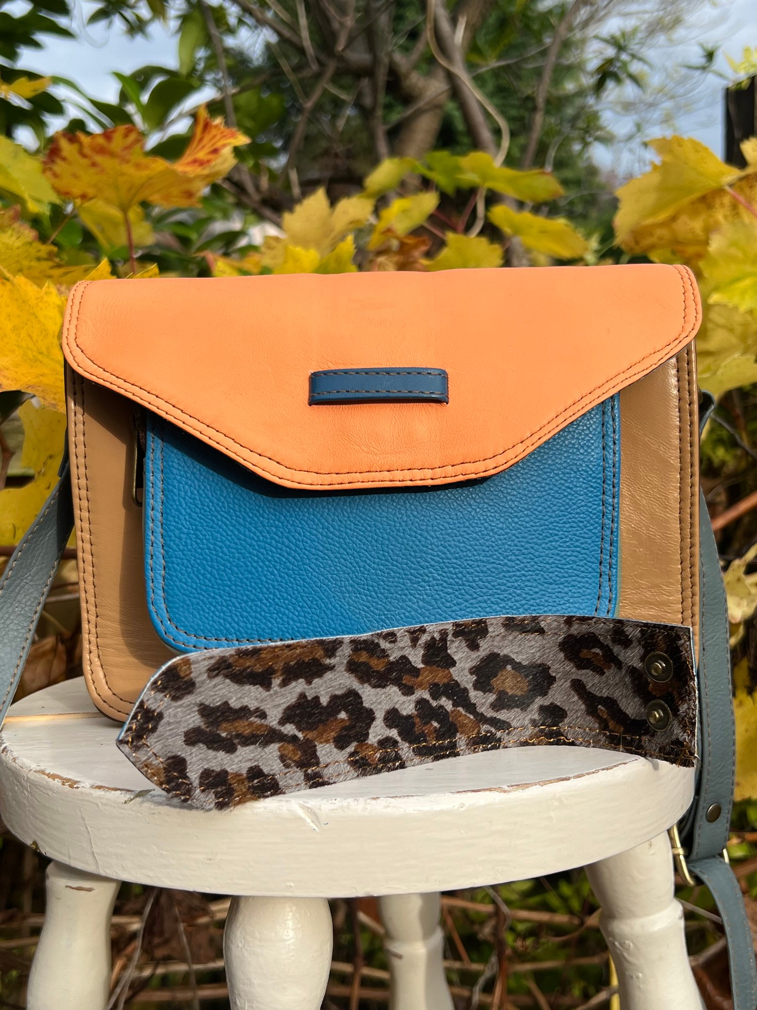 Here’s a useful little bag, with two looks! The central detail has a plain or animal print side and is easily interchangeable!