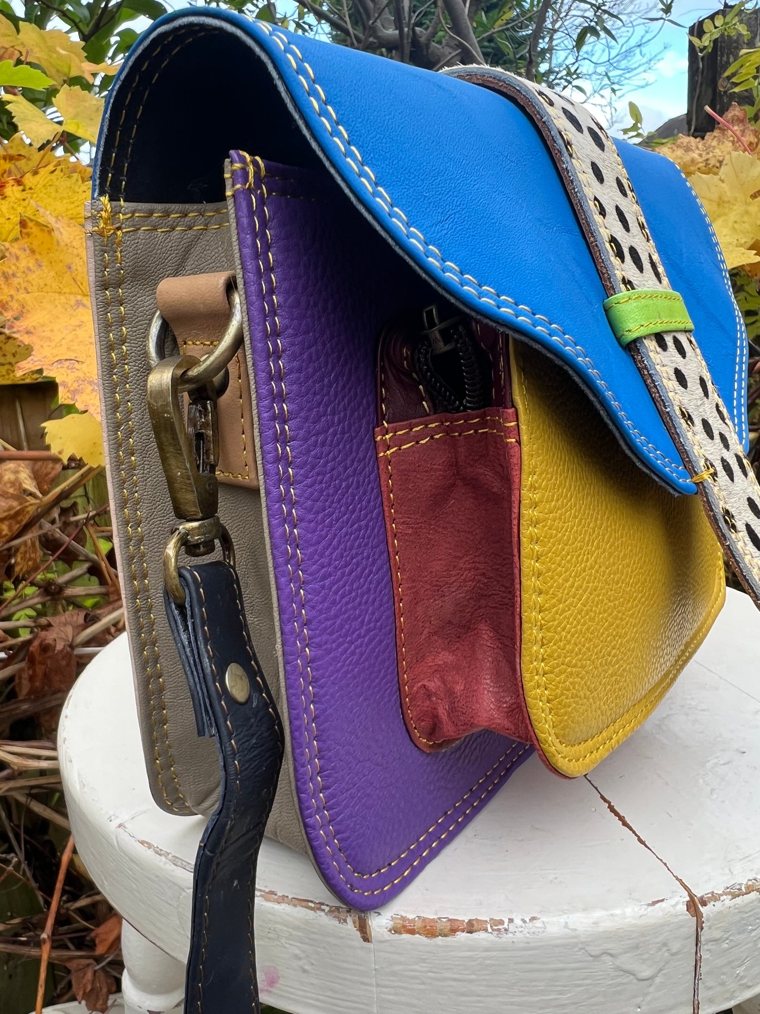 Crafted from leather offcuts using fabulously vibrant colourways,