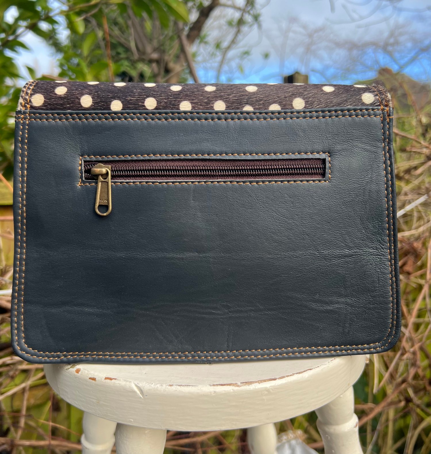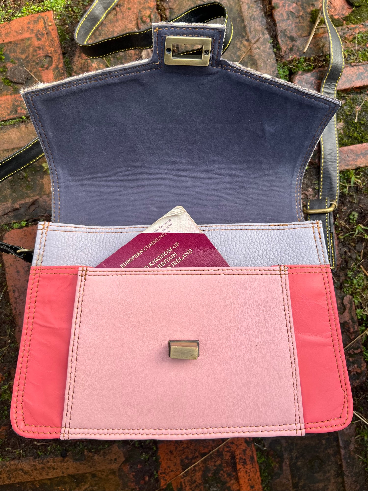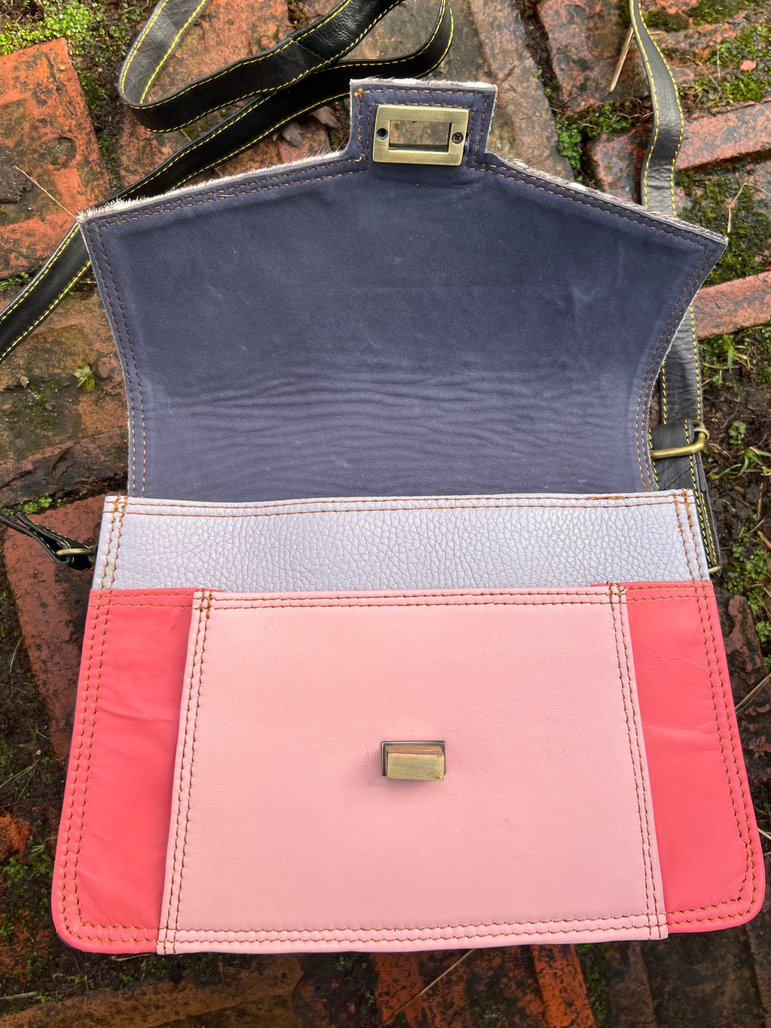 New to our Harlequin Collection is this leather/fur shoulder bag which is made in India from offcuts which would otherwise go to landfill.