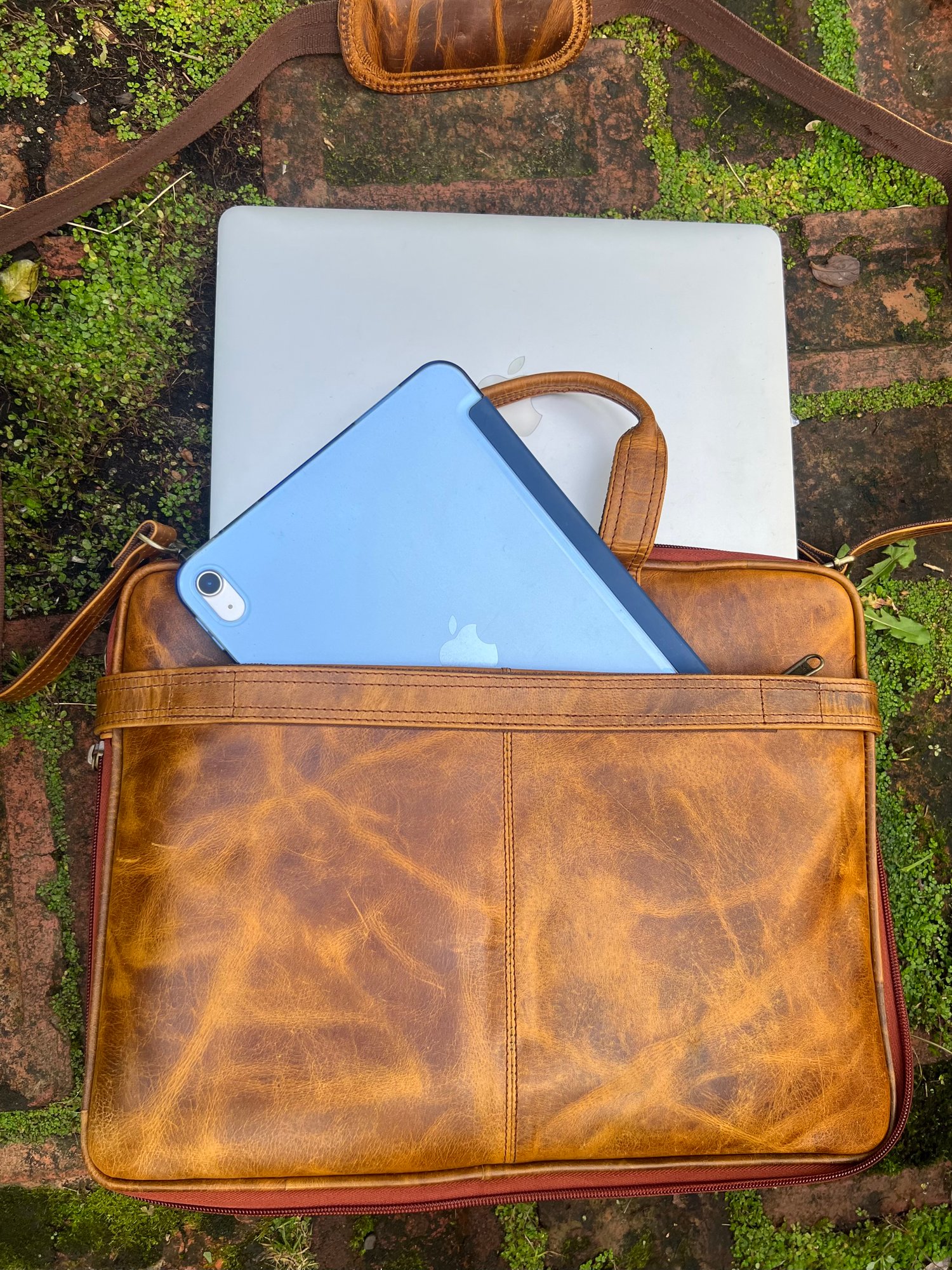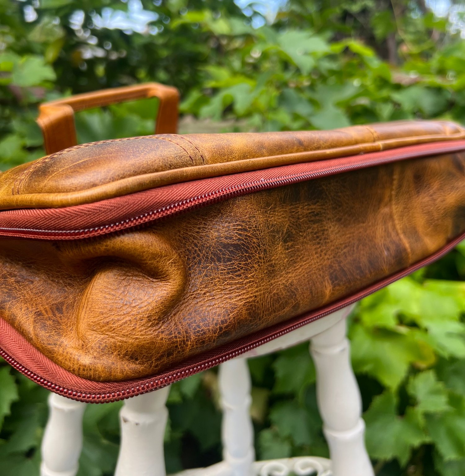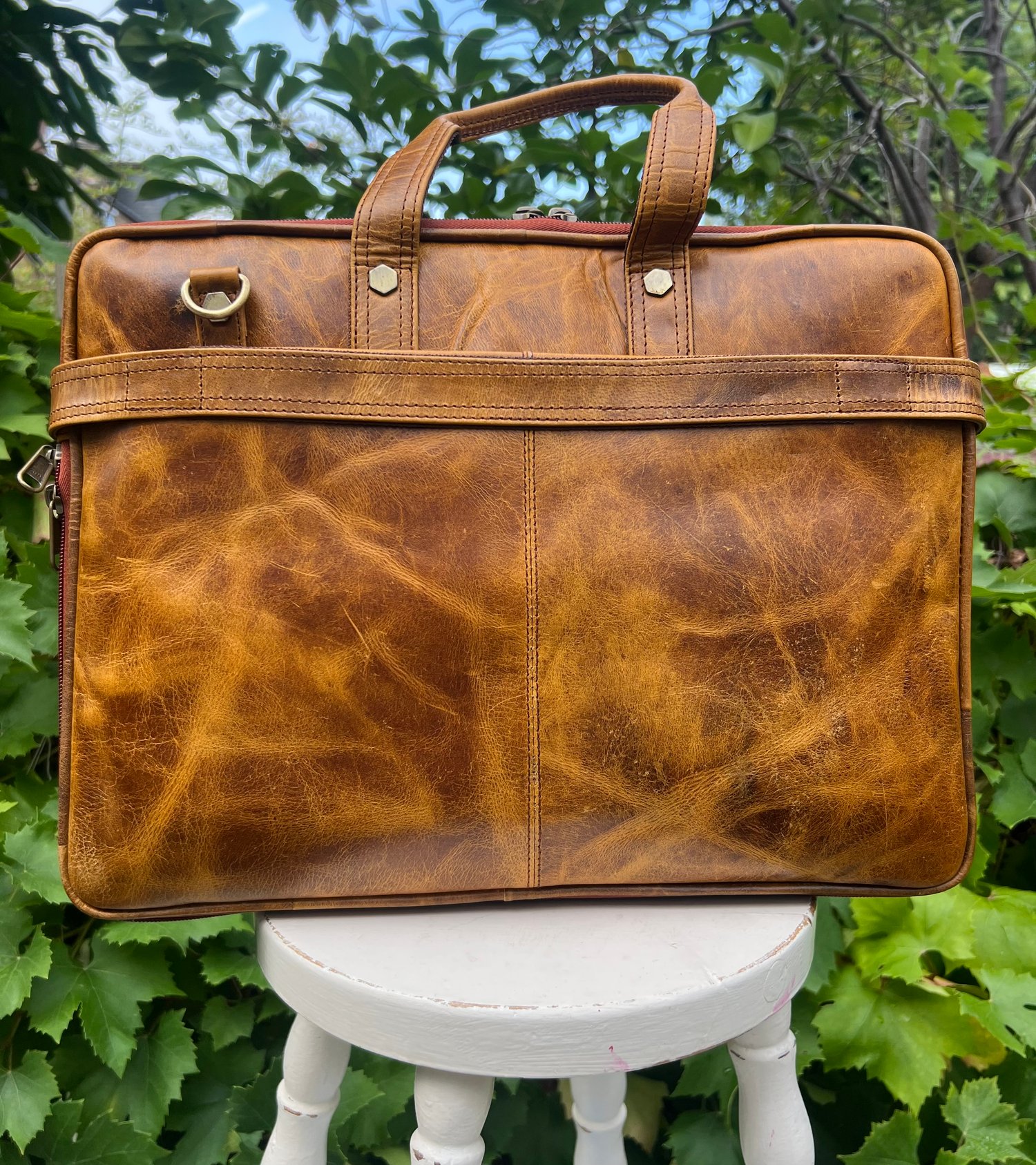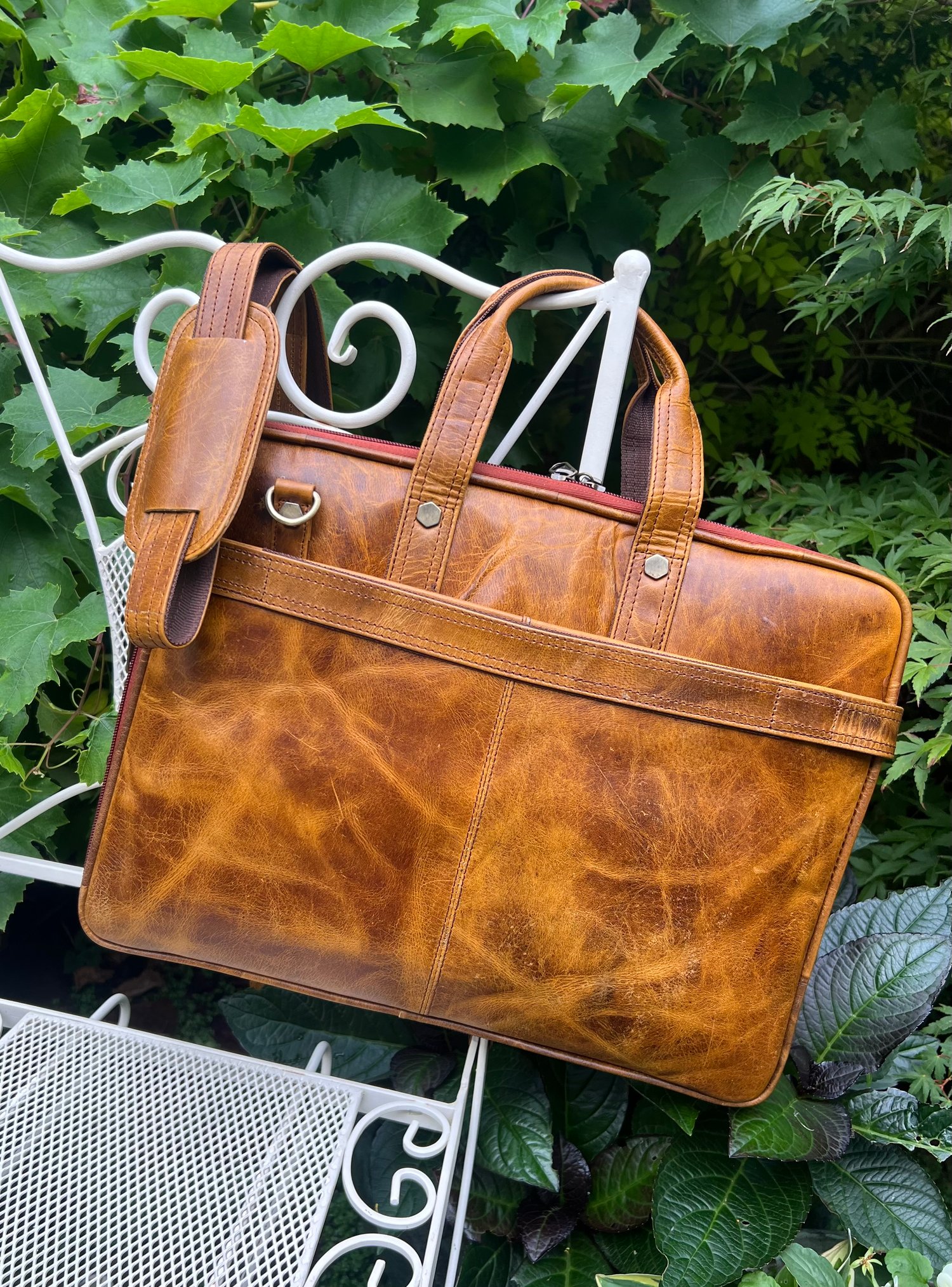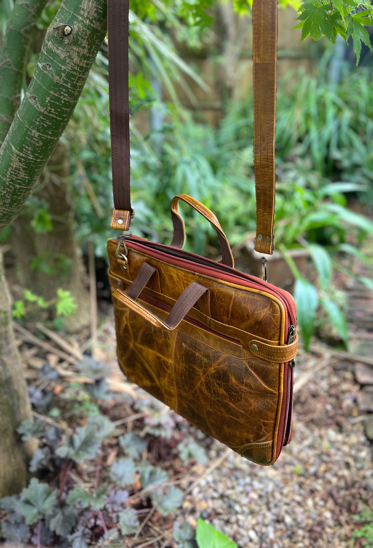 New to our collection is this stylish laptop bag crafted, from buffalo ‘crunch’ leather. This sturdy, compact padded bag has a zip round 3 sides to expand the volume.