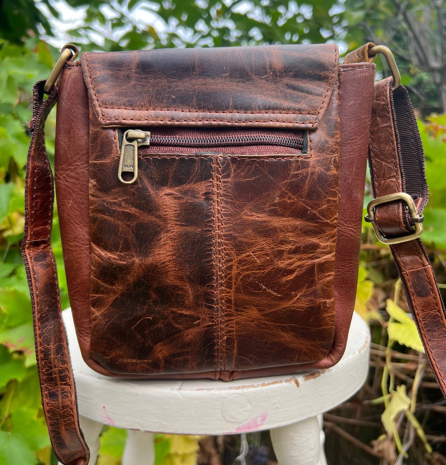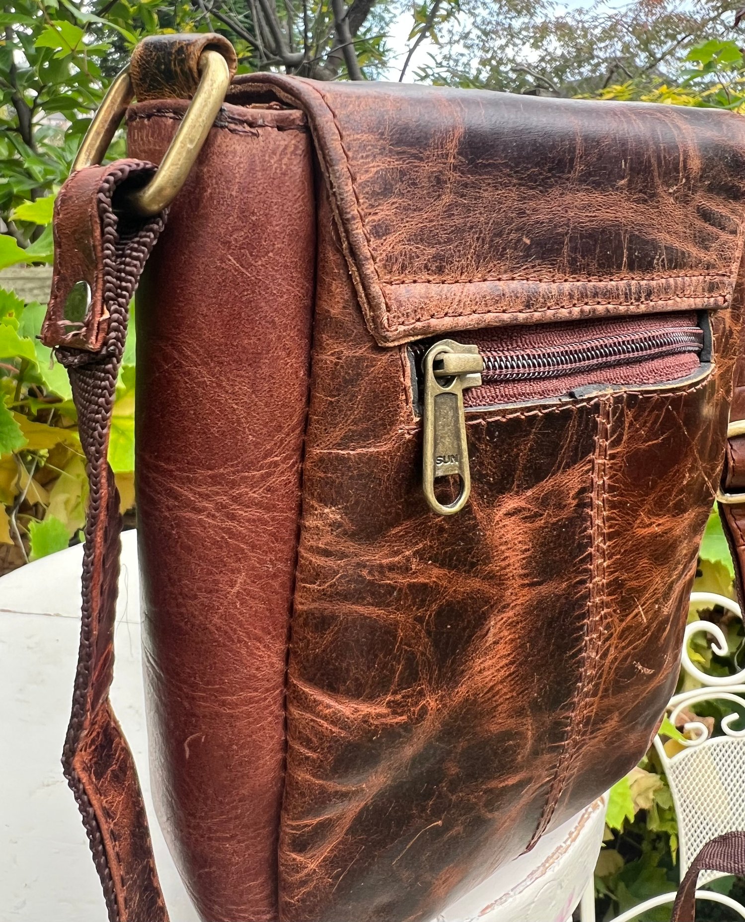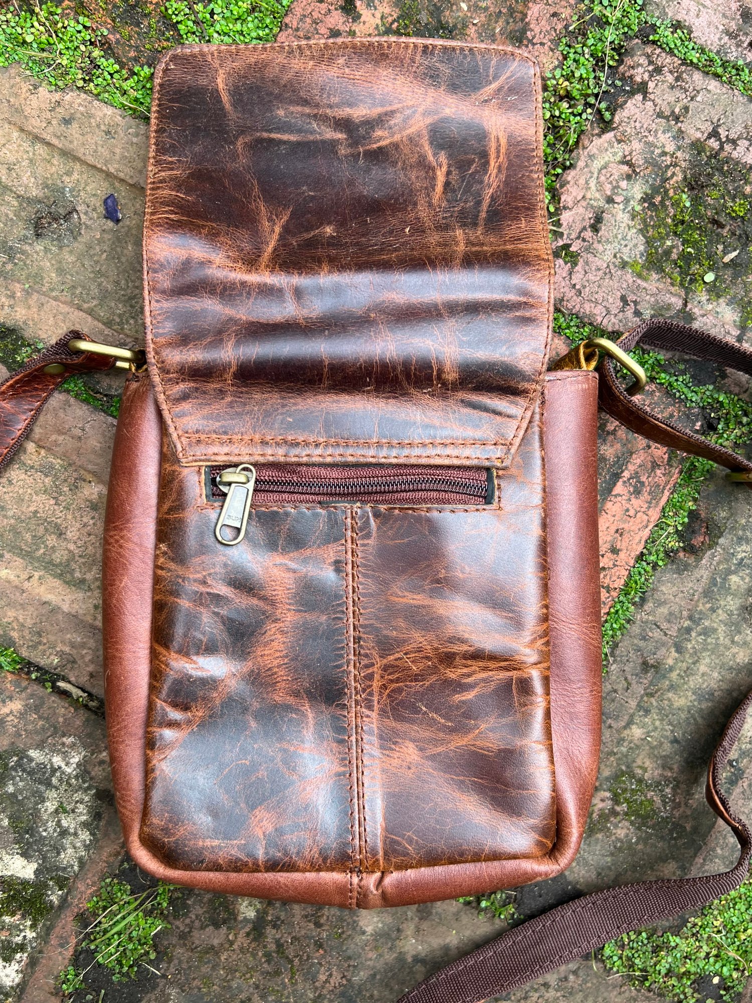 Crafted from rustic buffalo leather, this small stylish unisex bag is perfect for carrying all your essentials.