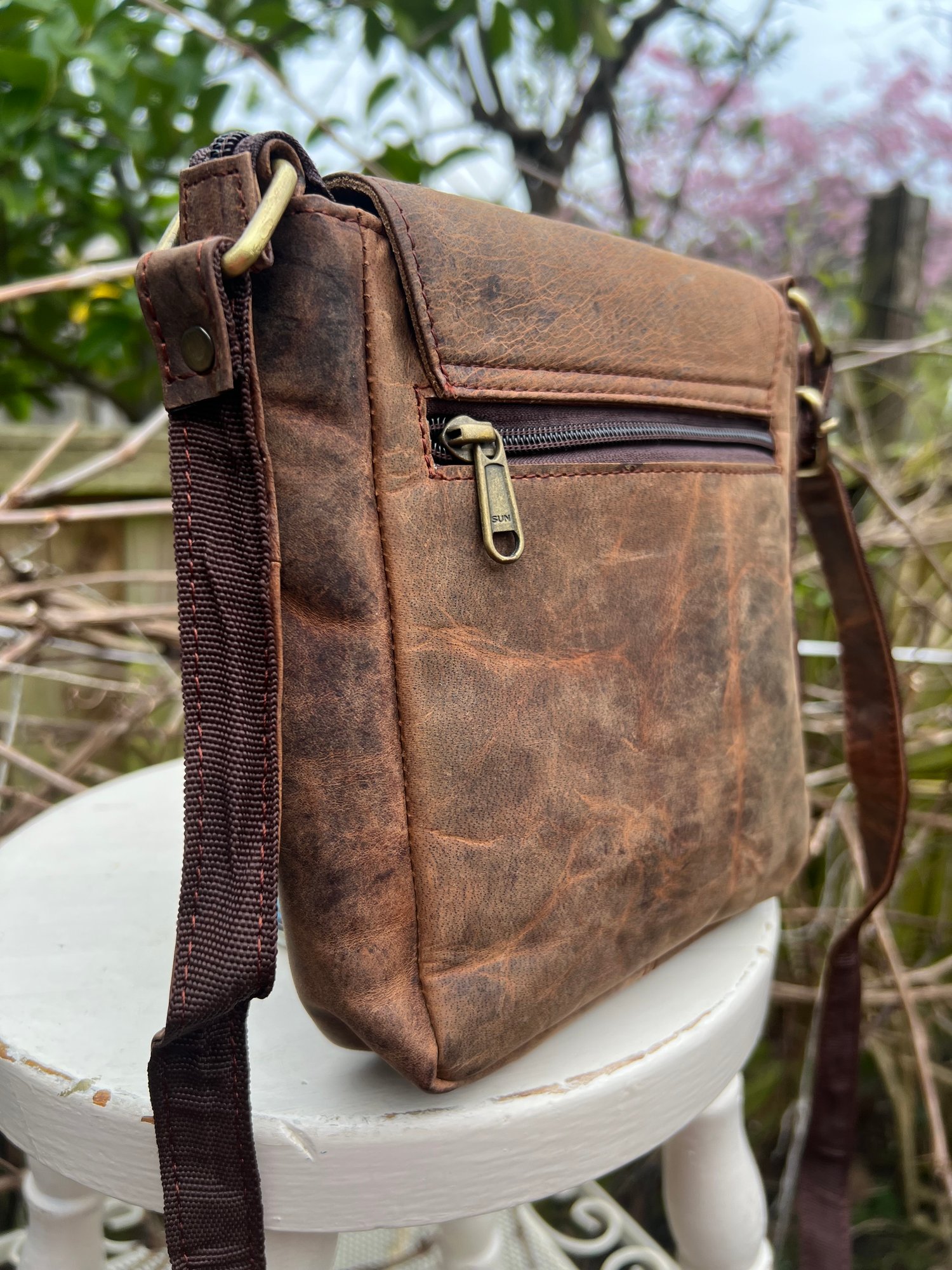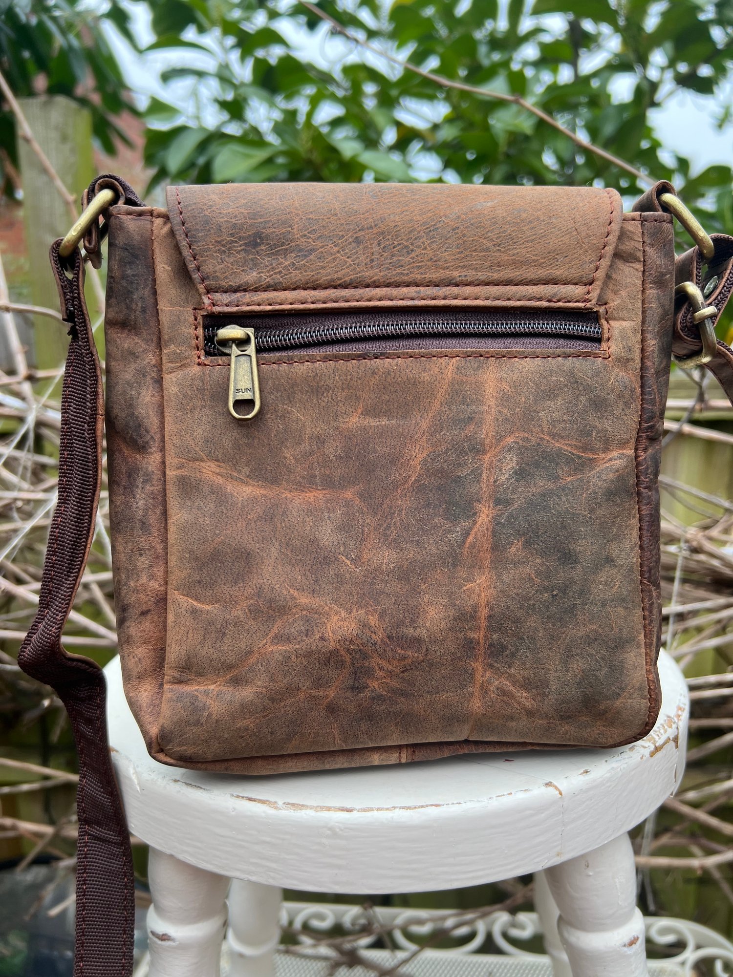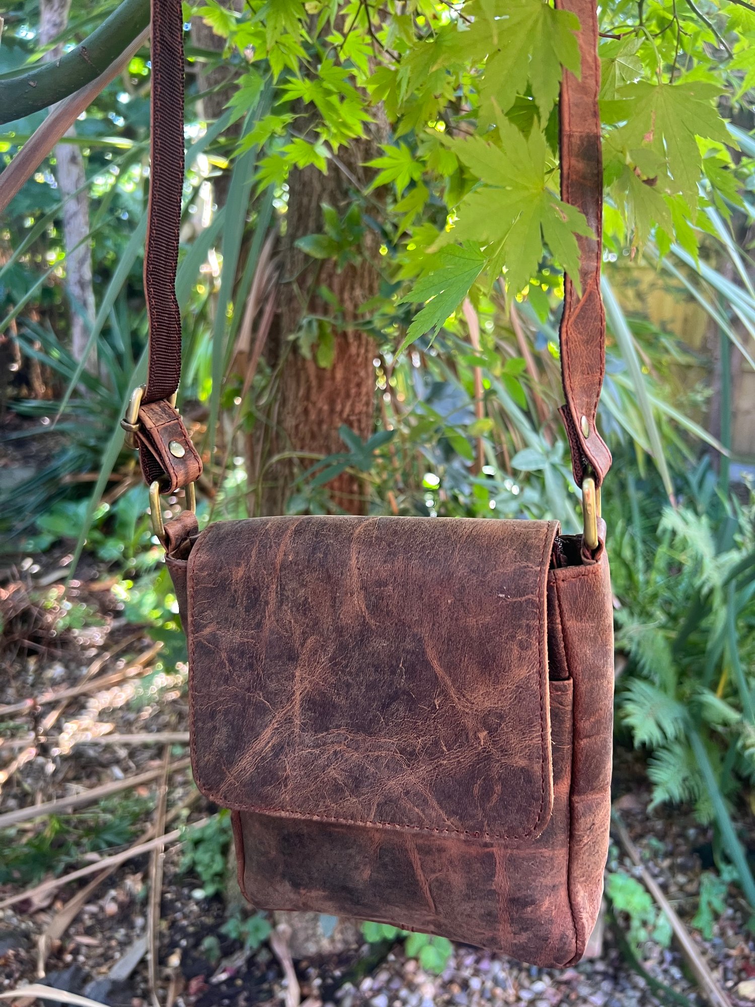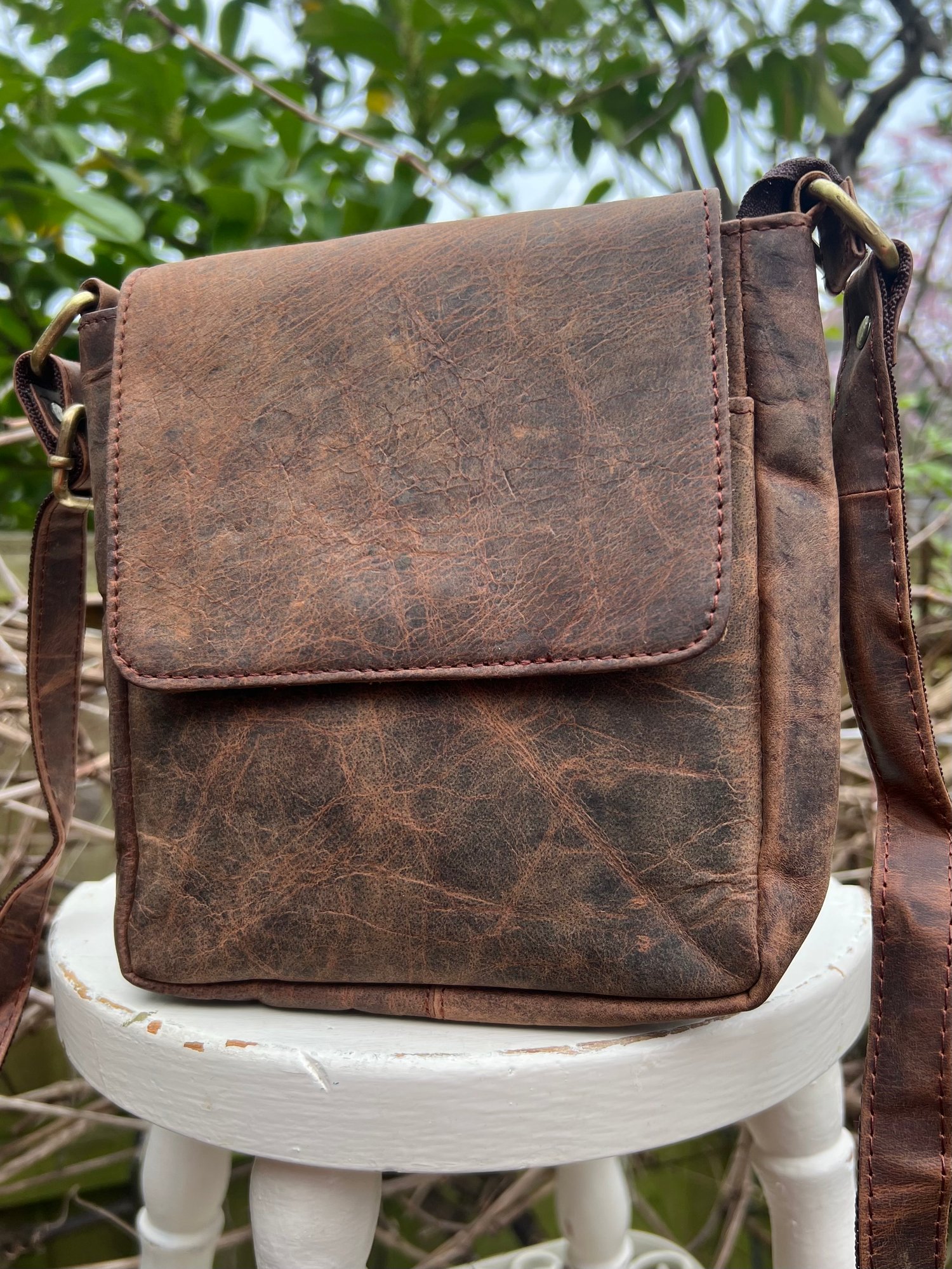 Crafted from rustic buffalo leather, this small stylish unisex bag is perfect for carrying all your essentials.