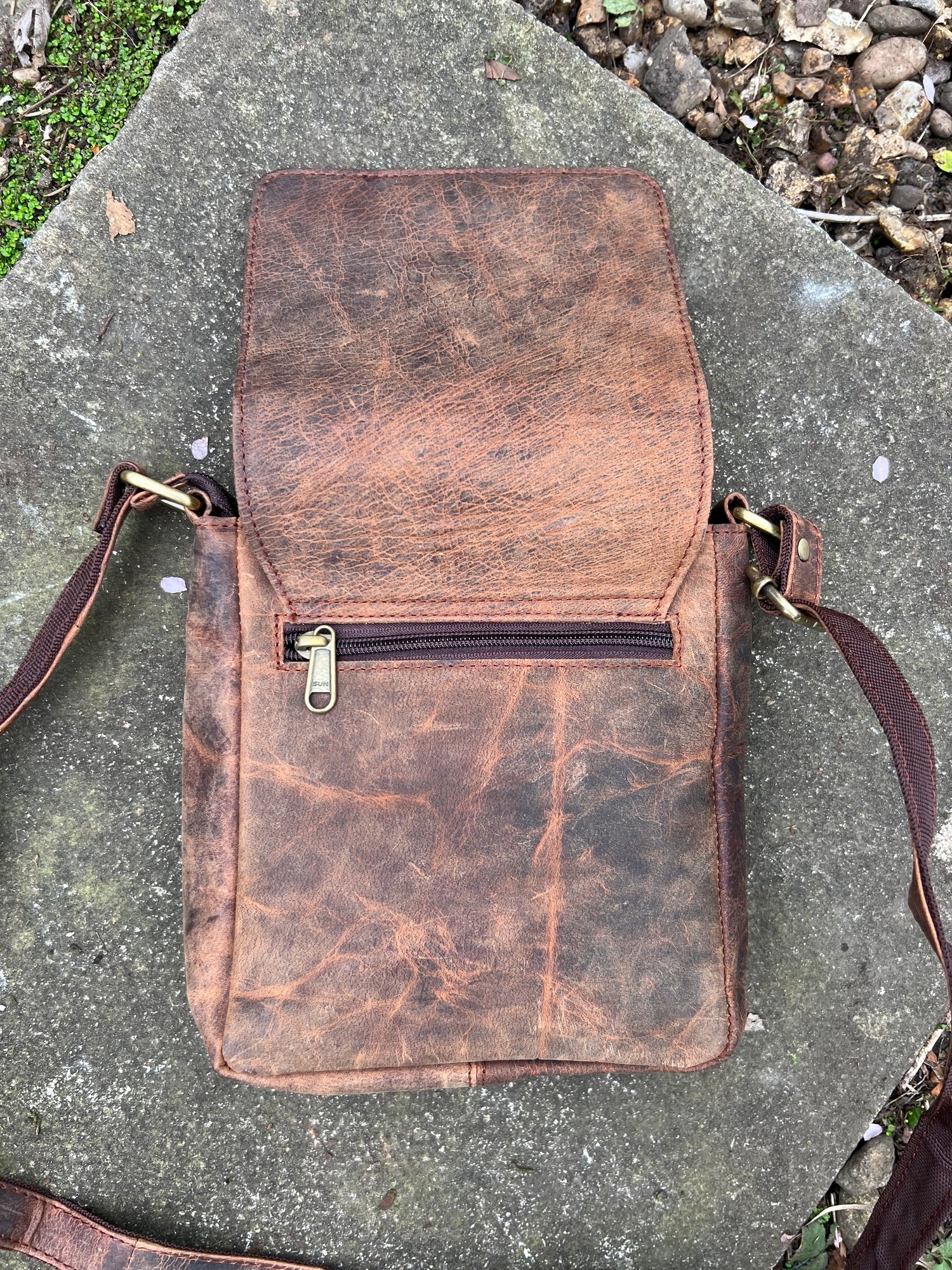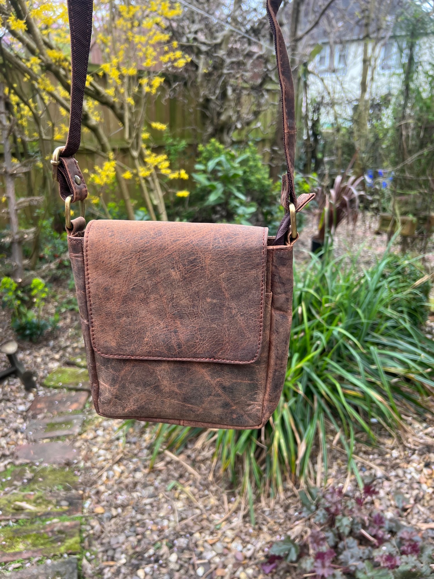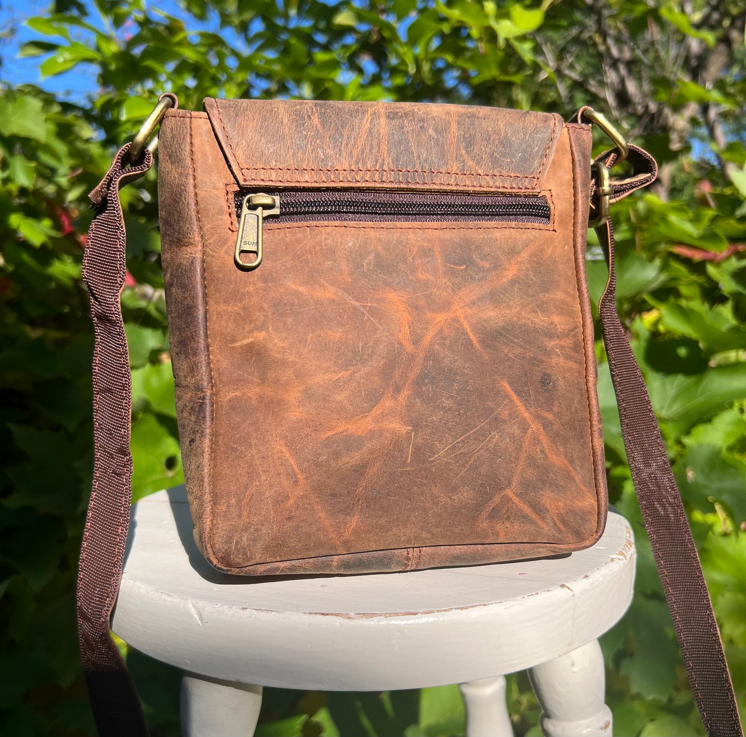 Crafted from rustic buffalo leather, this small stylish unisex bag is perfect for carrying all your essentials.
