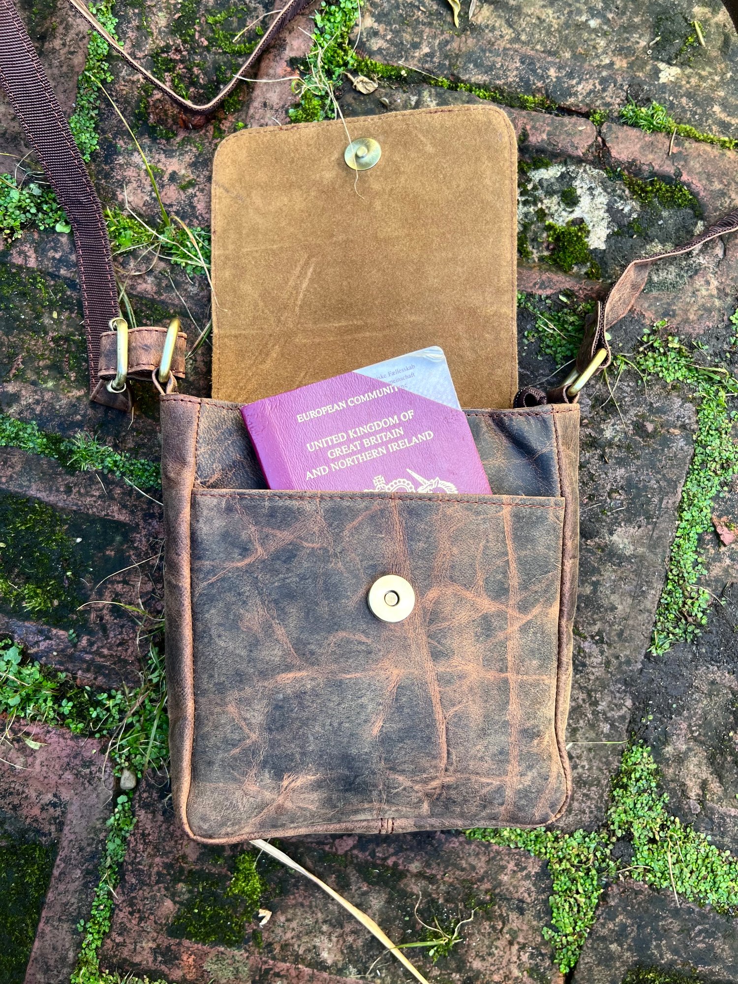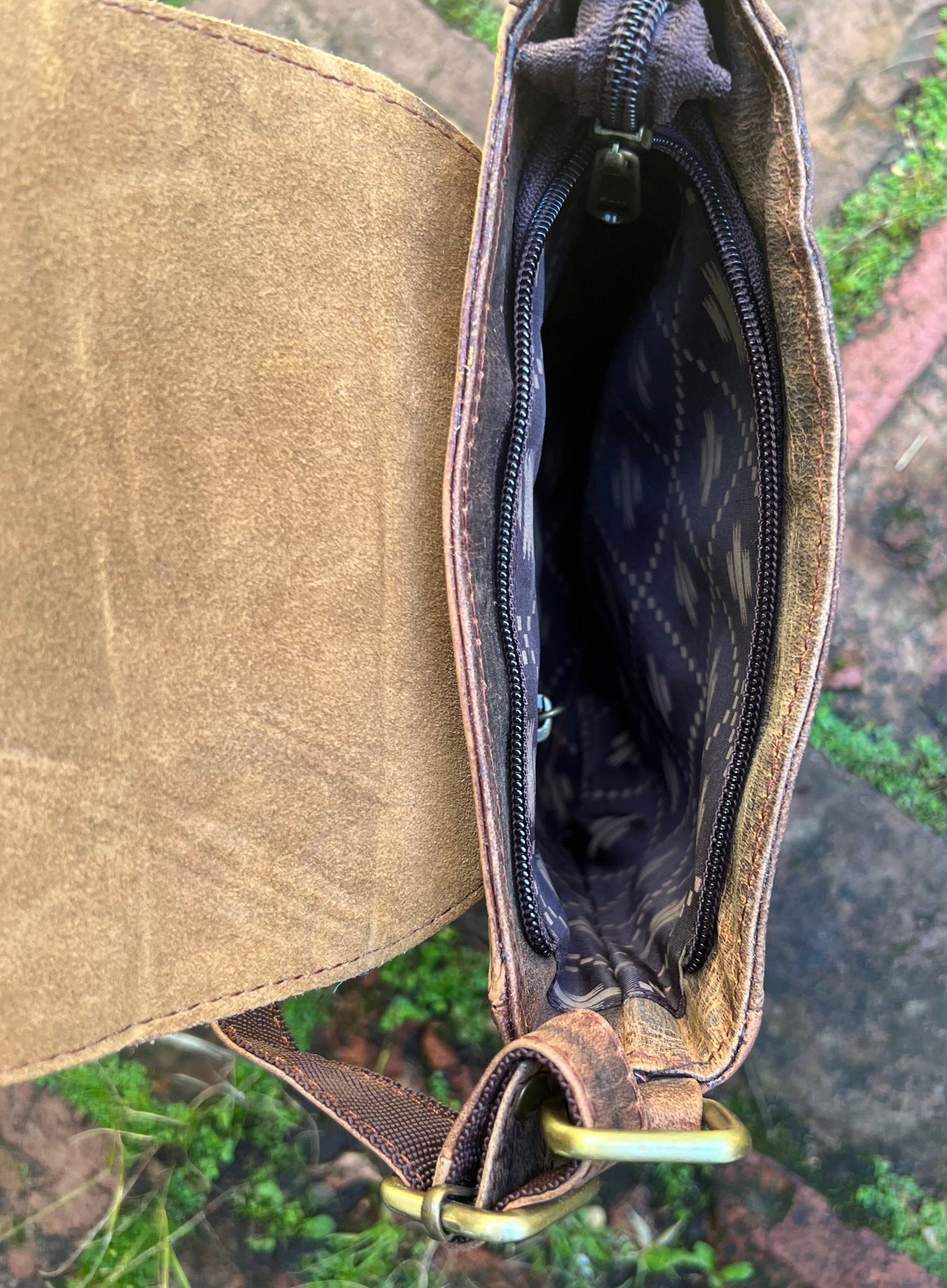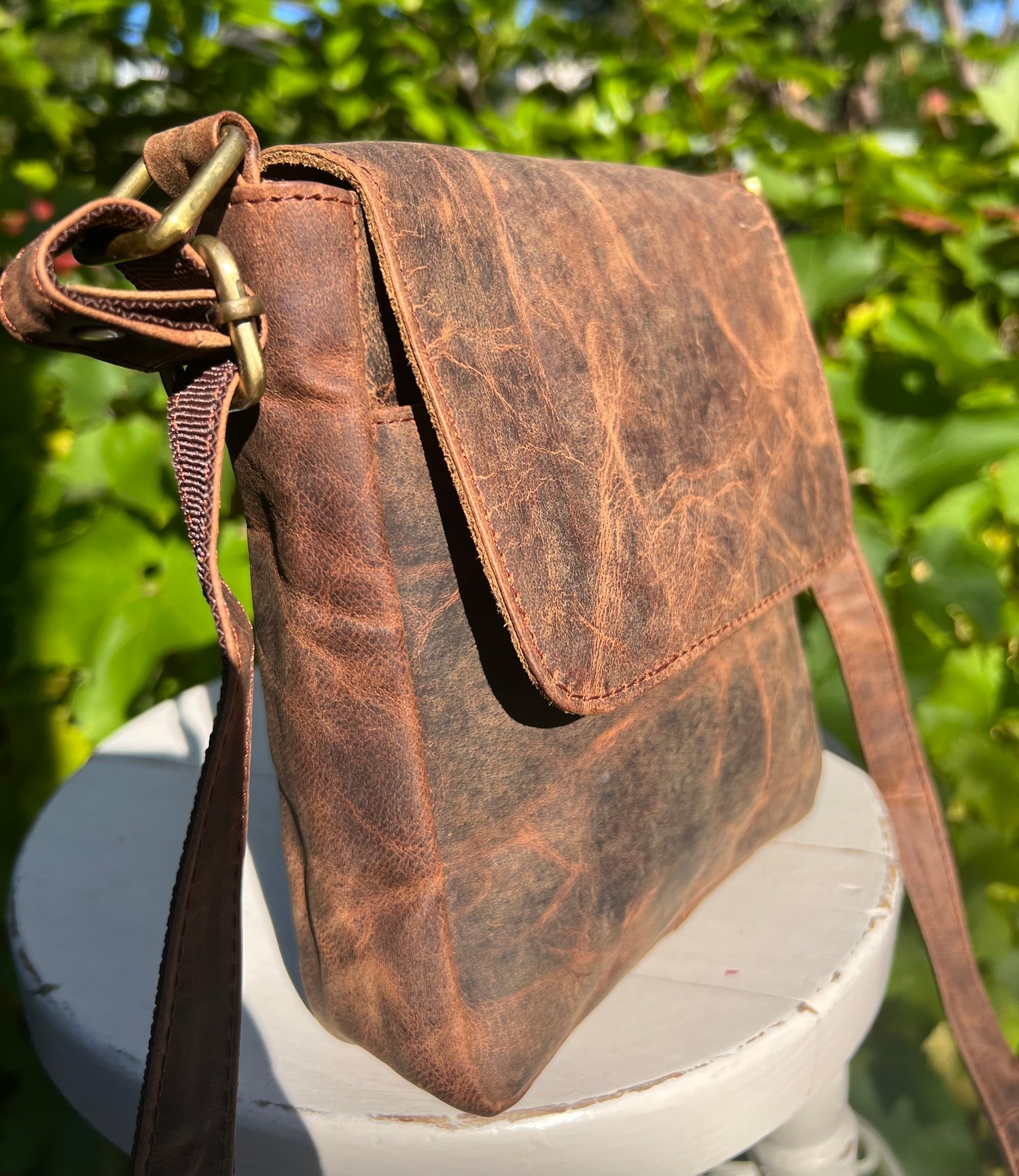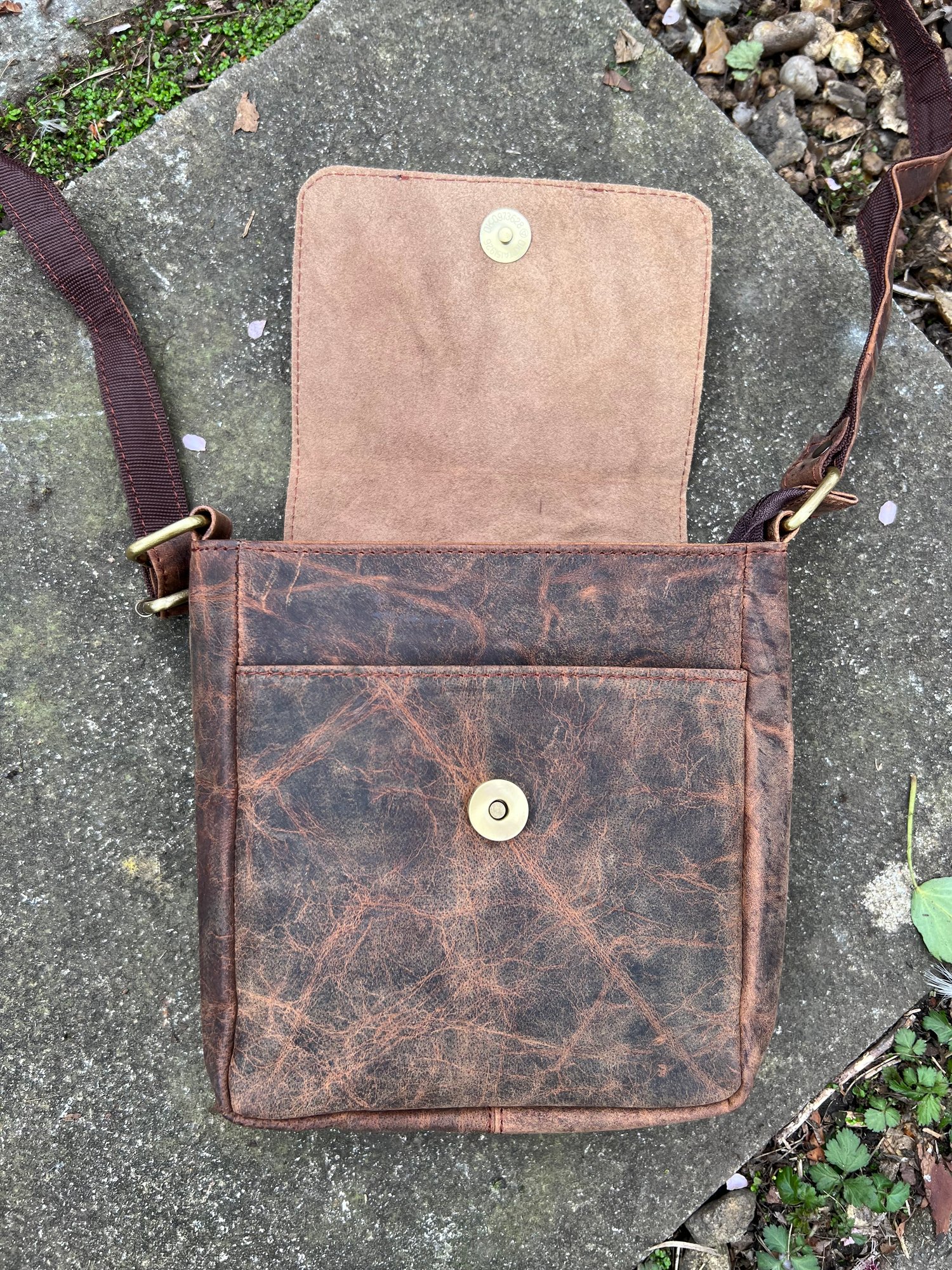 Crafted from rustic buffalo leather, this small stylish unisex bag is perfect for carrying all your essentials.