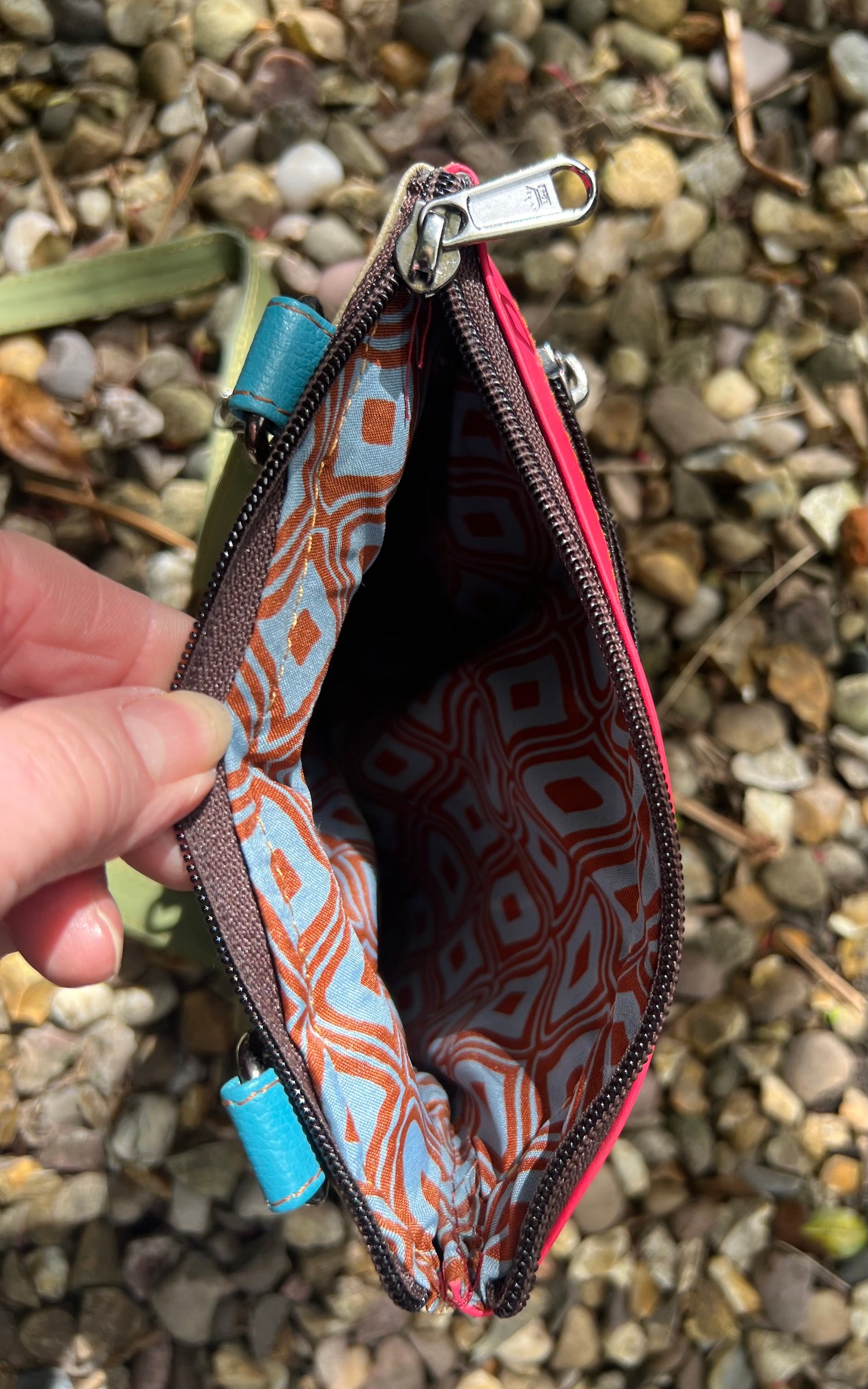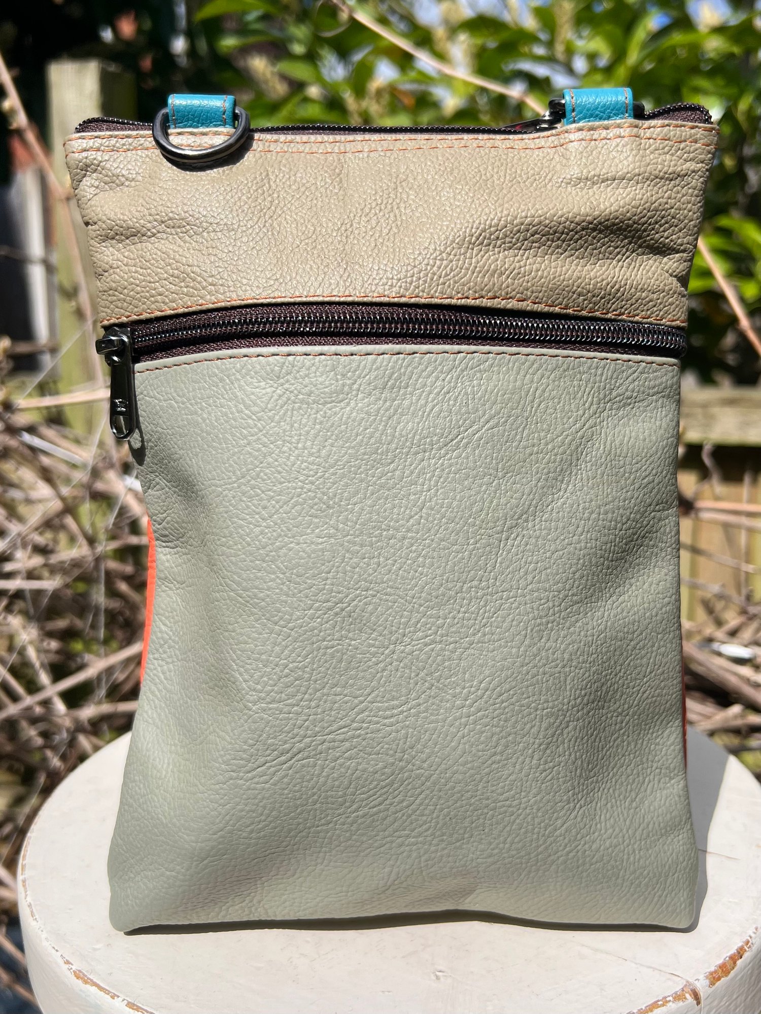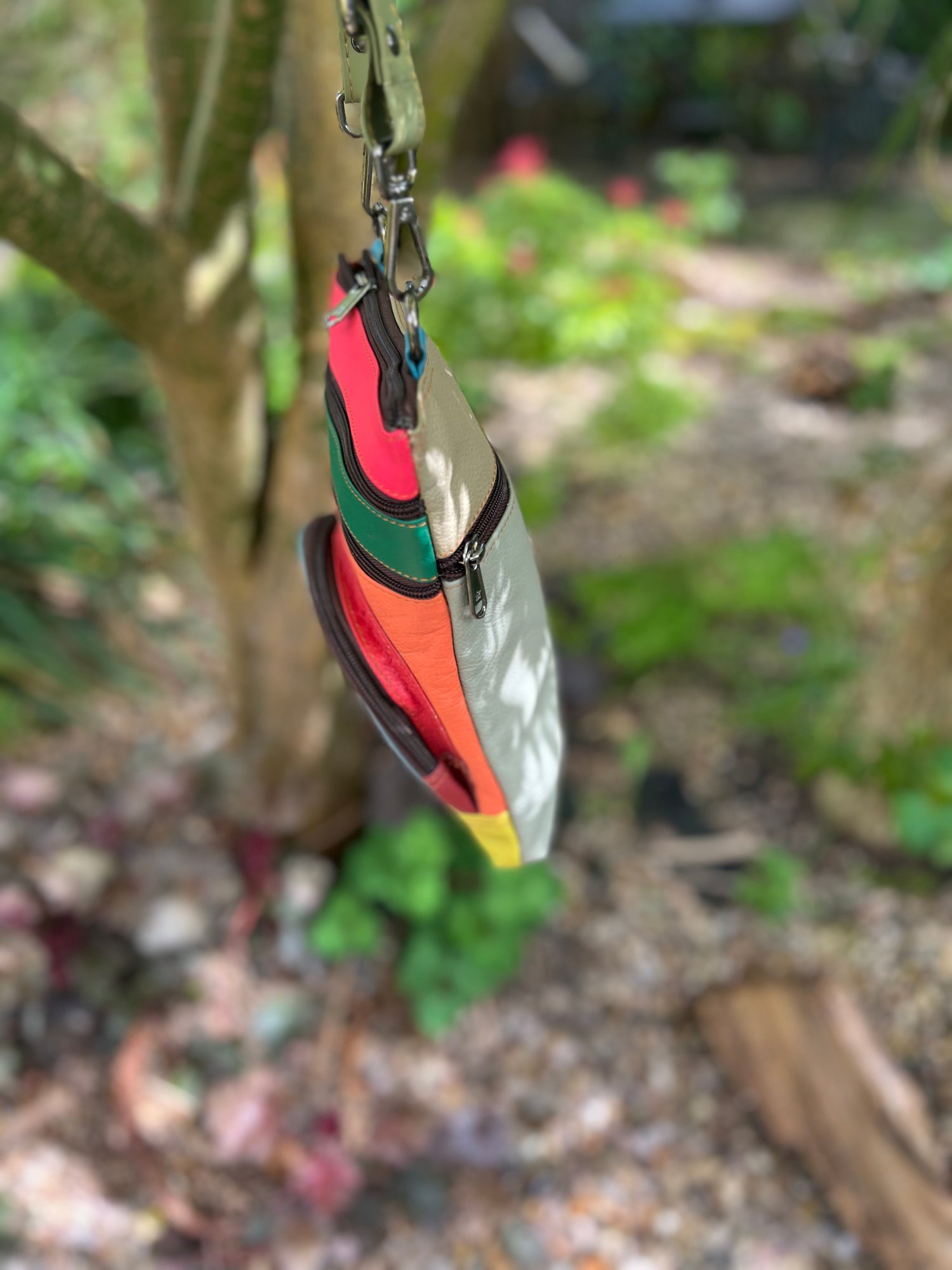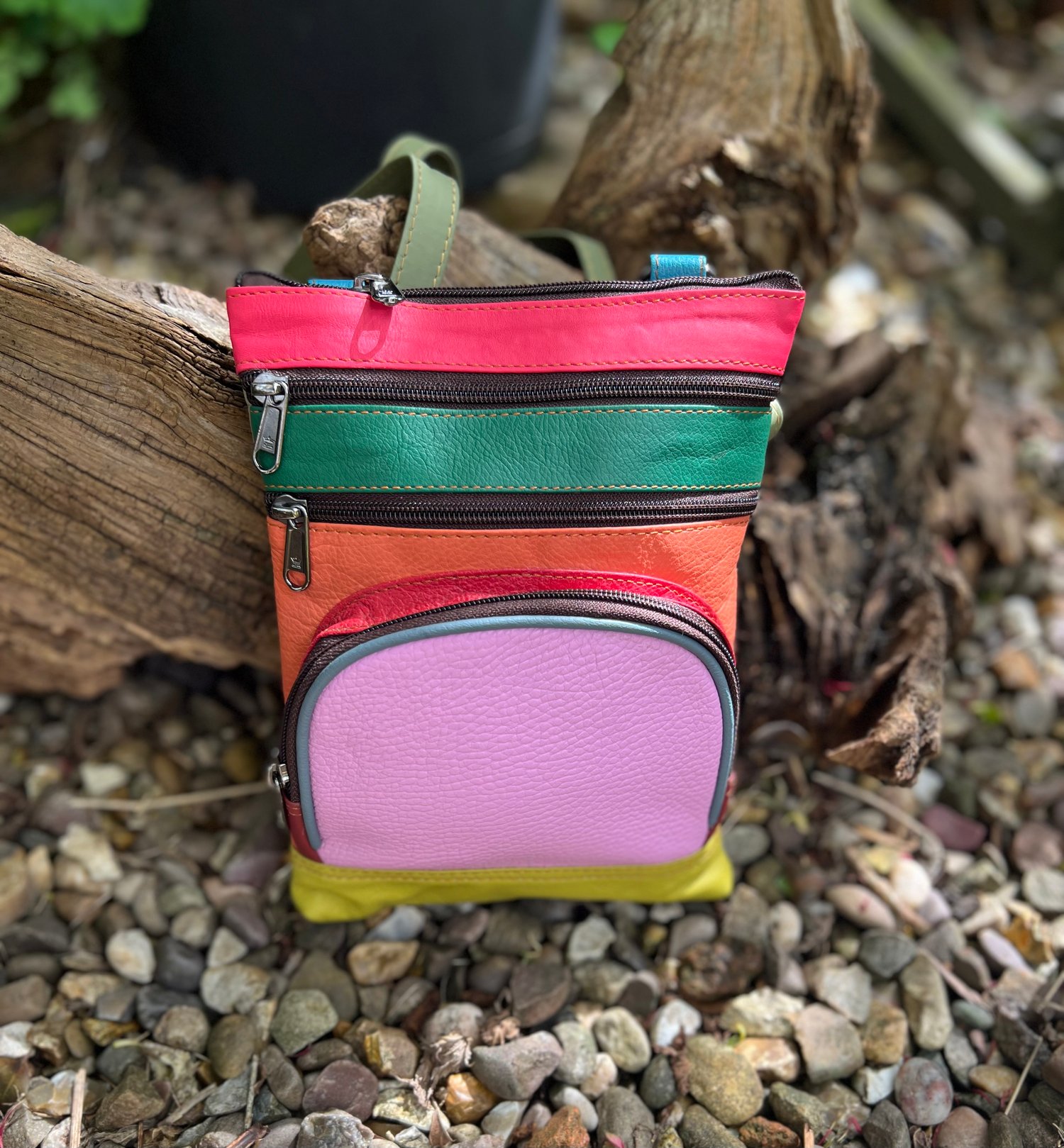 Our sustainable colourful leather bags are made for us in India using offcuts of leather which would otherwise go to landfill. They have been ethically crafted to produce both an unusual and unique bag.