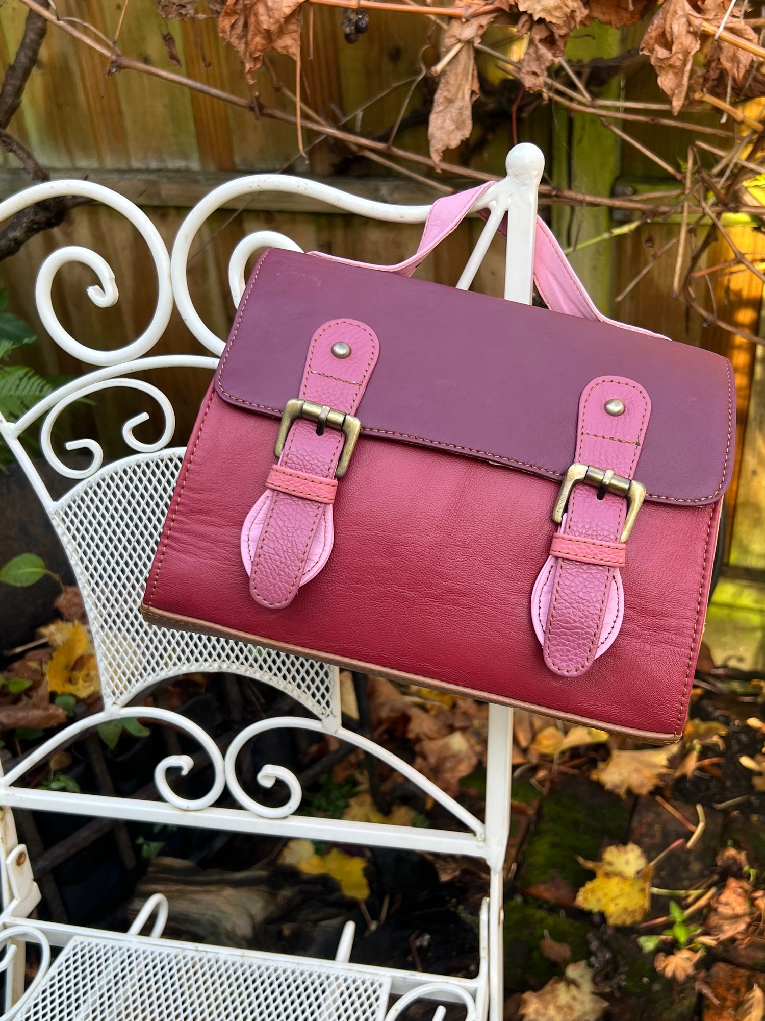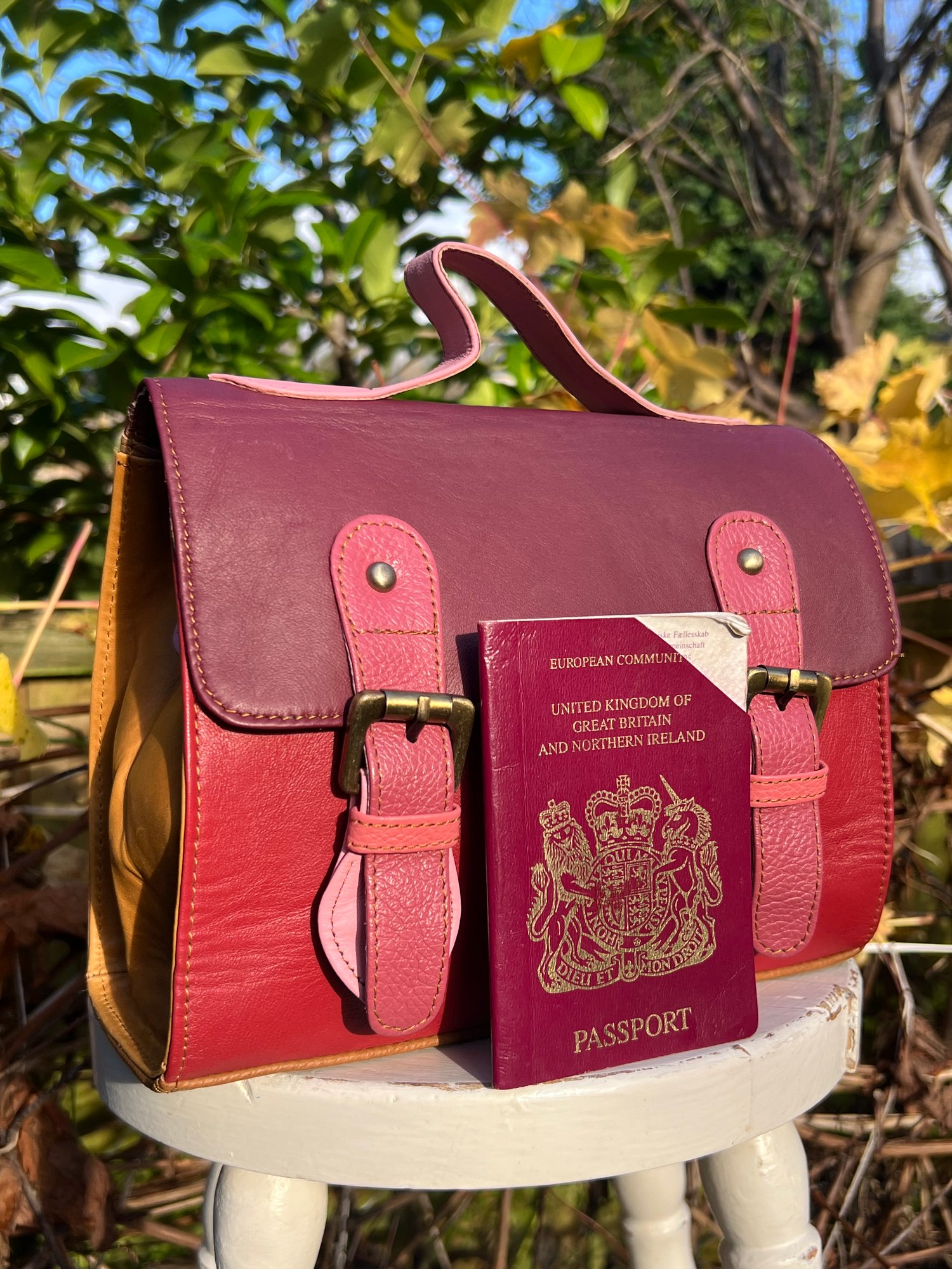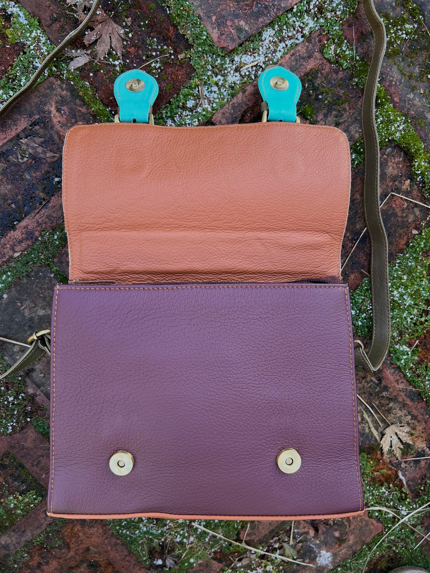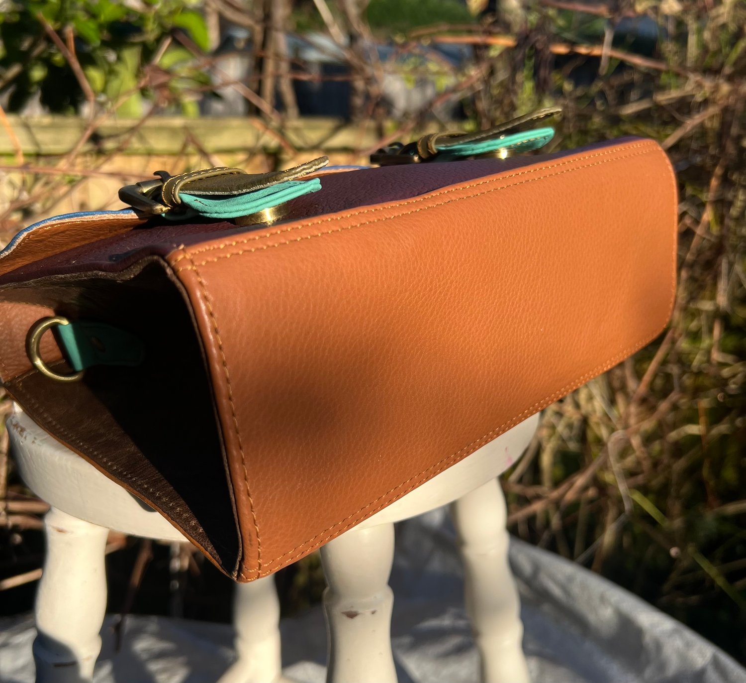Our traditional satchels are practical and ever-popular, so we incorporated the design using multi-coloured buffalo leather offcuts. With long strap and a useful carry handle, this one-of-a-kind bag is so cute, it definitely should be in every girl's wardrobe.