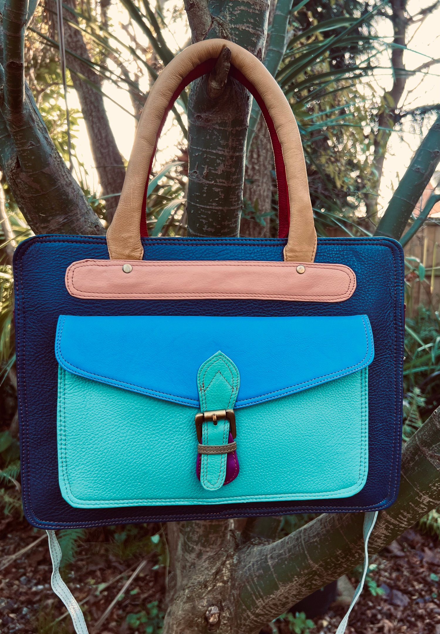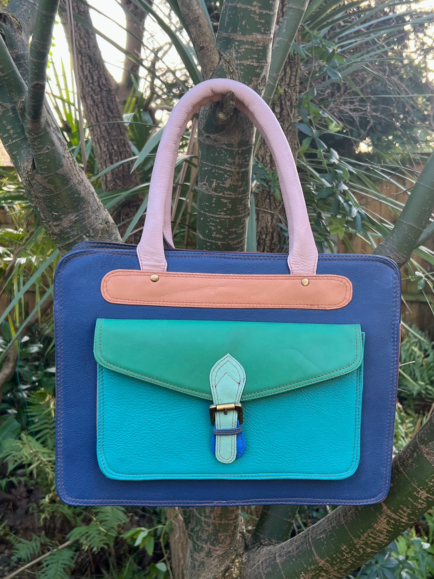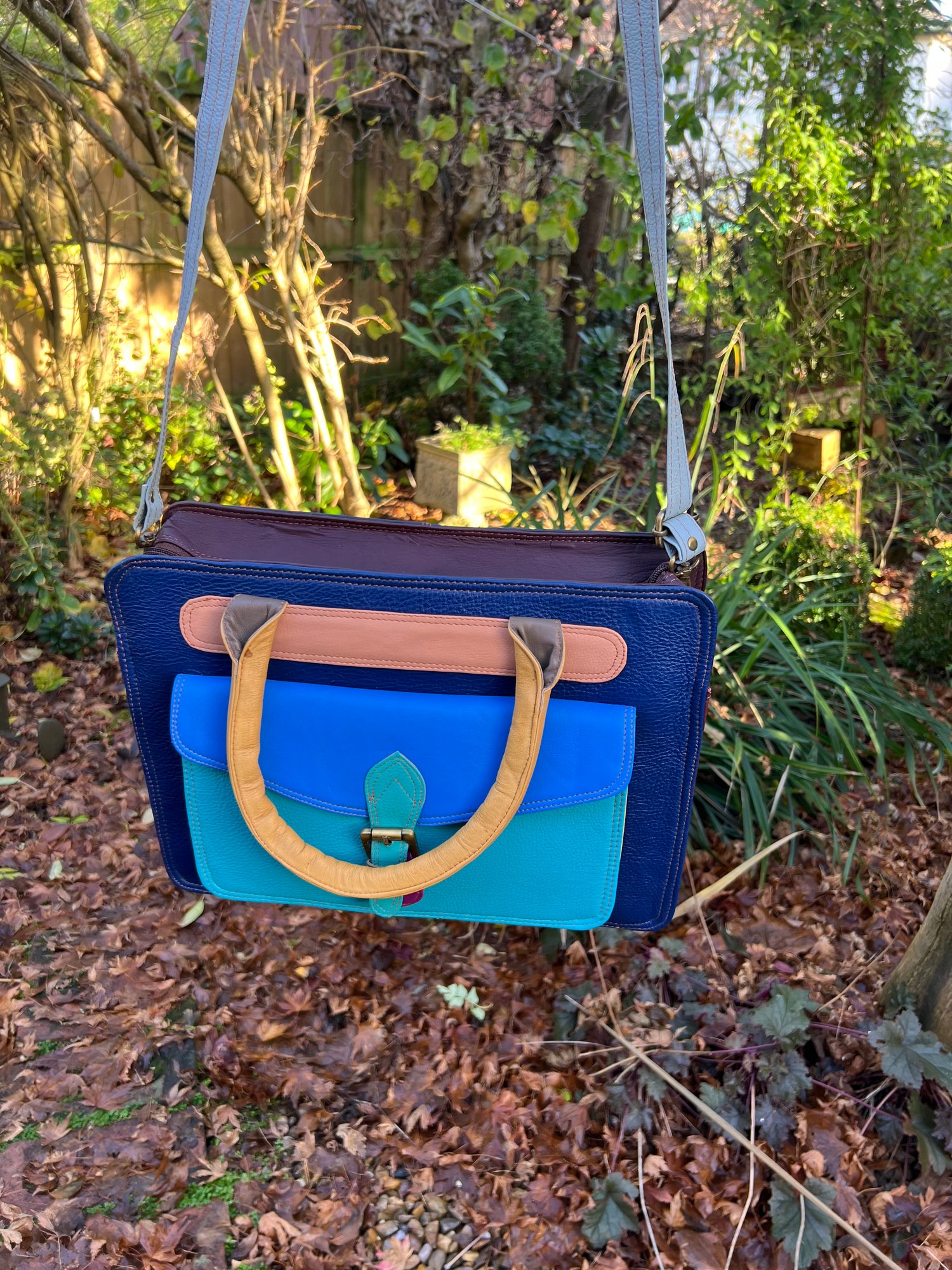 Our recycled leather bags are unique, there being only one in each colourway. The sustainable leather used in crafting these bags are offcuts, which would otherwise go to landfill. Our amazing Indian artisans work as a co-operative to produce both unusual and unique bags.
