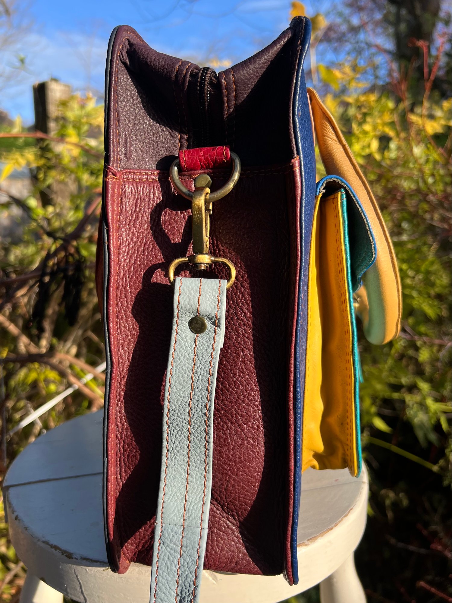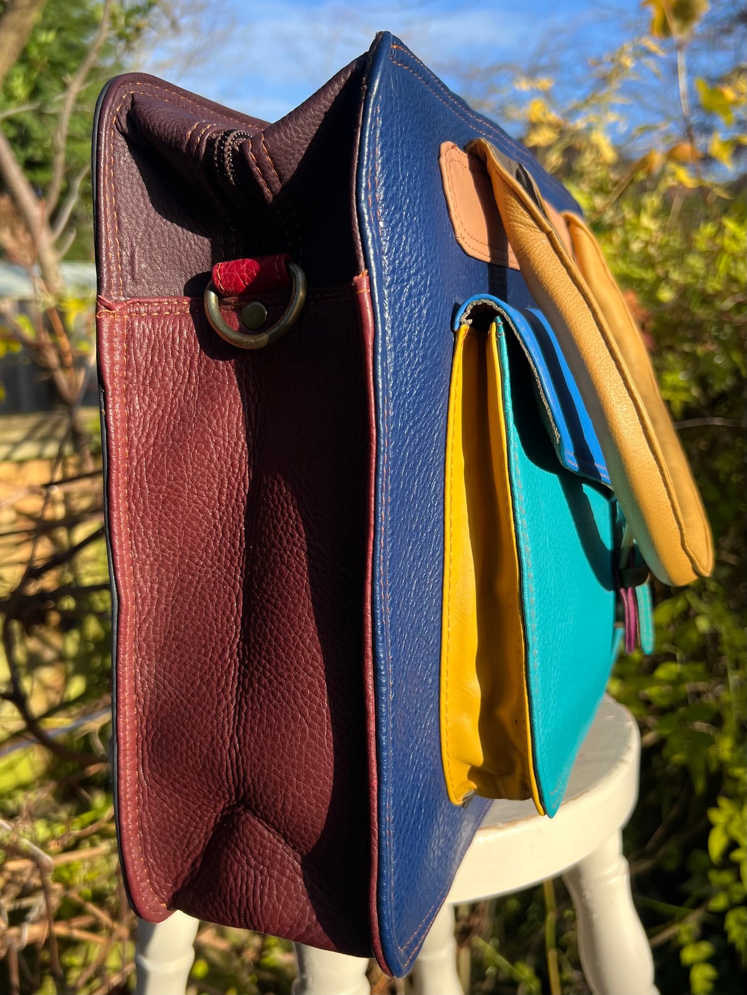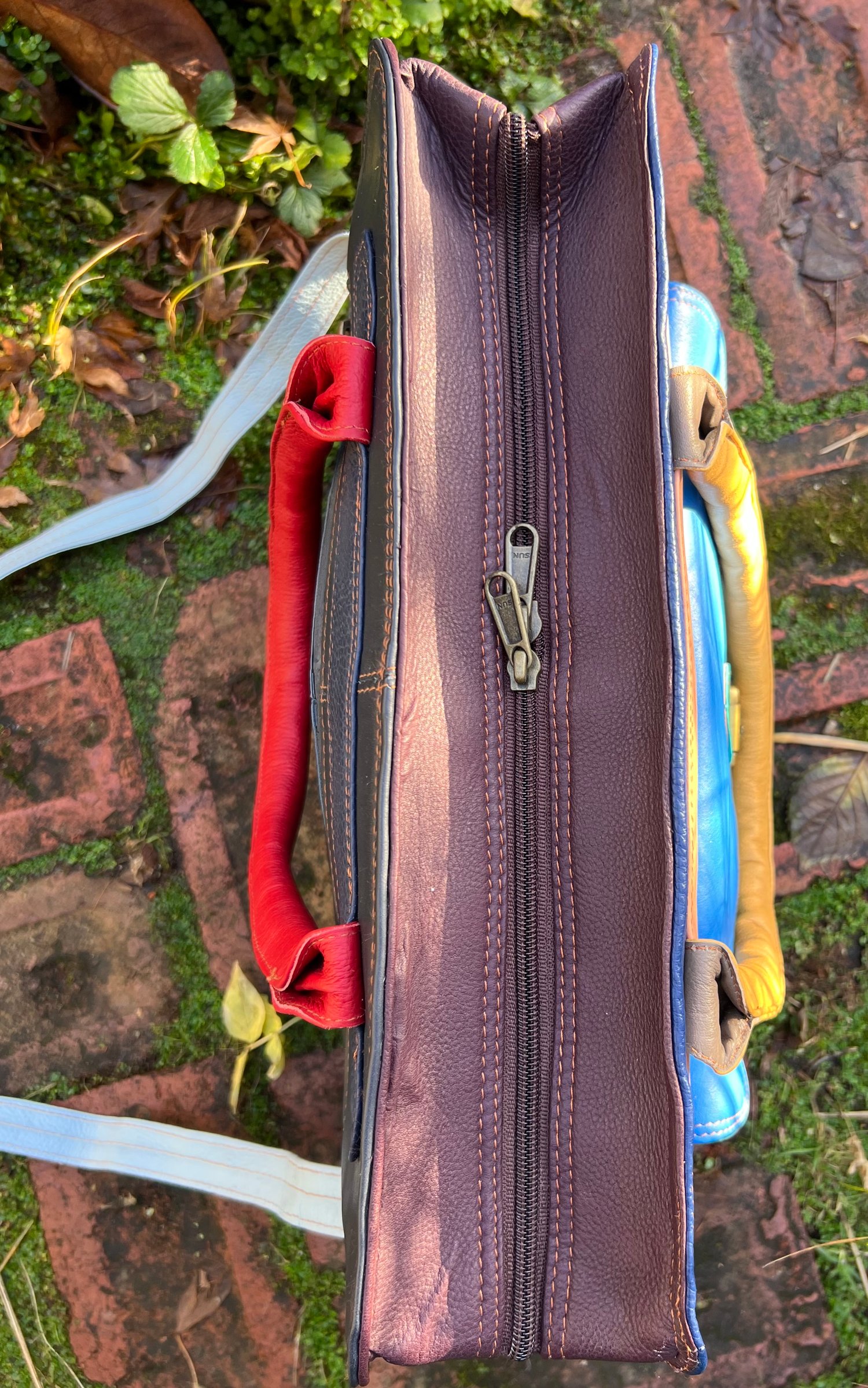 Our recycled leather bags are unique, there being only one in each colourway. The sustainable leather used in crafting these bags are offcuts, which would otherwise go to landfill. Our amazing Indian artisans work as a co-operative to produce both unusual and unique bags.