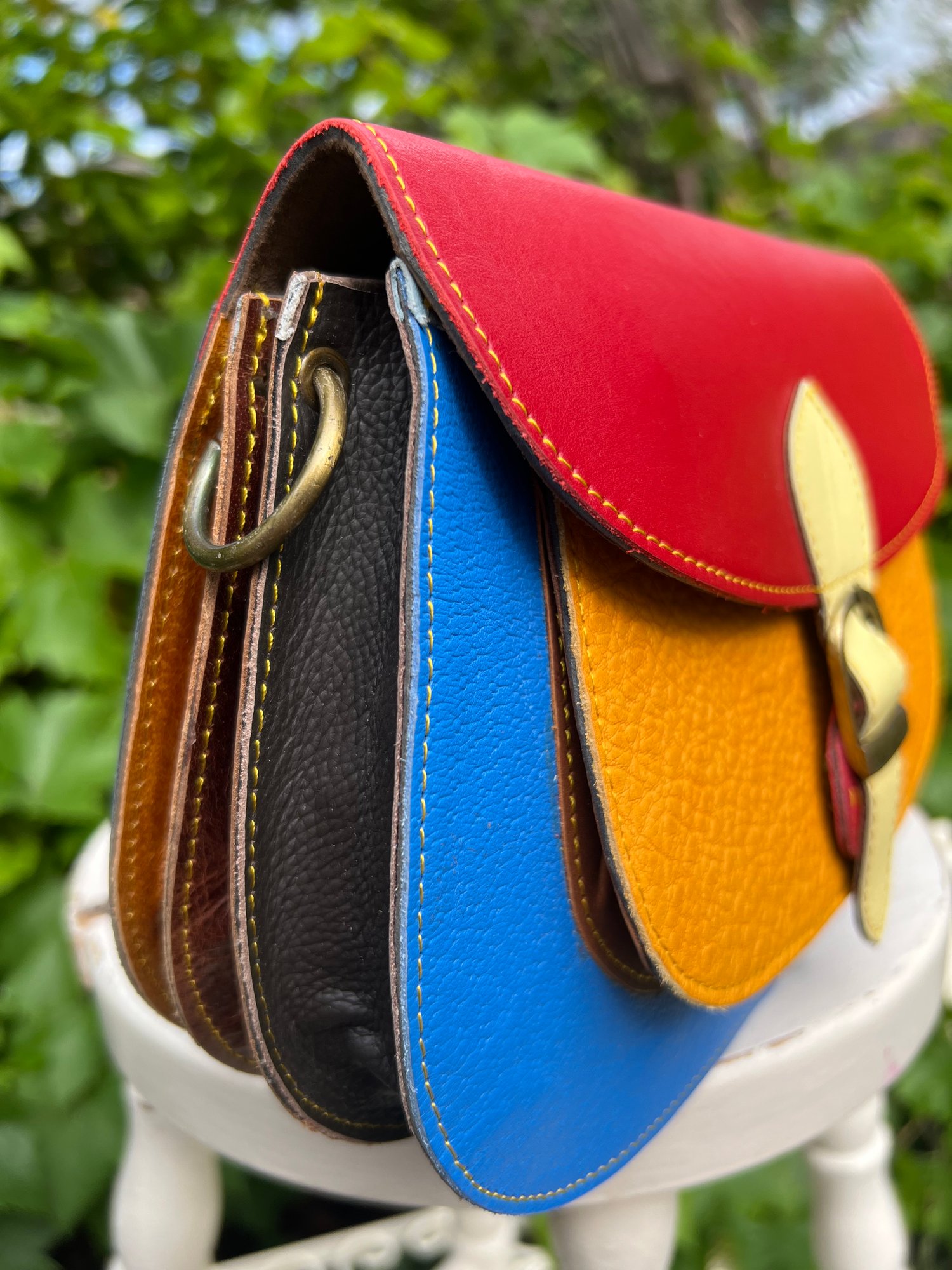 Harlequin Collection - Medium Recycled Leather Saddle #48A4