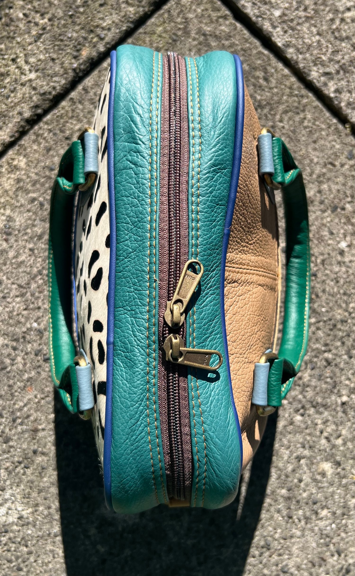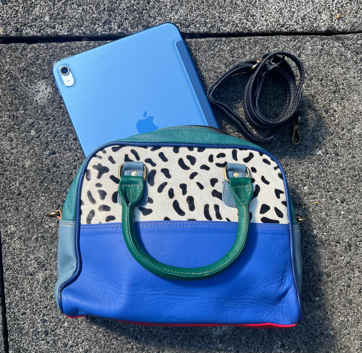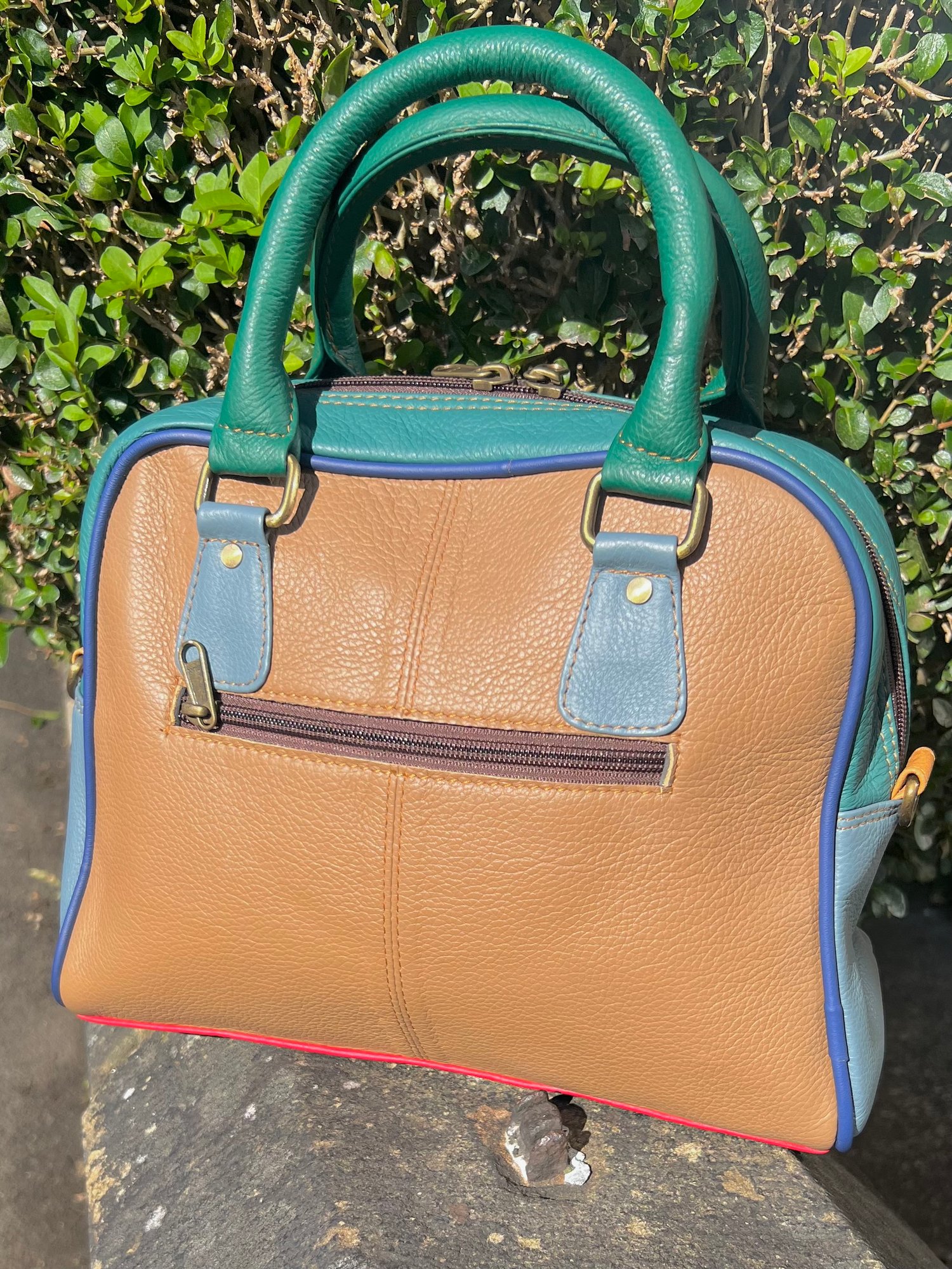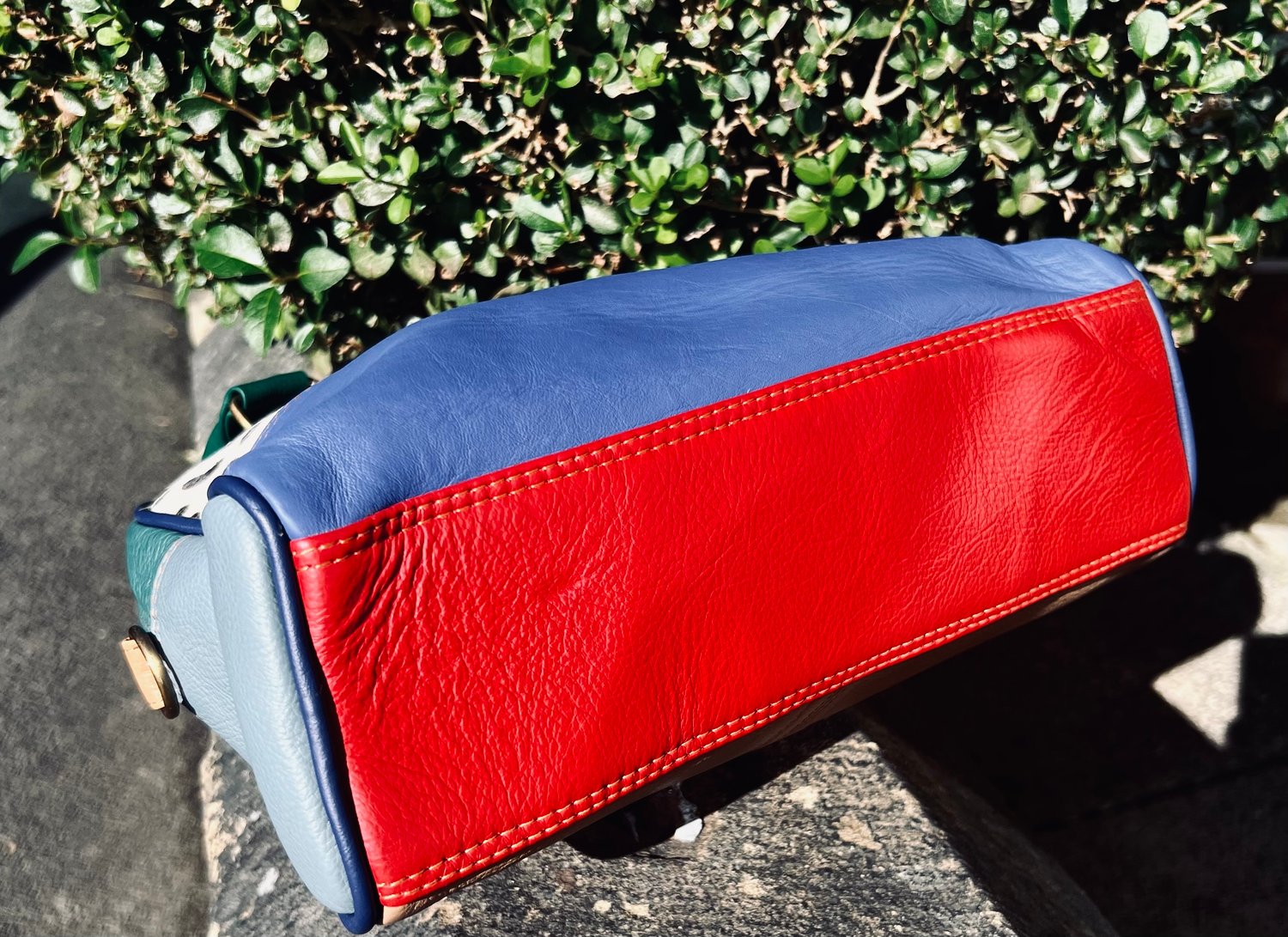 Harlequin Collection - Multi-coloured Recycled Leather Barrel Bag #28A