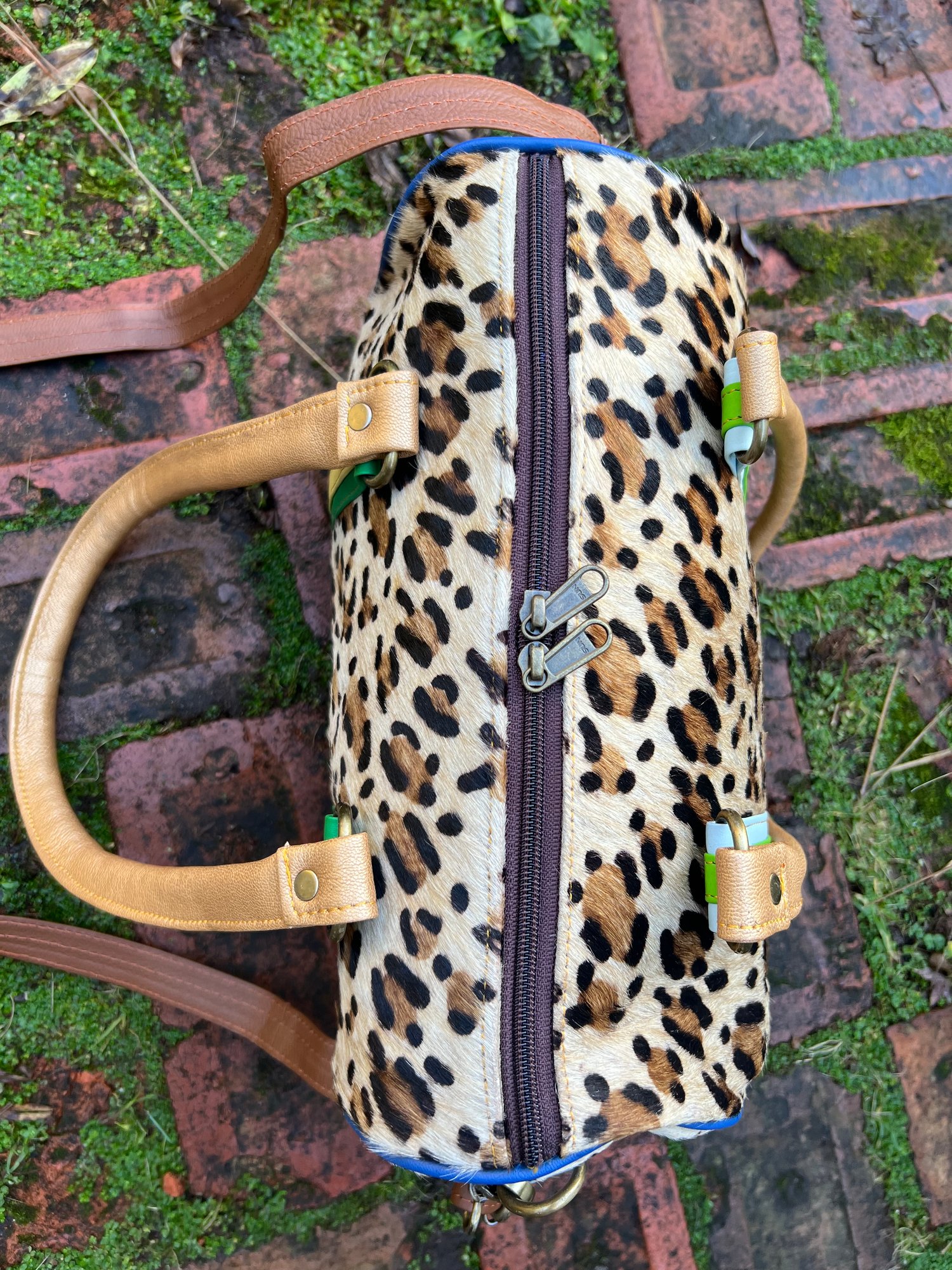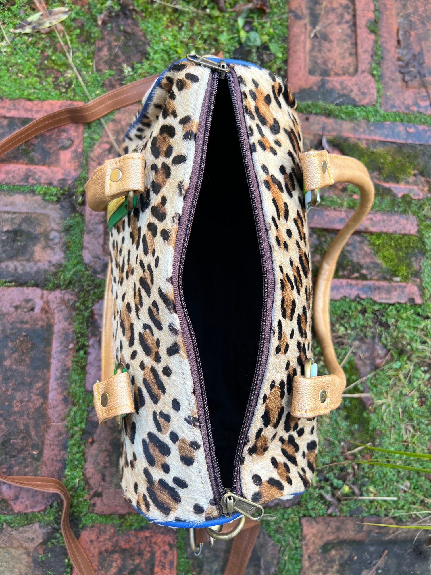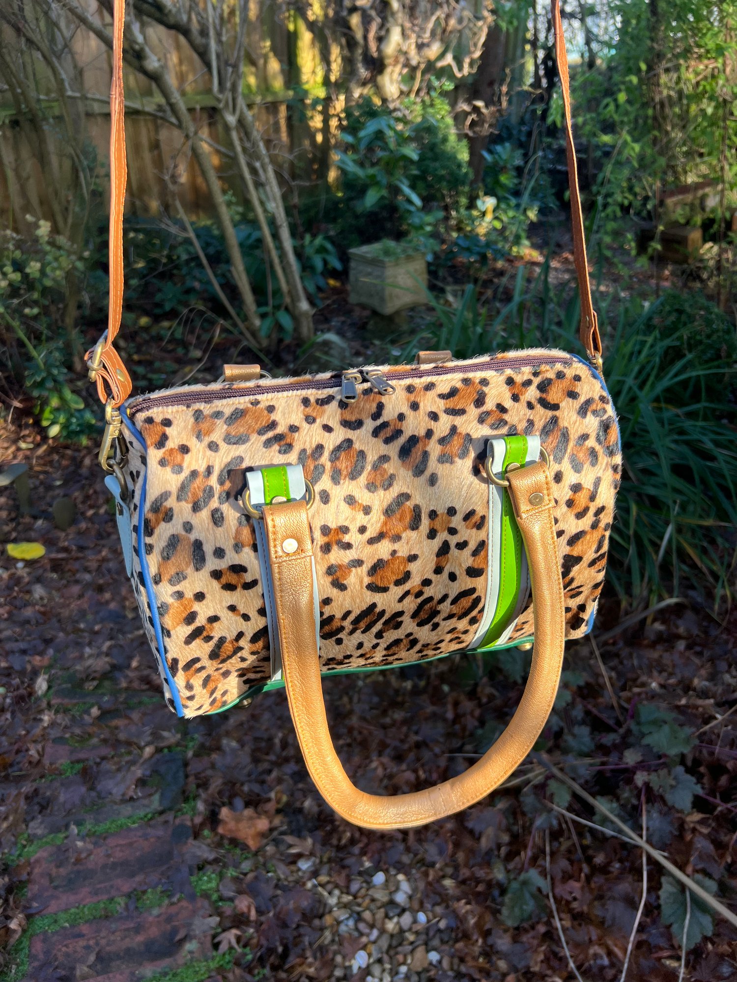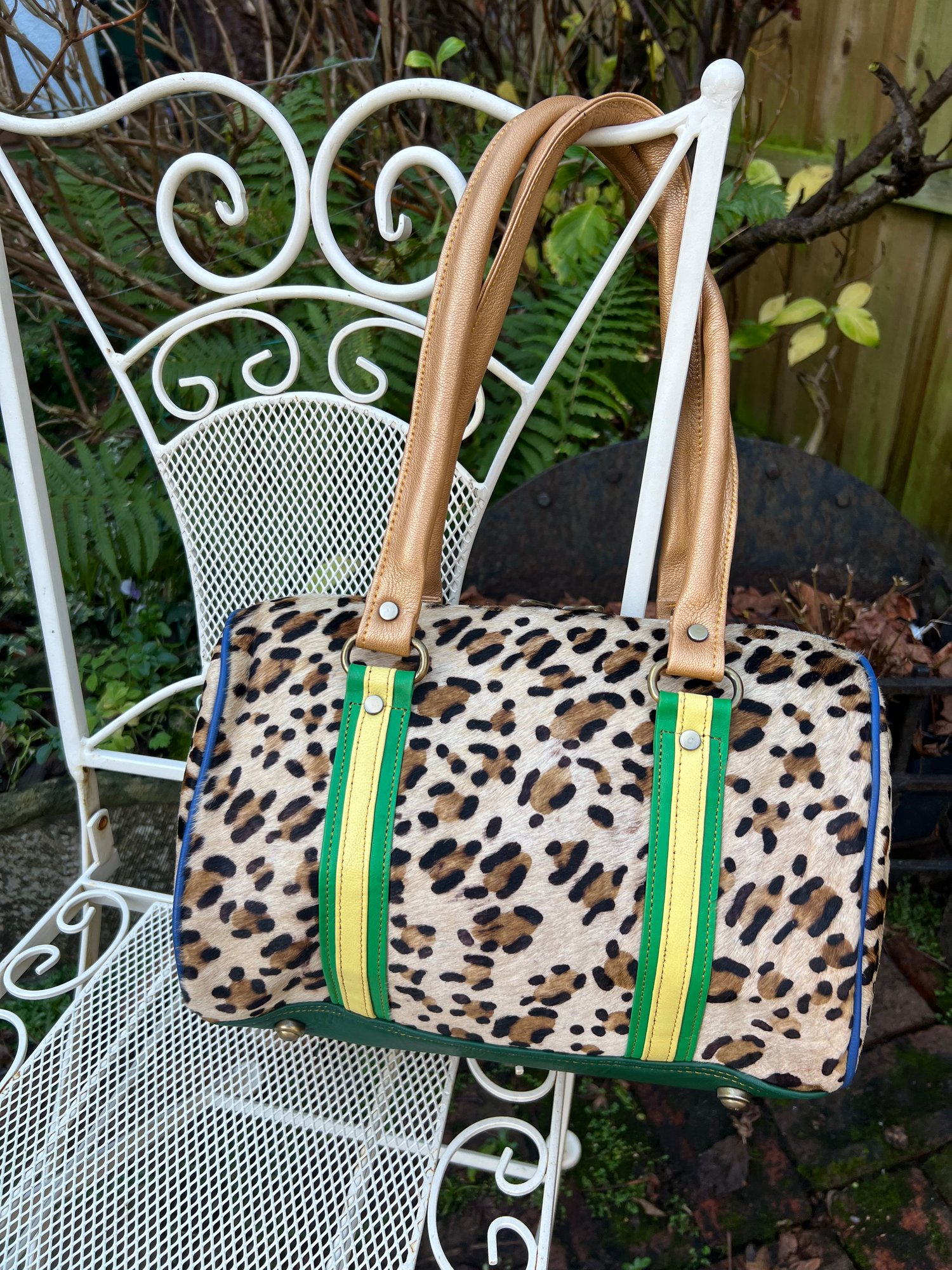This bag is made from goat skin stamped up with a leopard design - it is a Zerowaste product.