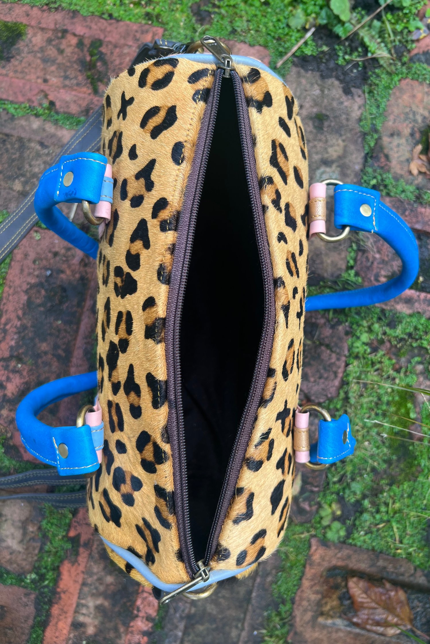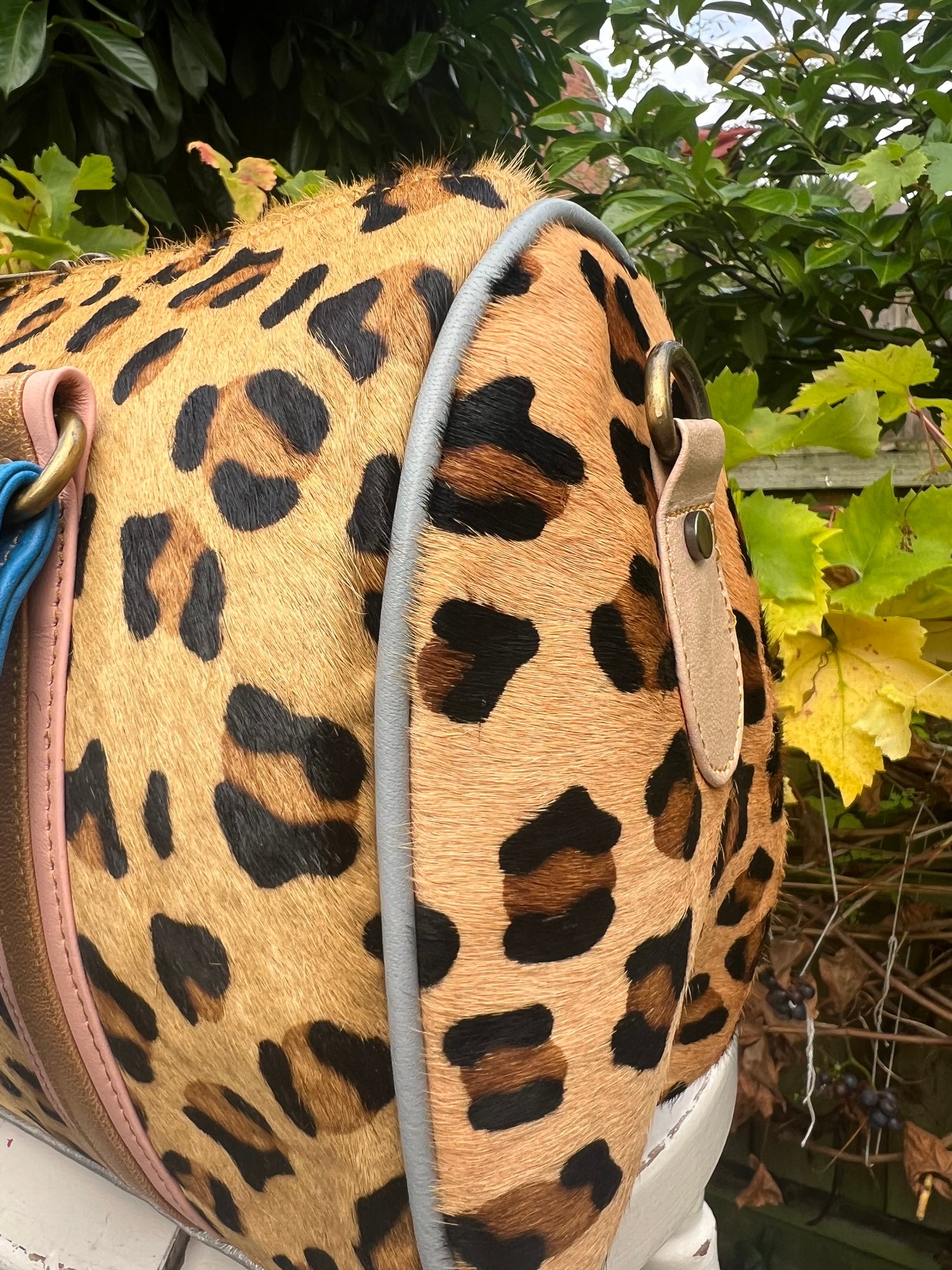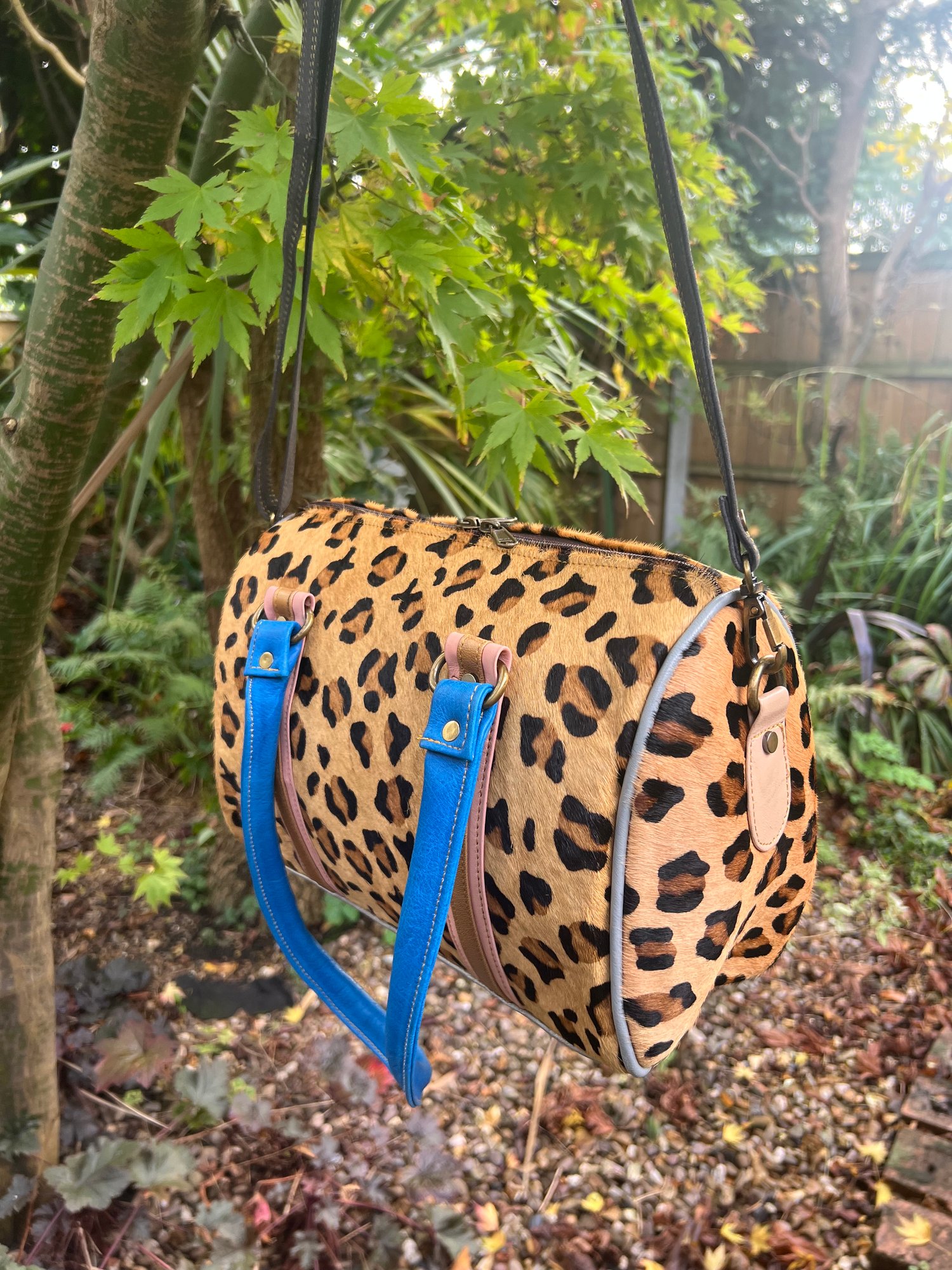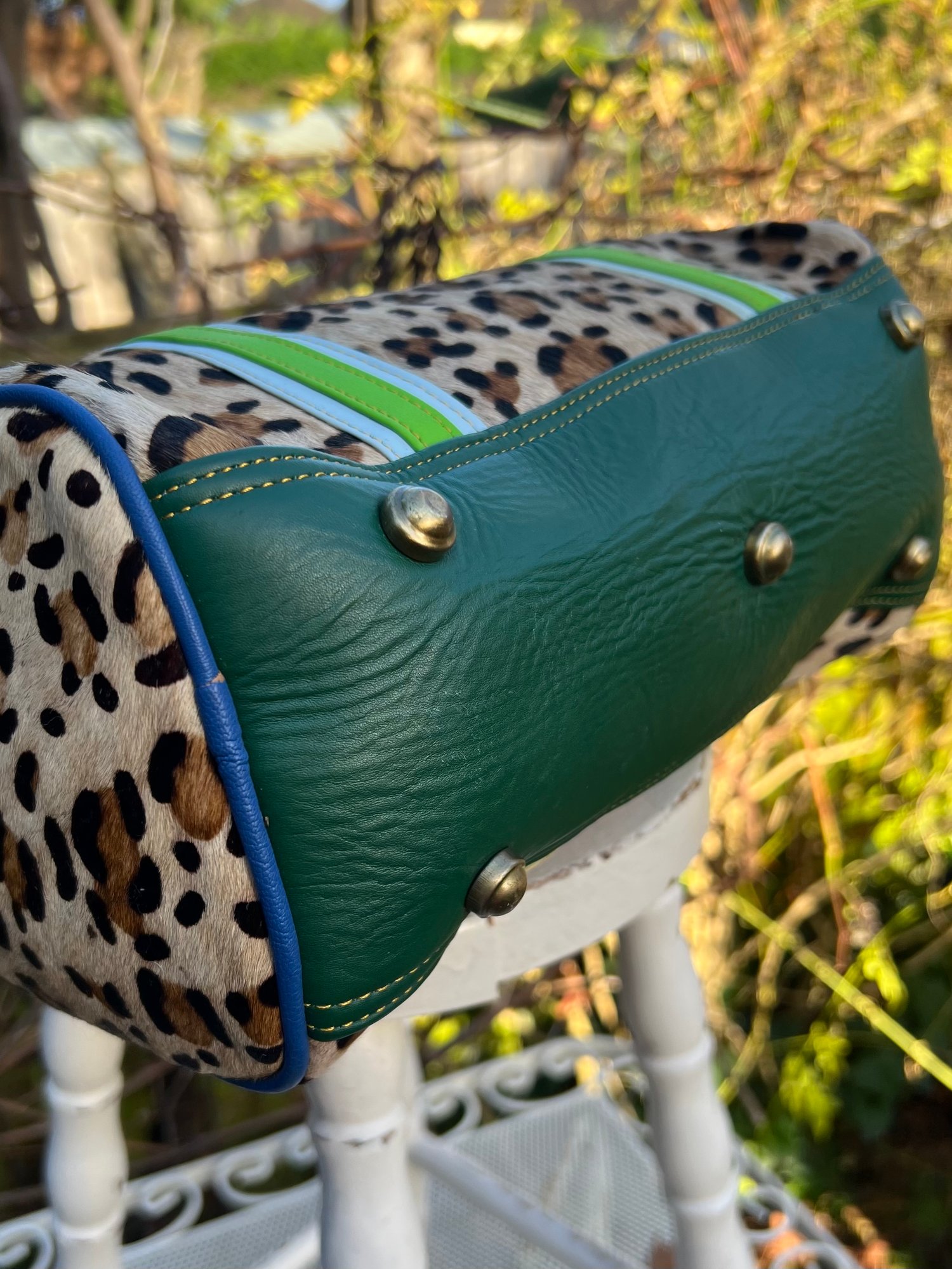 This bag is made from goat skin stamped up with a leopard design - it is a Zerowaste product.