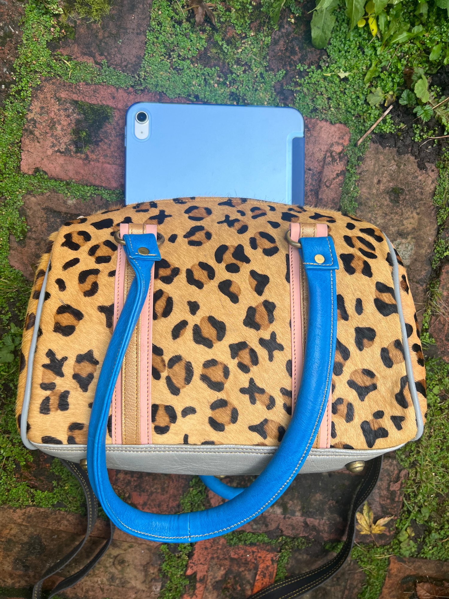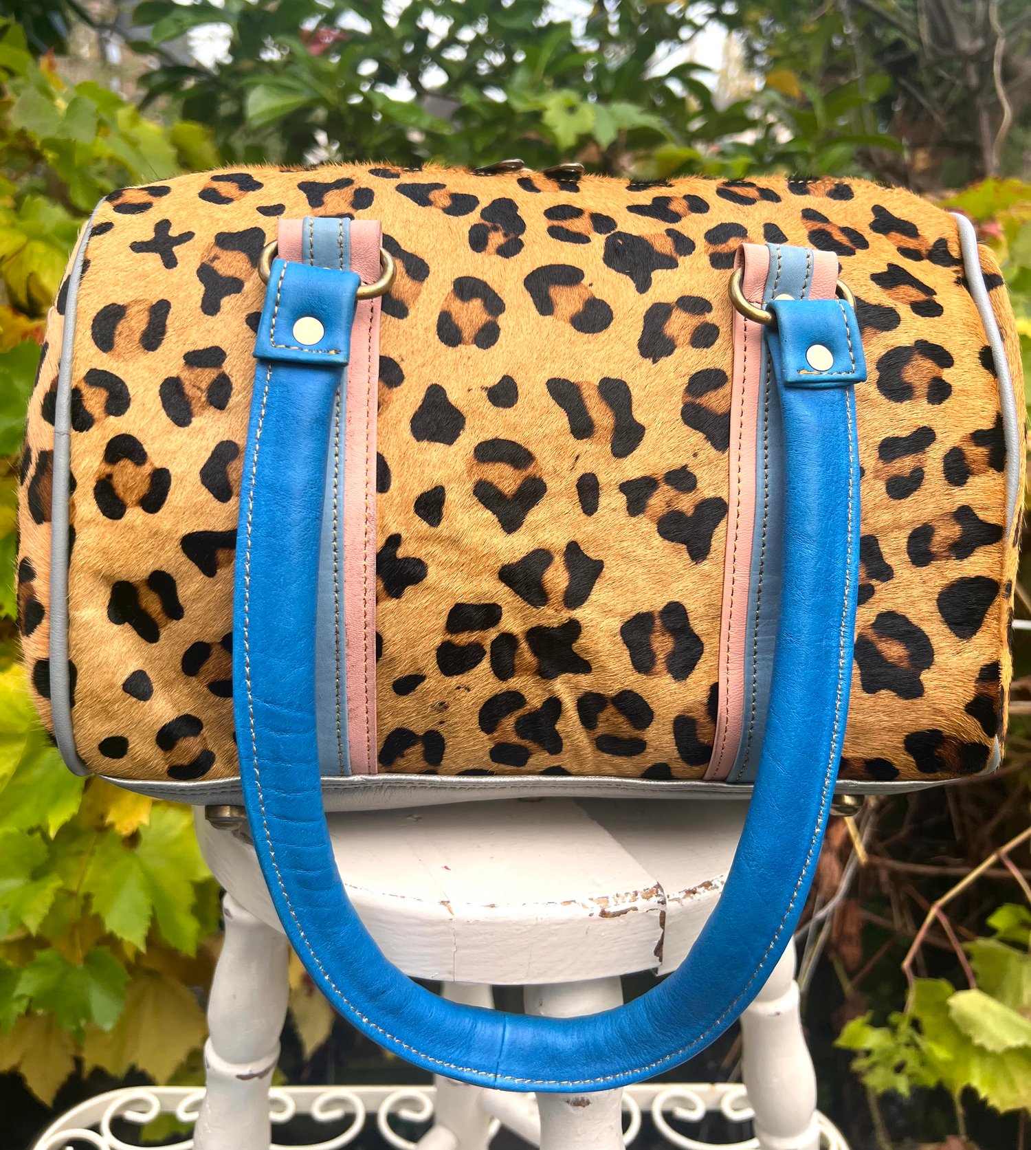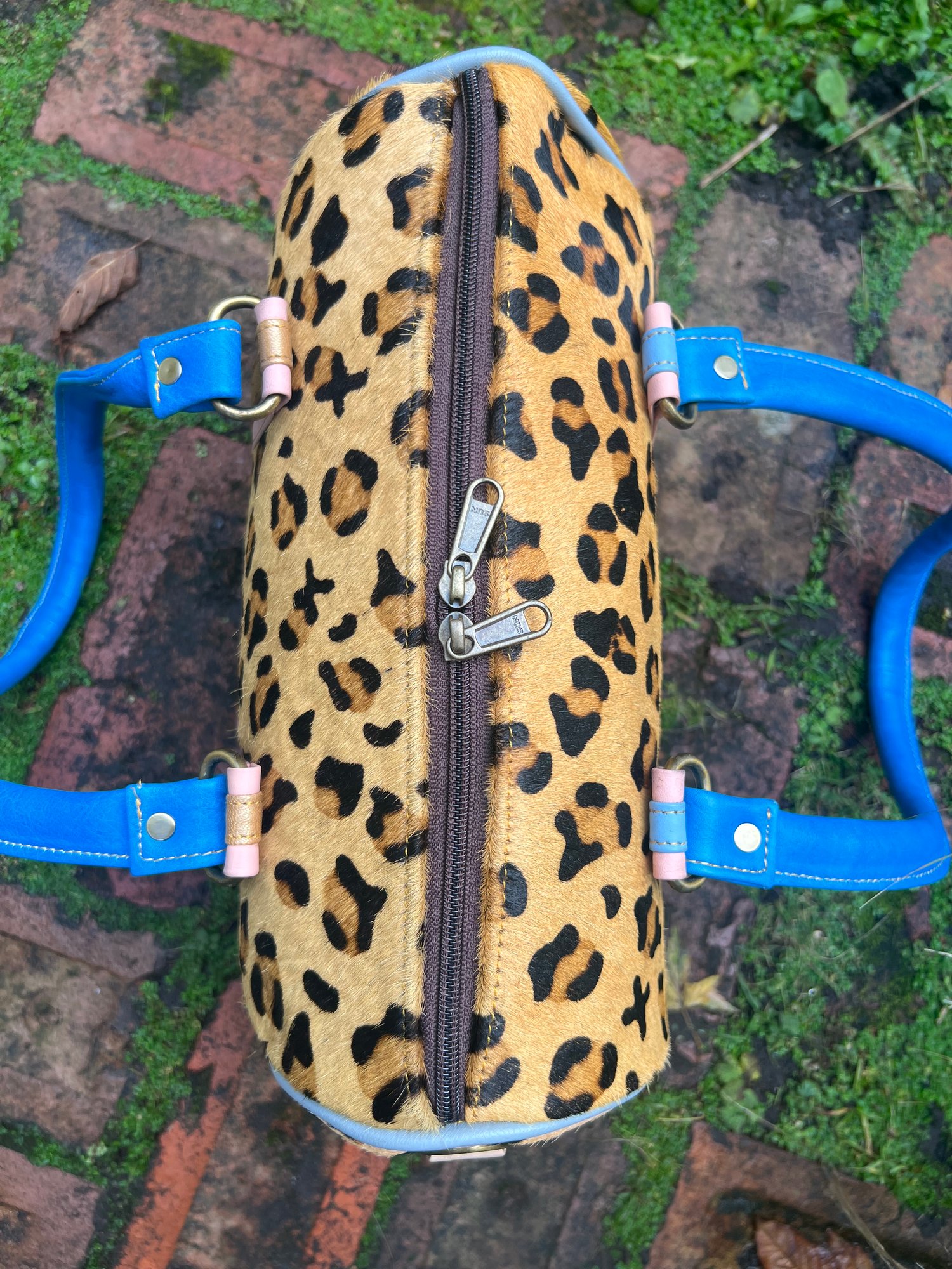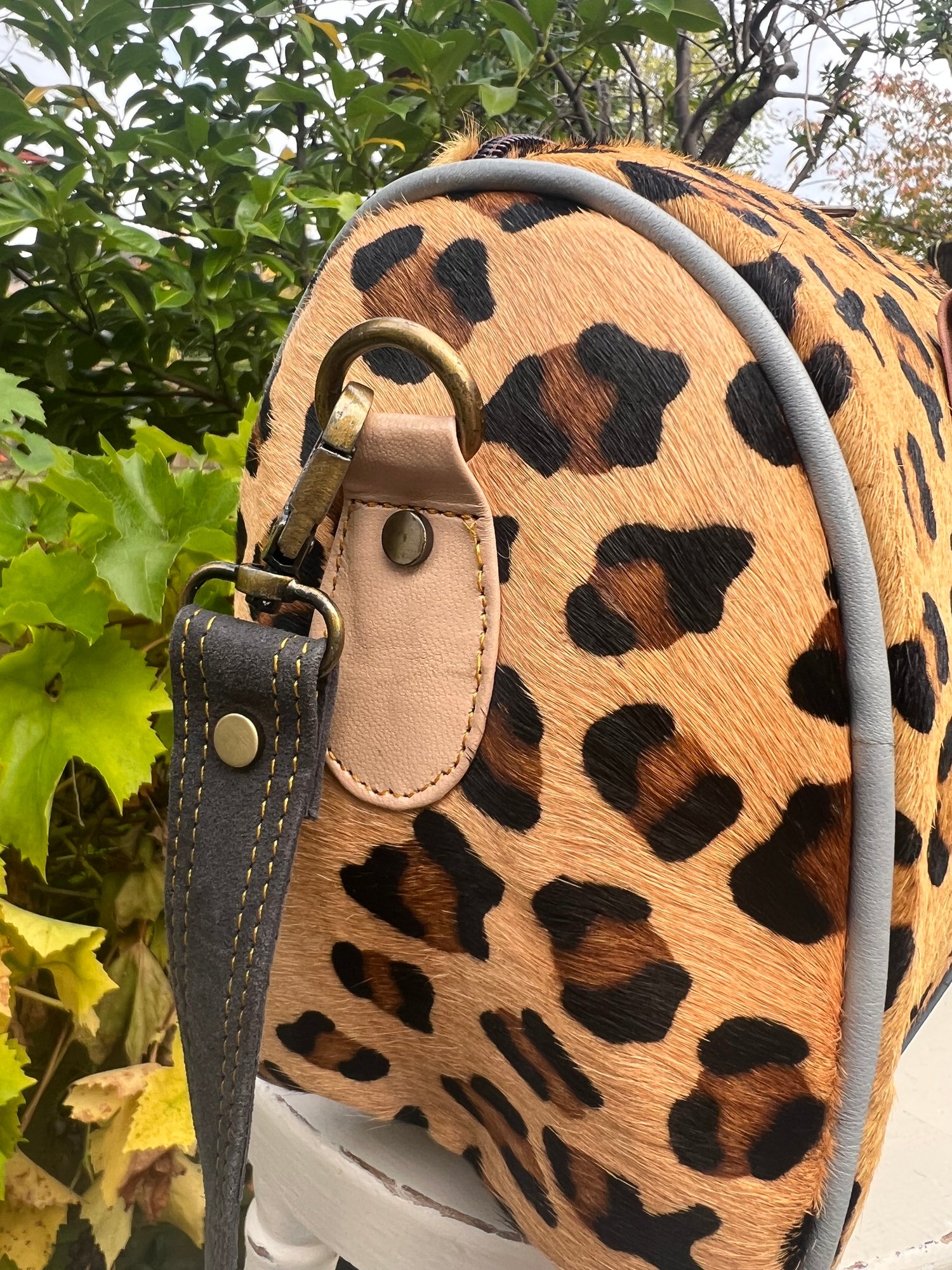 This bag is made from goat skin stamped up with a leopard design - it is a Zerowaste product.