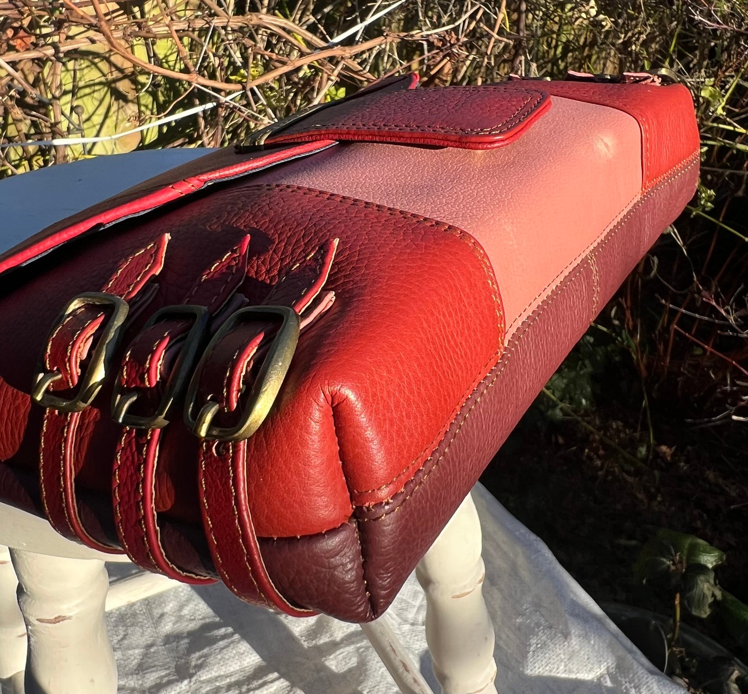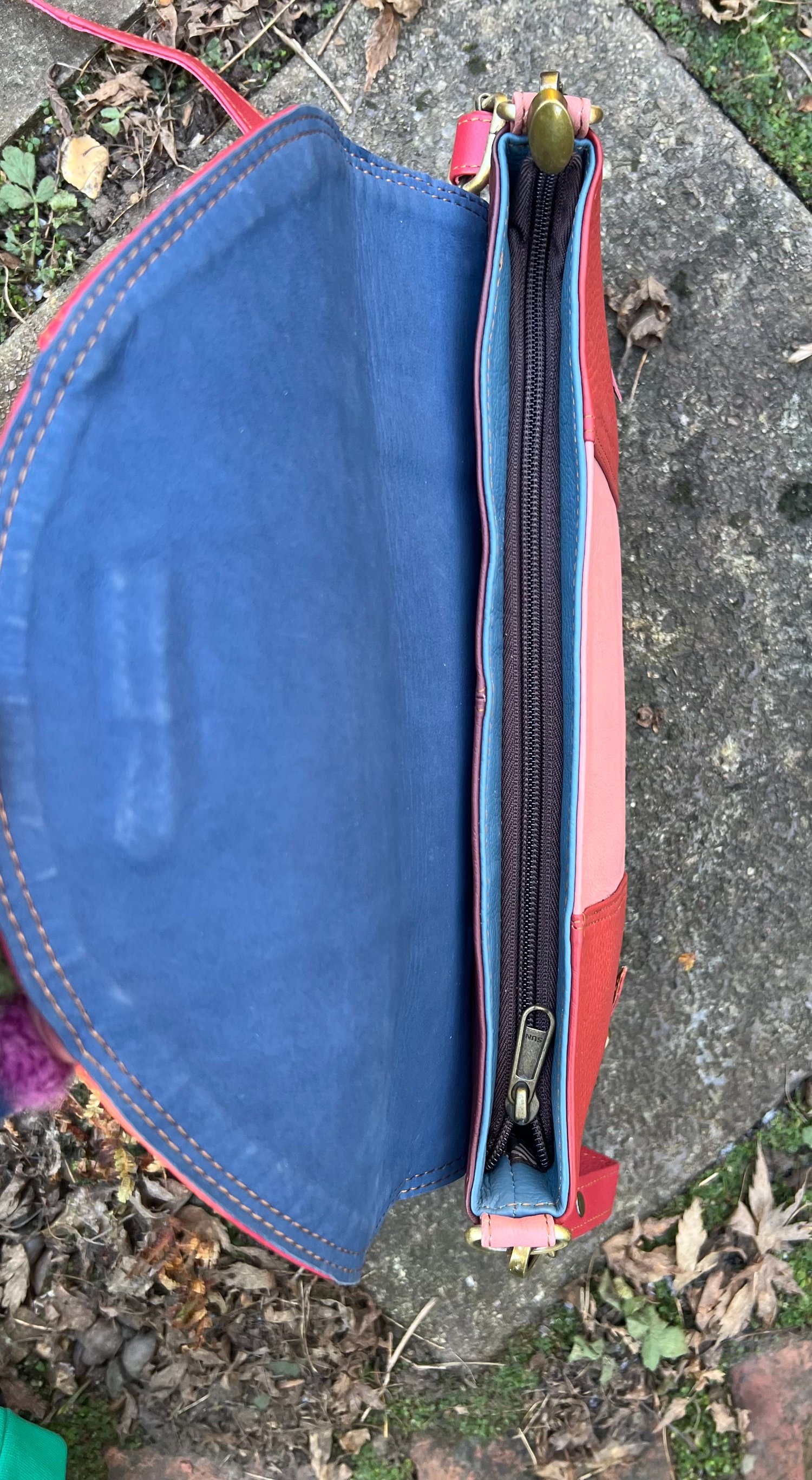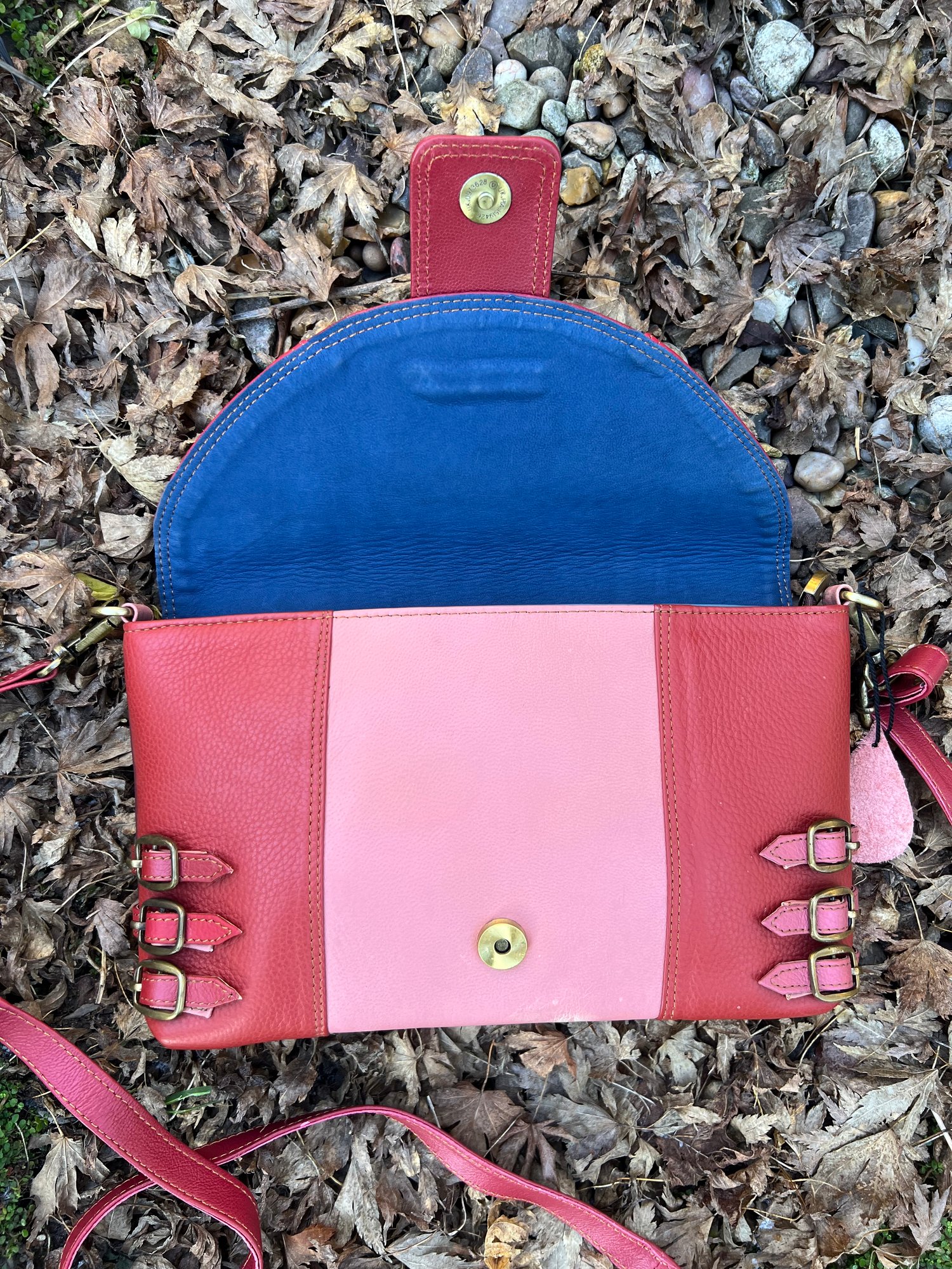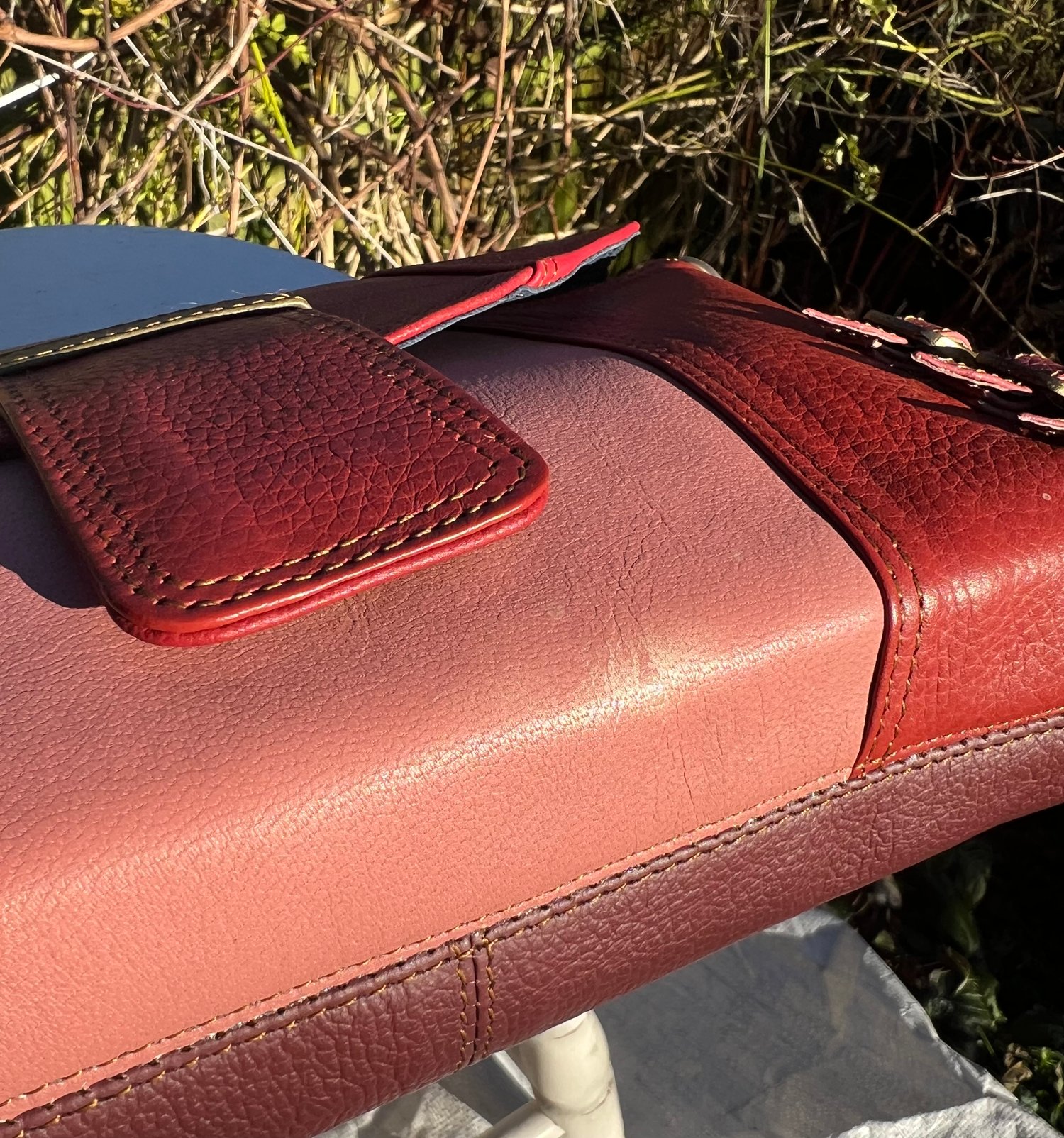Issue - small discoloured mark in pink leather, bottom right (please see pic)