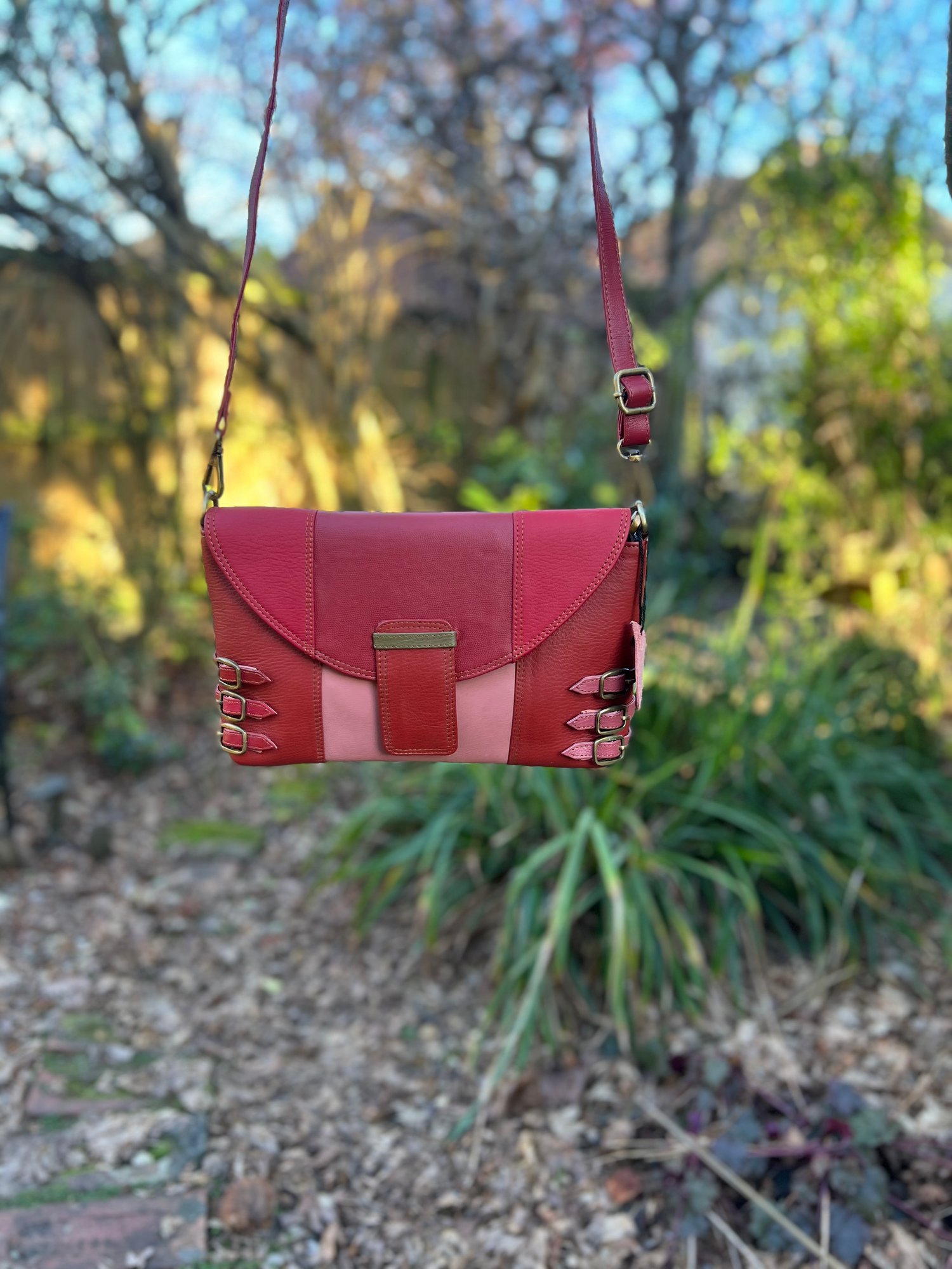 These bags are made from offcuts collected from Indian factories. The left-over waste, which would otherwise go to landfill, is crafted into a unique, one-of-kind beautiful bags helping the environment with zerowaste sustainable fashion.