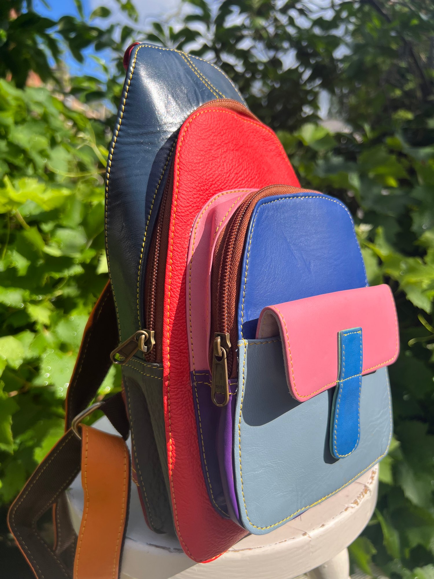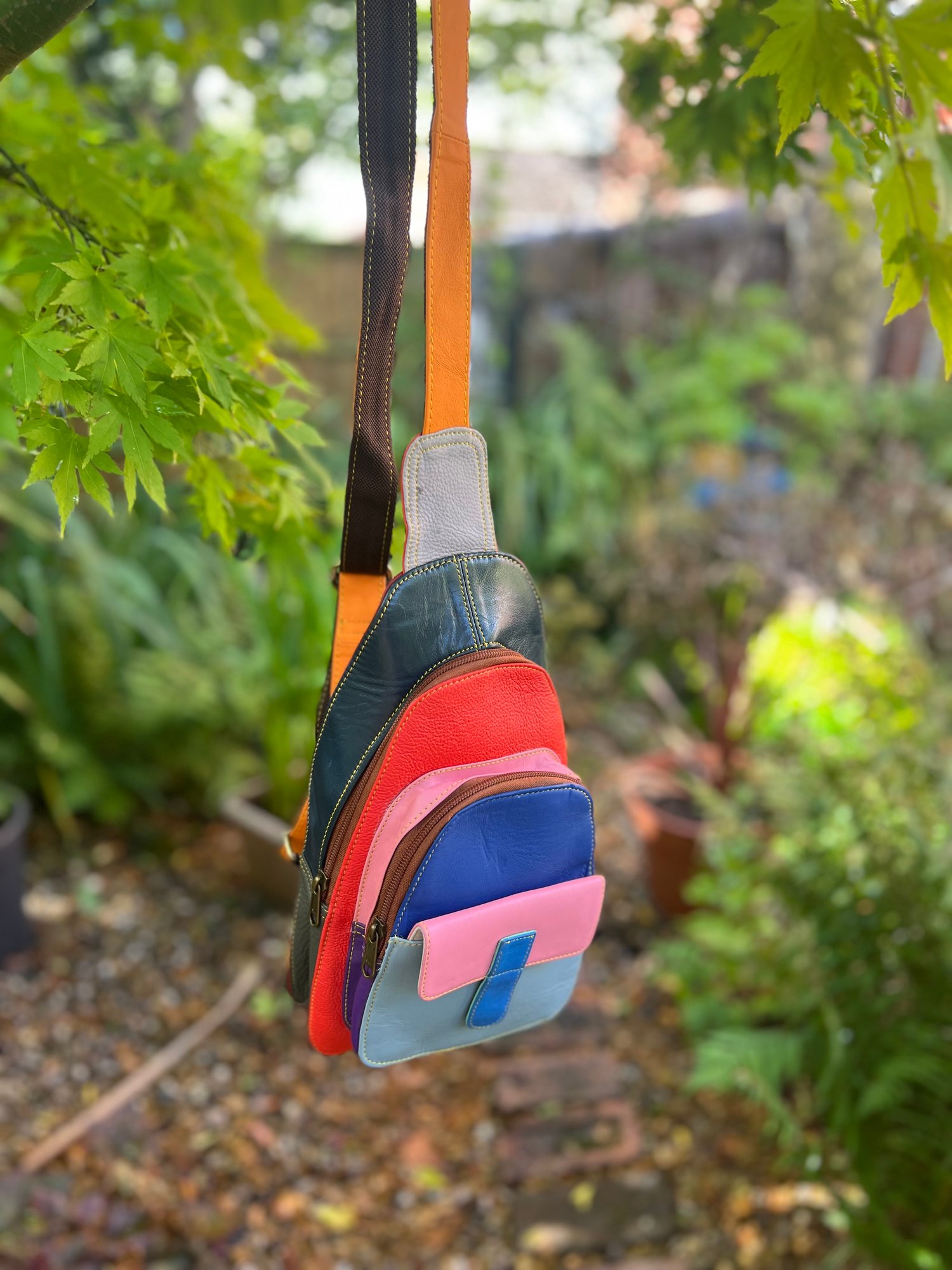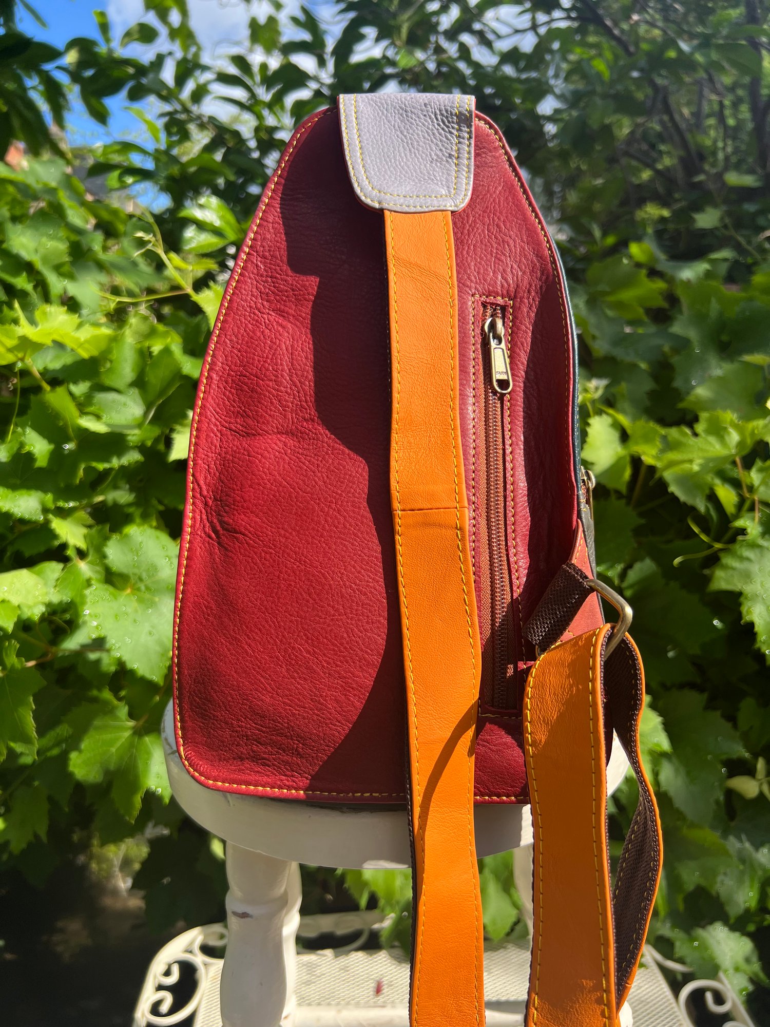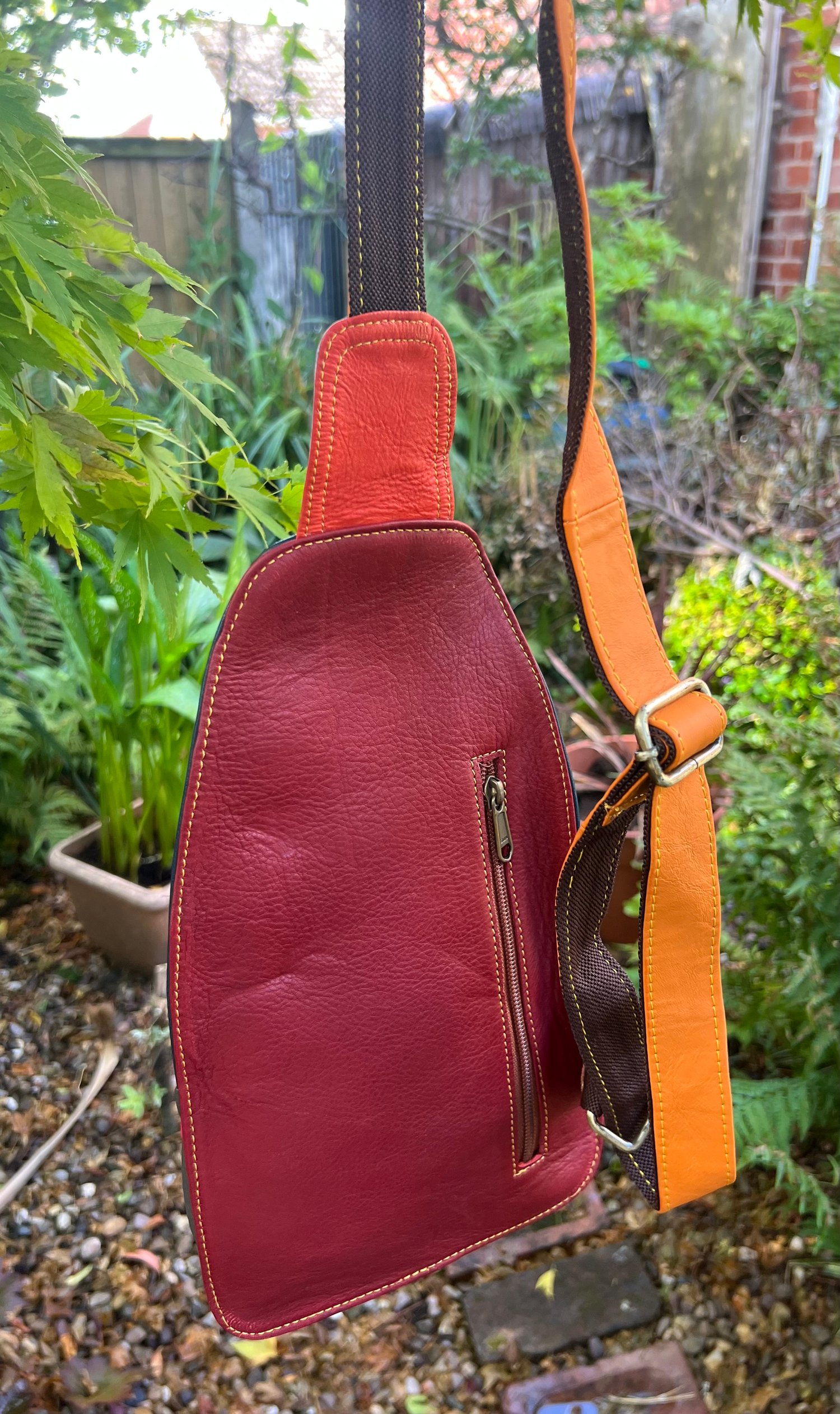 This beautifully crafted bag is made from leather offcuts which would otherwise go to landfill. The bag is one-of-a kind and a perfect unique gift.