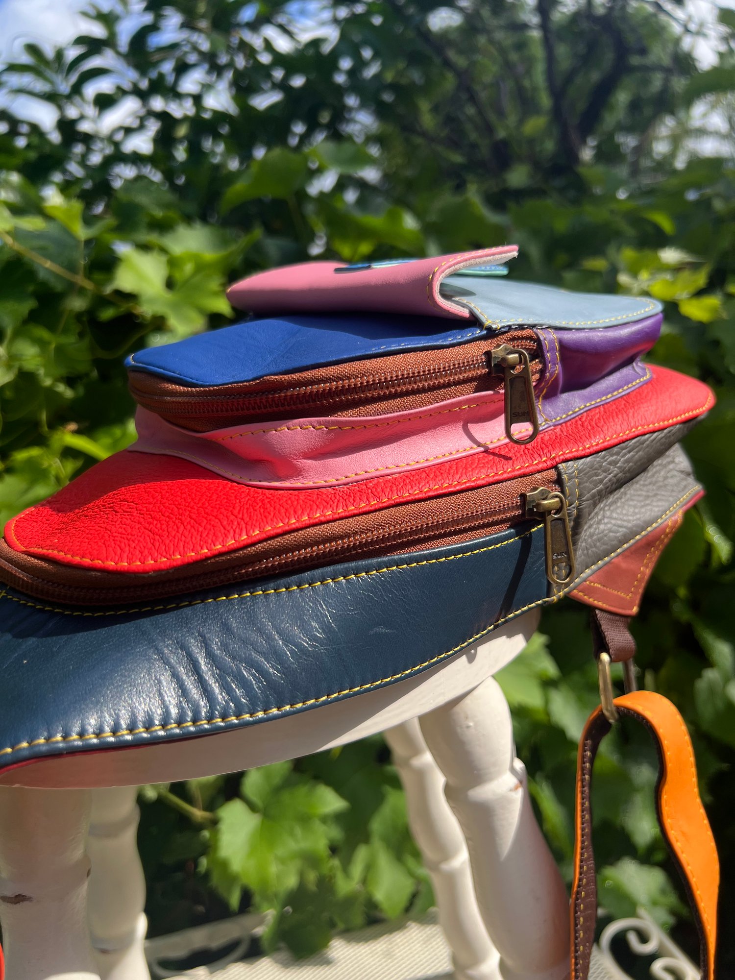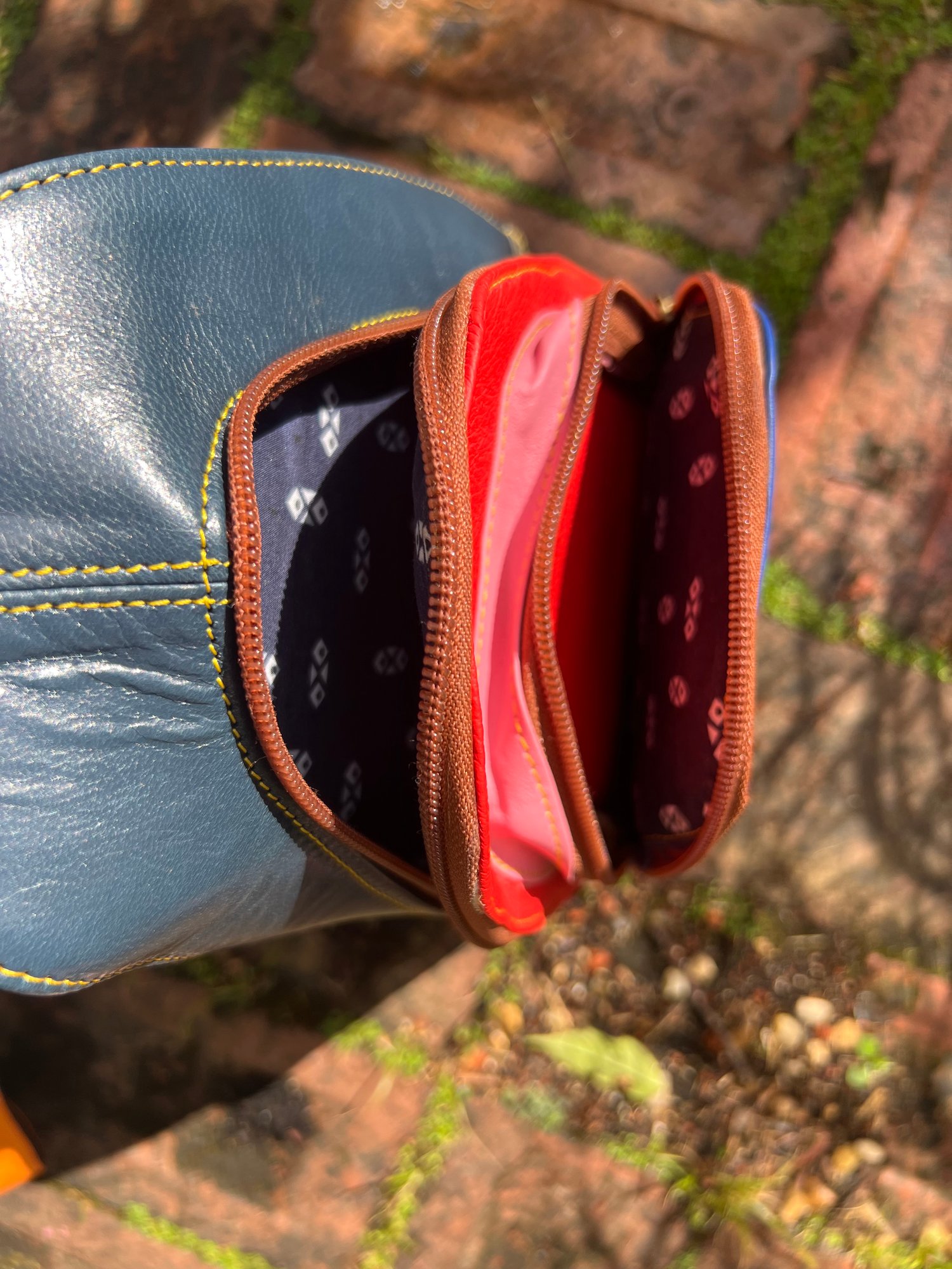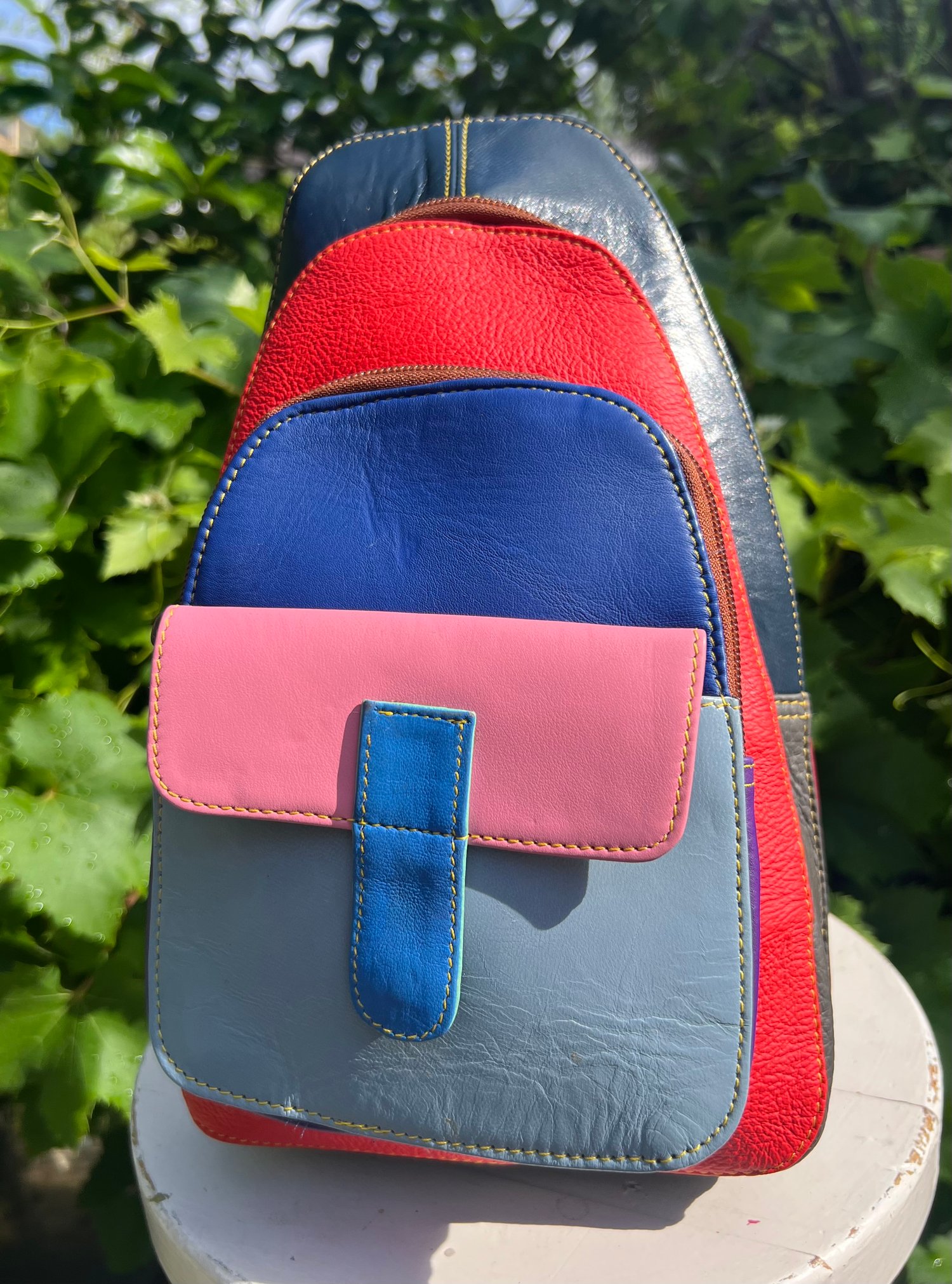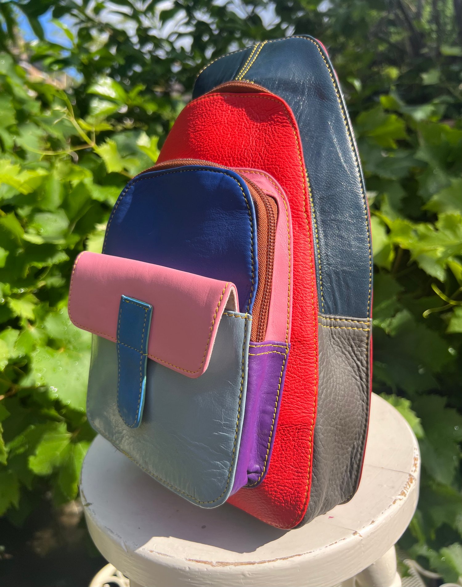 This beautifully crafted bag is made from leather offcuts which would otherwise go to landfill. The bag is one-of-a kind and a perfect unique gift.