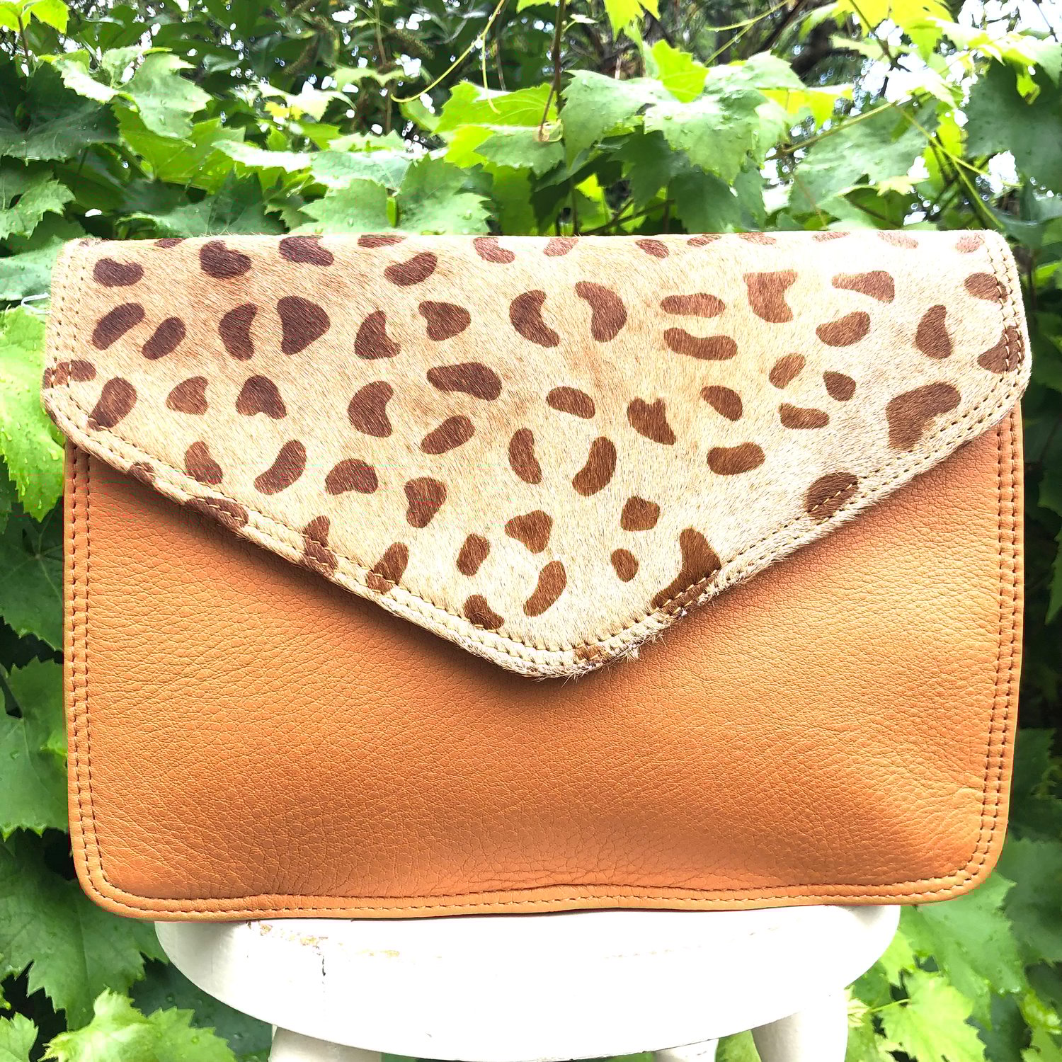 New to our Harlequin Collection is this good-sized buffalo leather bag. Simple in design, the bag can be used as a clutch or crossbody.