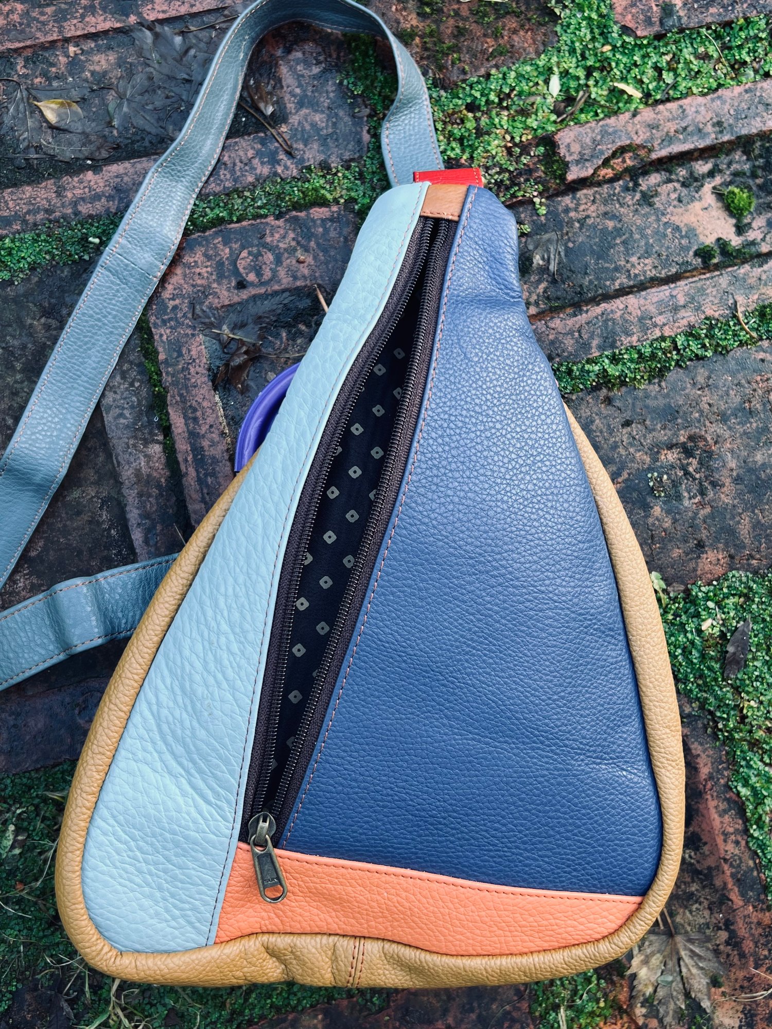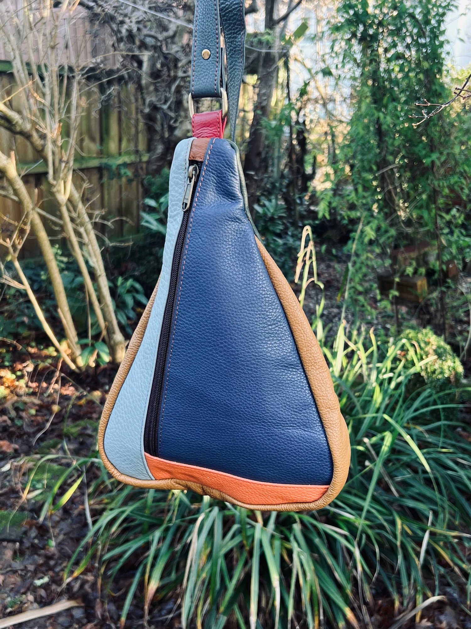 Another fabulous addition to our Harlequin range. This unusual and colourful triangle sling/crossbody bag is great for carrying your essentials.