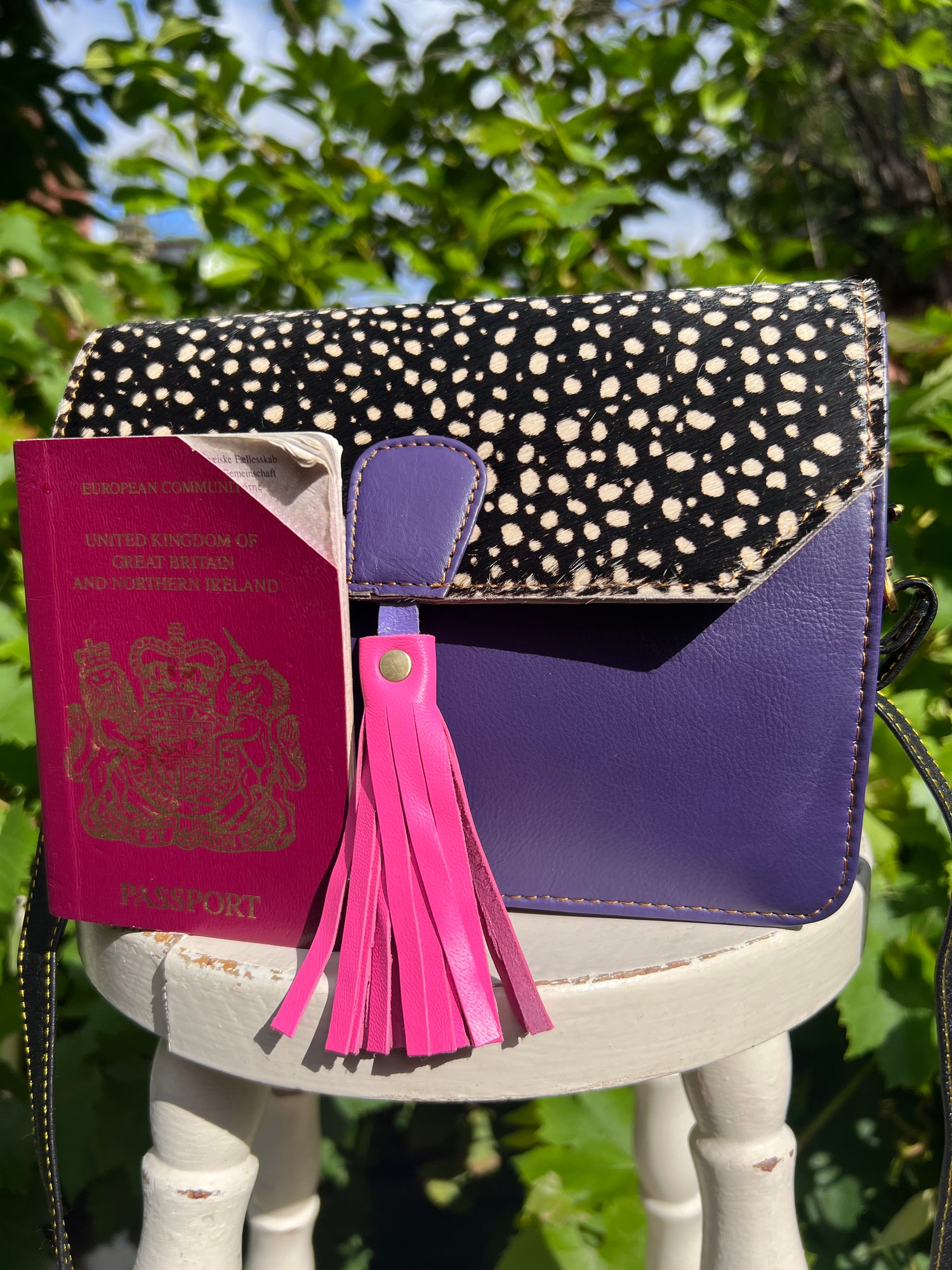 This fabulous leather/animal print bag is made in India from offcuts of leather which would otherwise go to landfill. No exotic animals have been used to produce these bags, they are zerowaste, sustainable and made from printed goat skin. They have been beautifully crafted together to produce what will certainly be a talking point when you take it out.