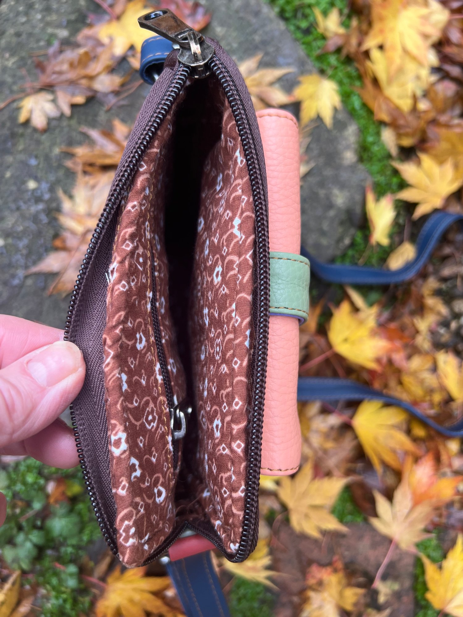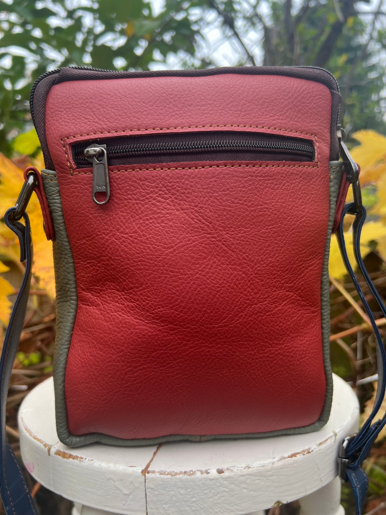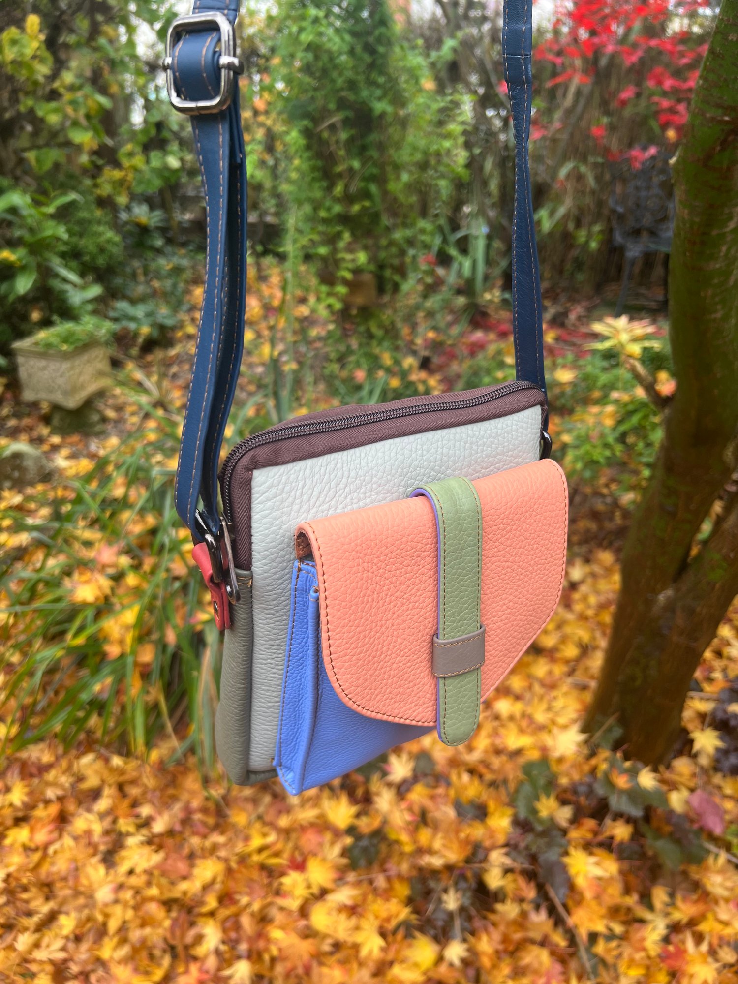 Our sustainable colourful leather bags are made for us in India using offcuts of leather which would otherwise go to landfill. They have been ethically crafted to produce both an unusual and unique bag.