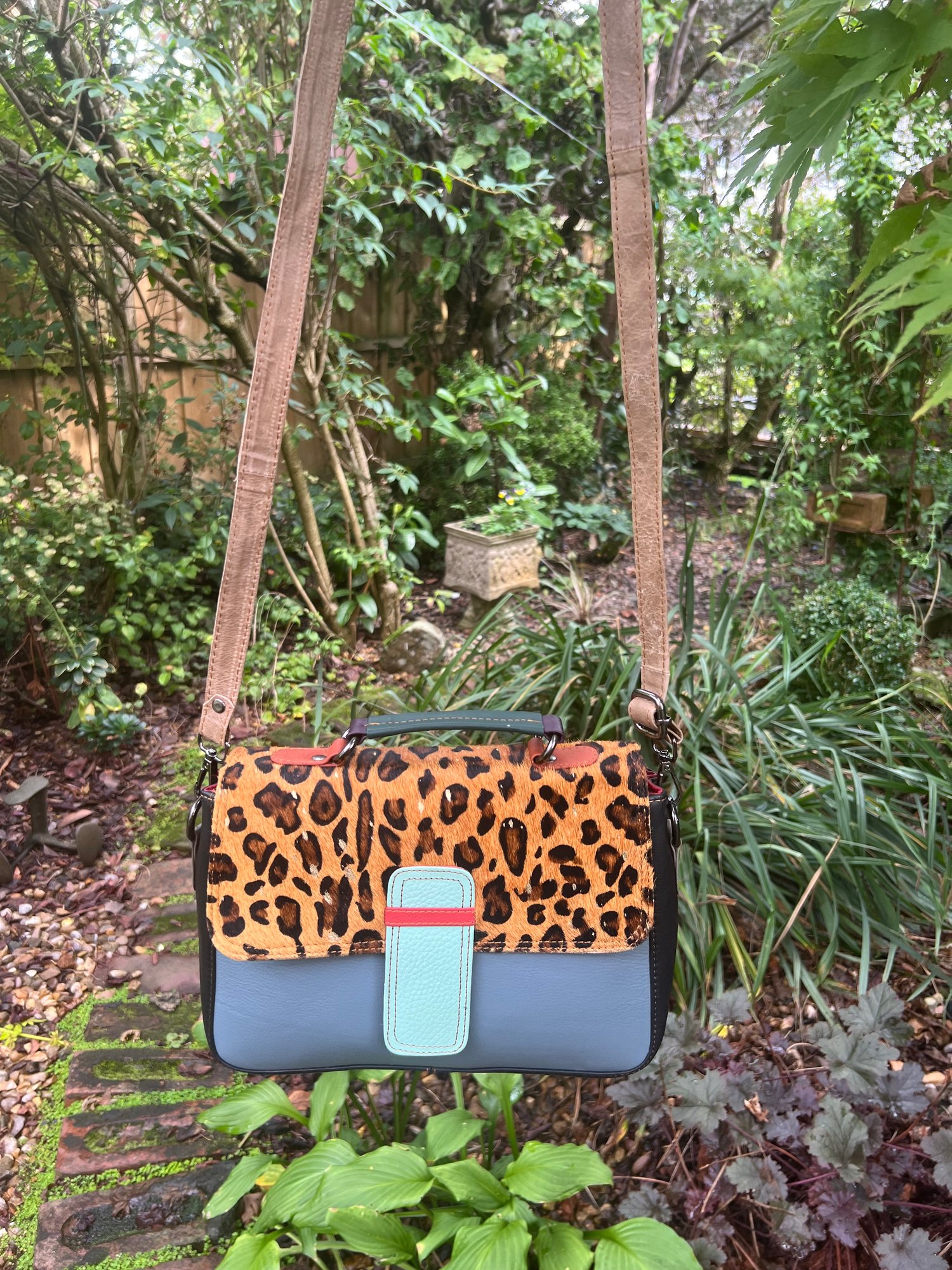Our recycled leather bags are unique, there being only one in each colourway. The sustainable leather used in crafting these bags are offcuts, which would otherwise go to landfill. Our amazing Indian artisans work as a co-operative to produce both unusual and unique bags.