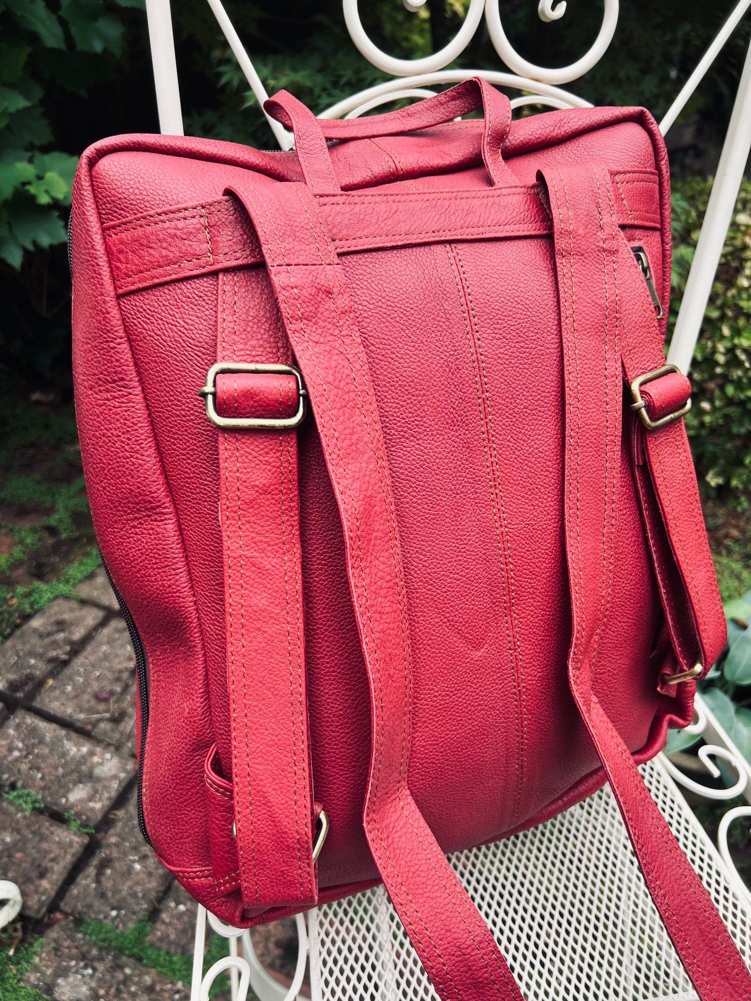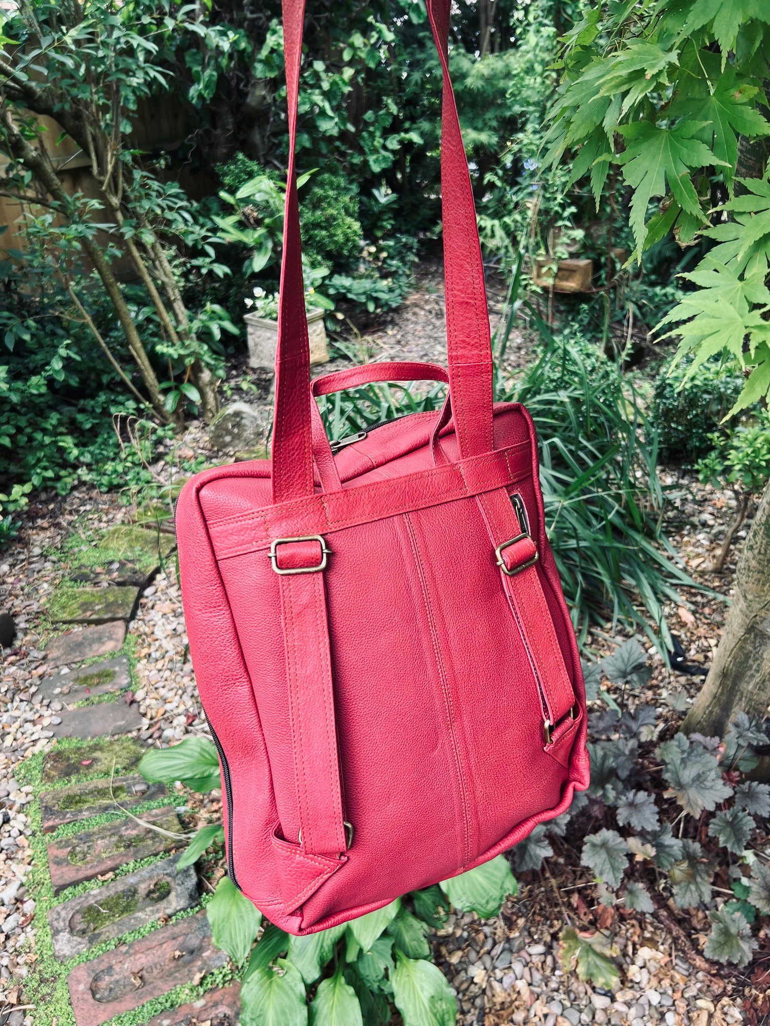 To the back is a further zipped pocket and the 2 adjustable straps, with one easy pull, converts it from backpack to crossbody.