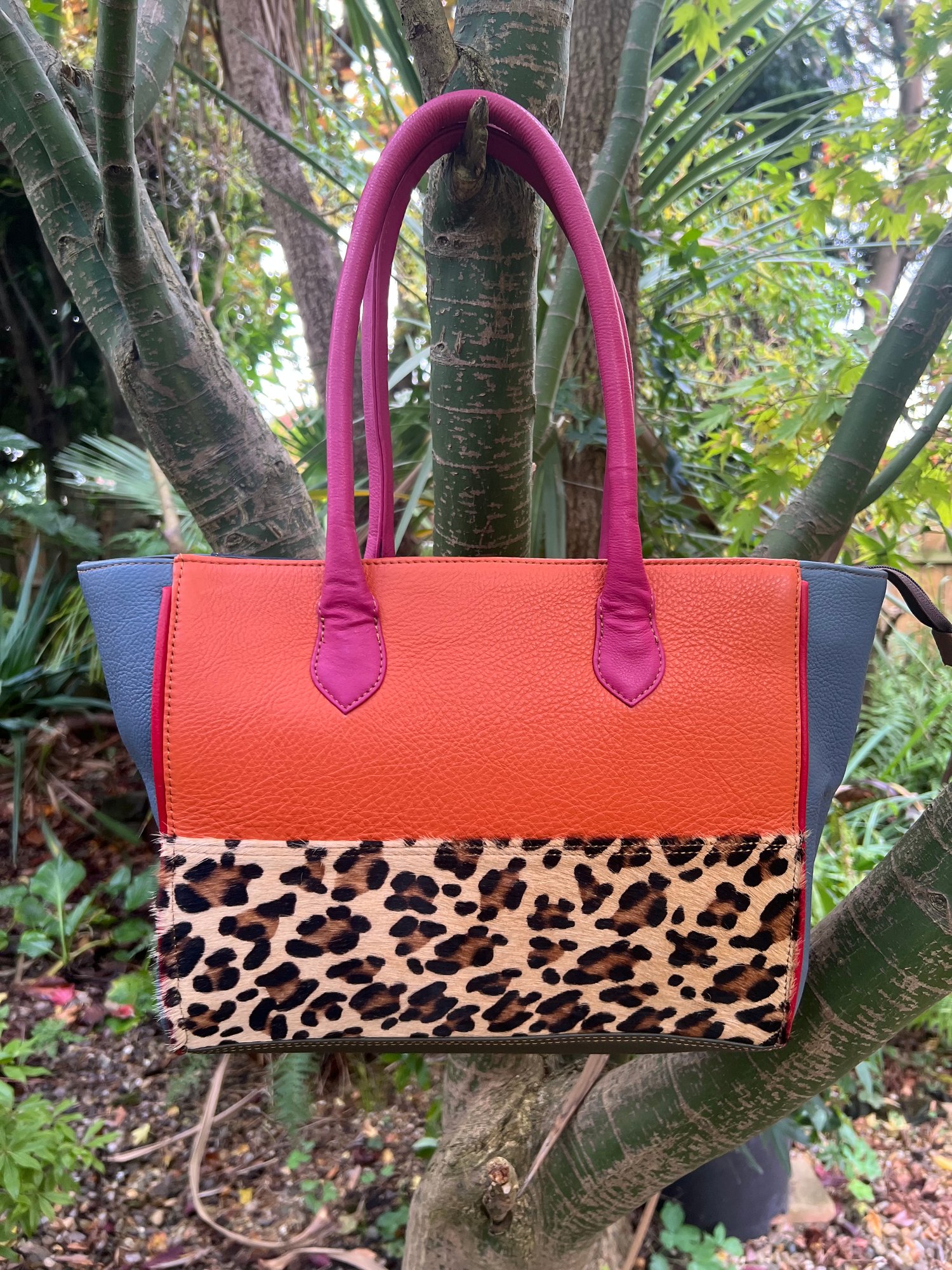 Harlequin Collection - Medium Leather Fur Tote #MT1