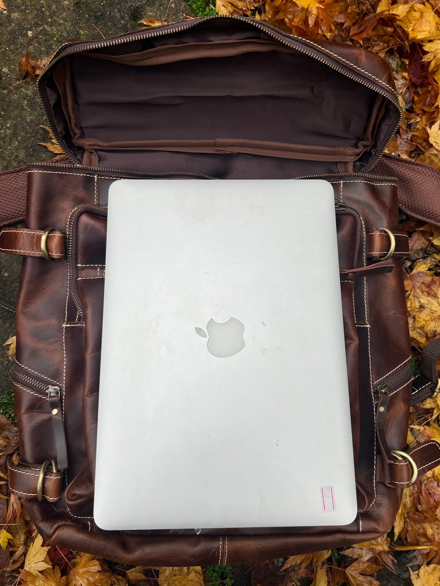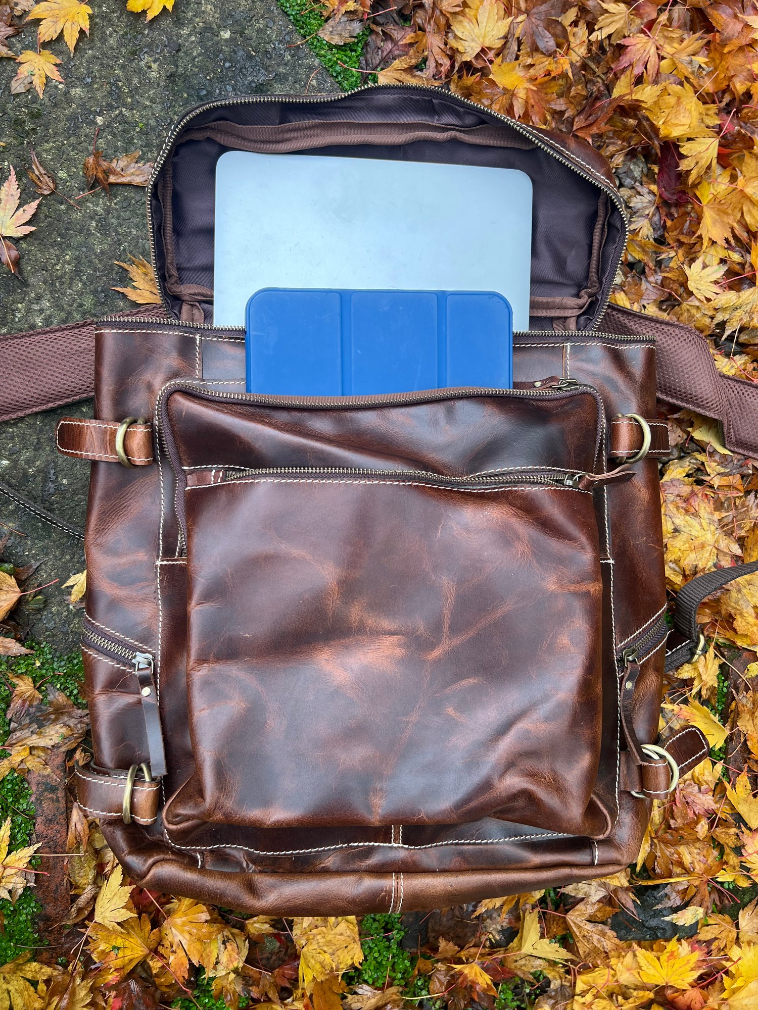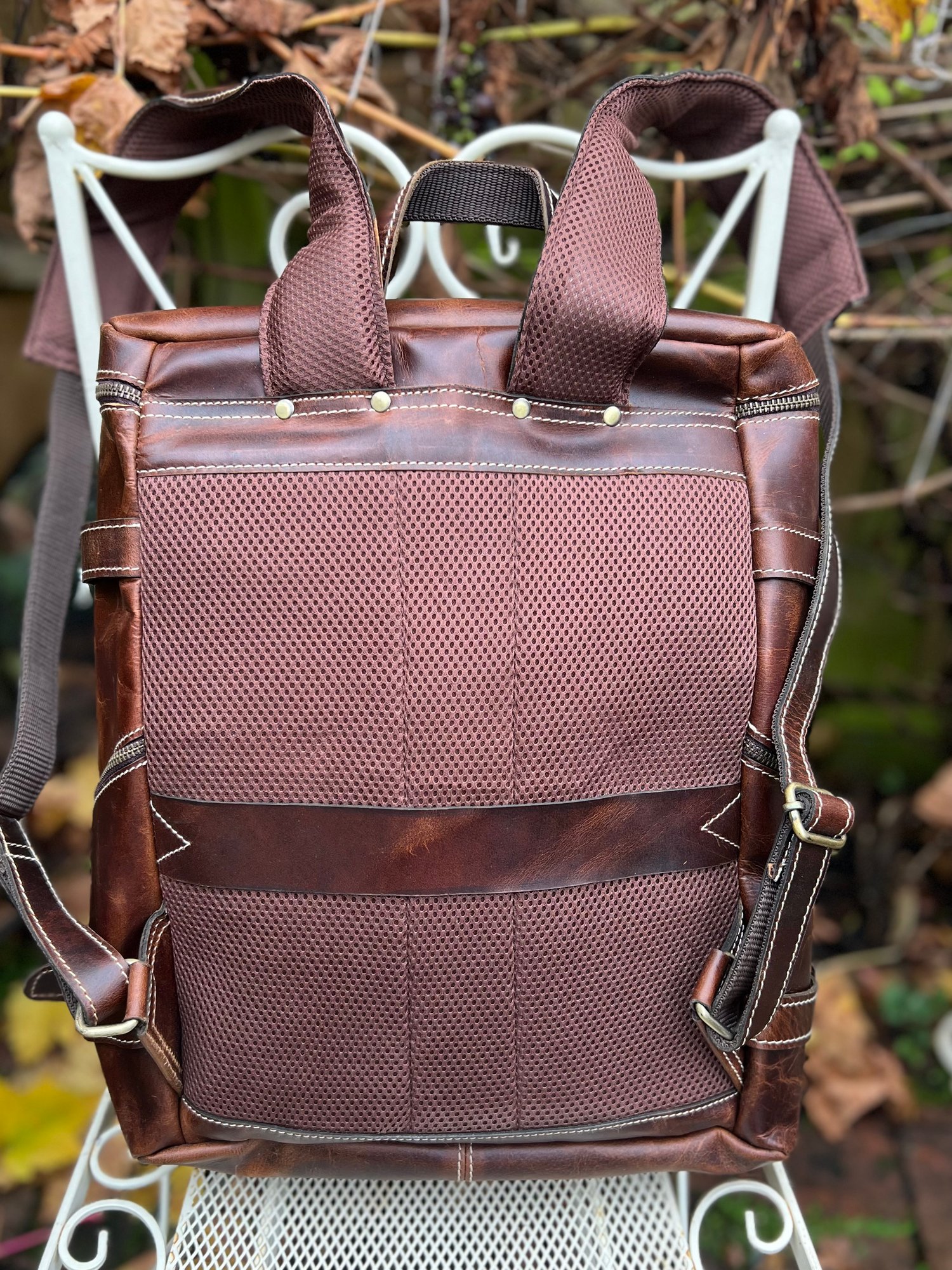This strong leather backpack is a great size and has plenty of compartments for laptop & iPad.