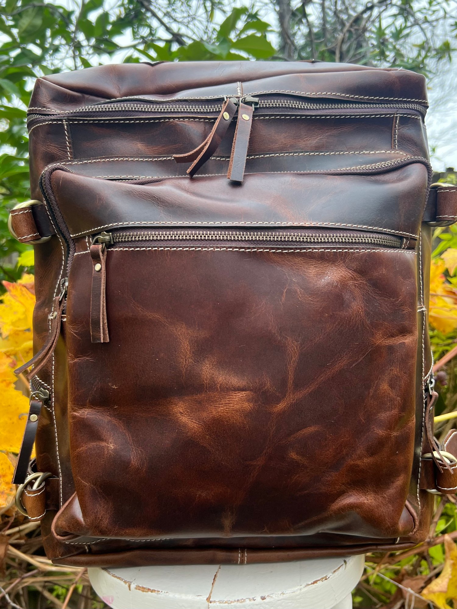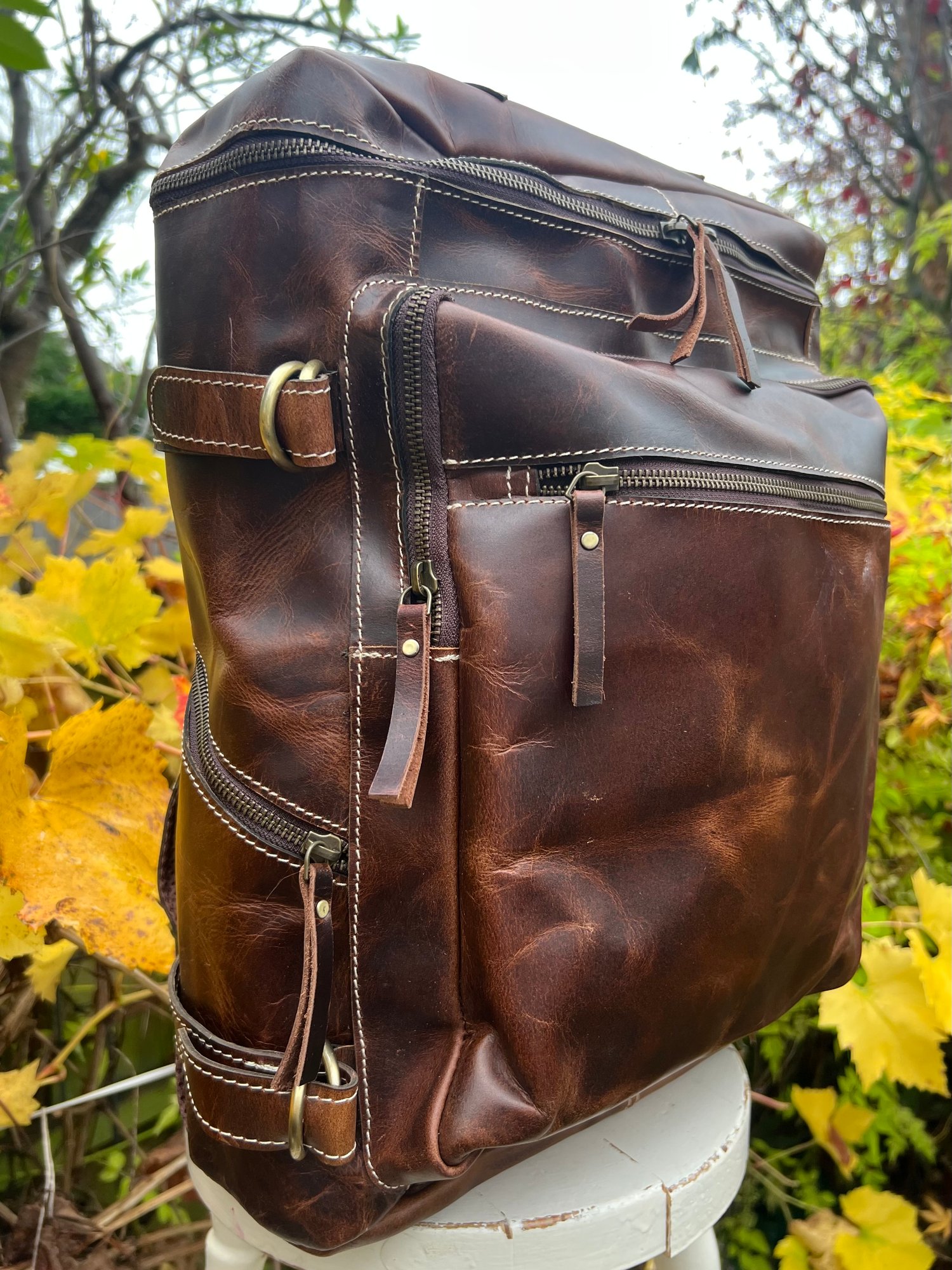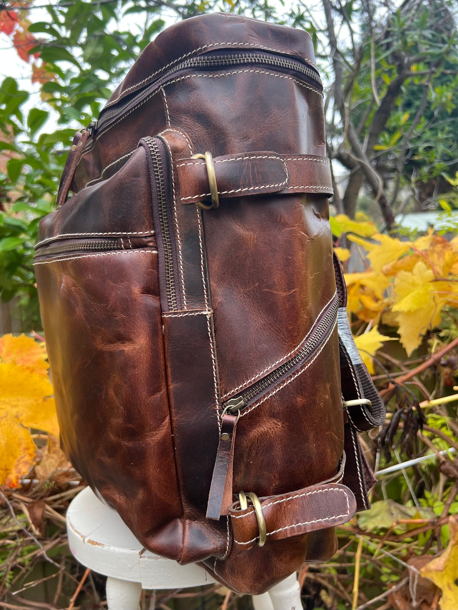 This strong leather backpack is a great size and has plenty of compartments for laptop & iPad.
