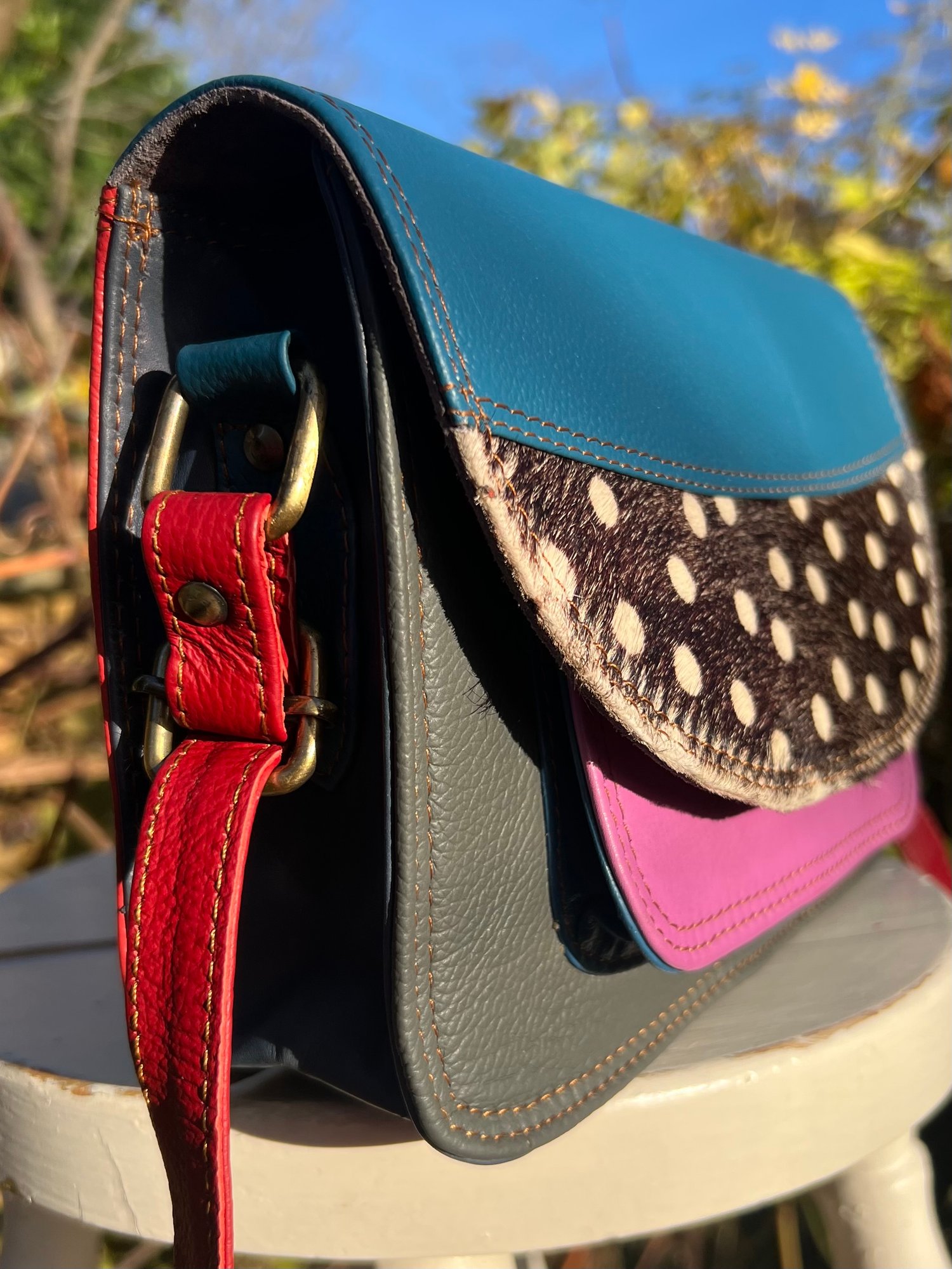 A simple stylish bag of fabulous colours, which will brighten up any outfit. Crafted by our Indian artisans from leather offcuts, it’s a unique, one-of-a-kind bag - and a really useful size.