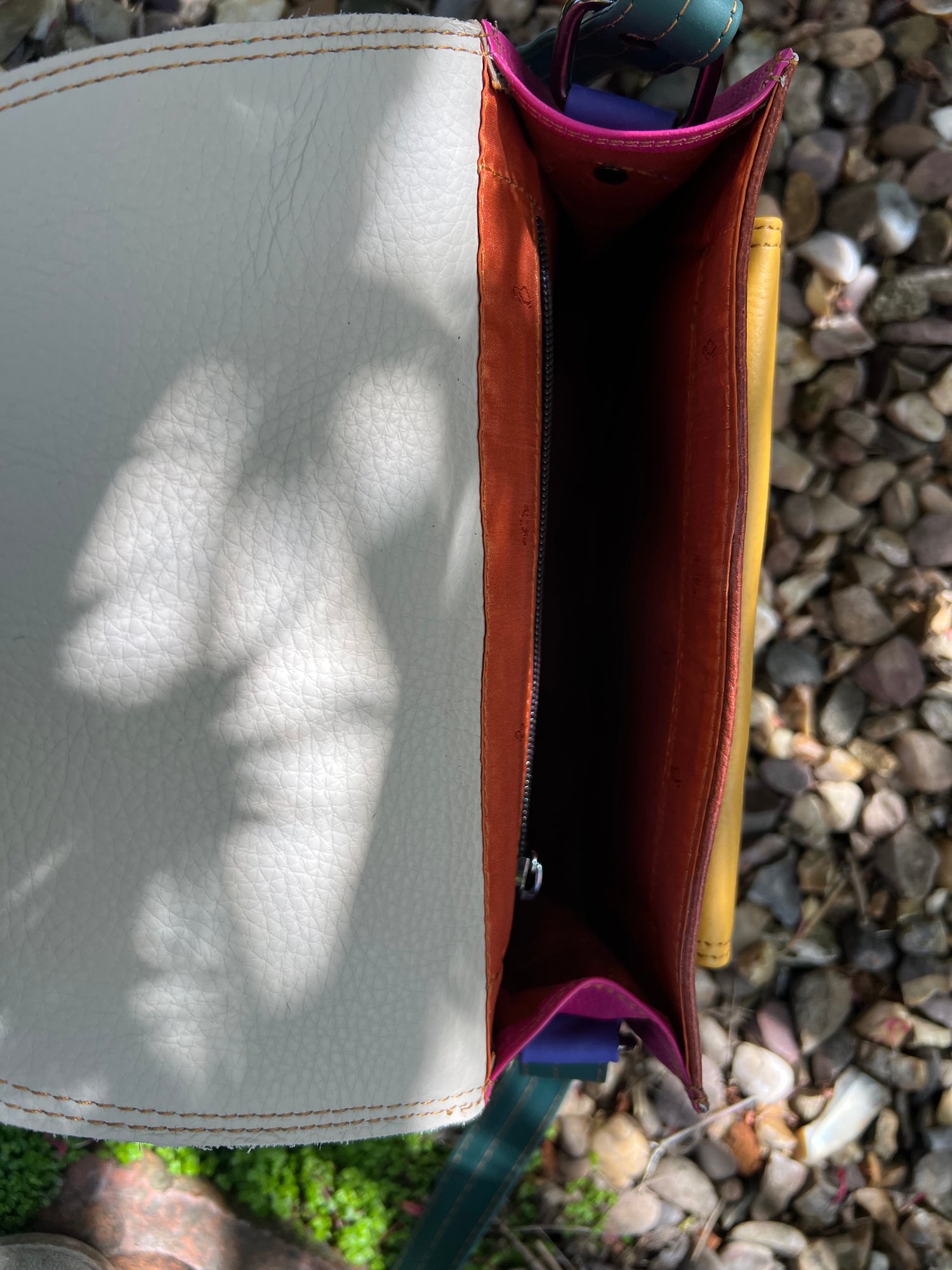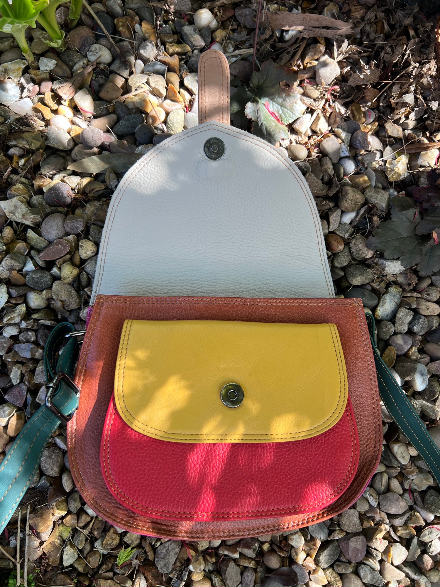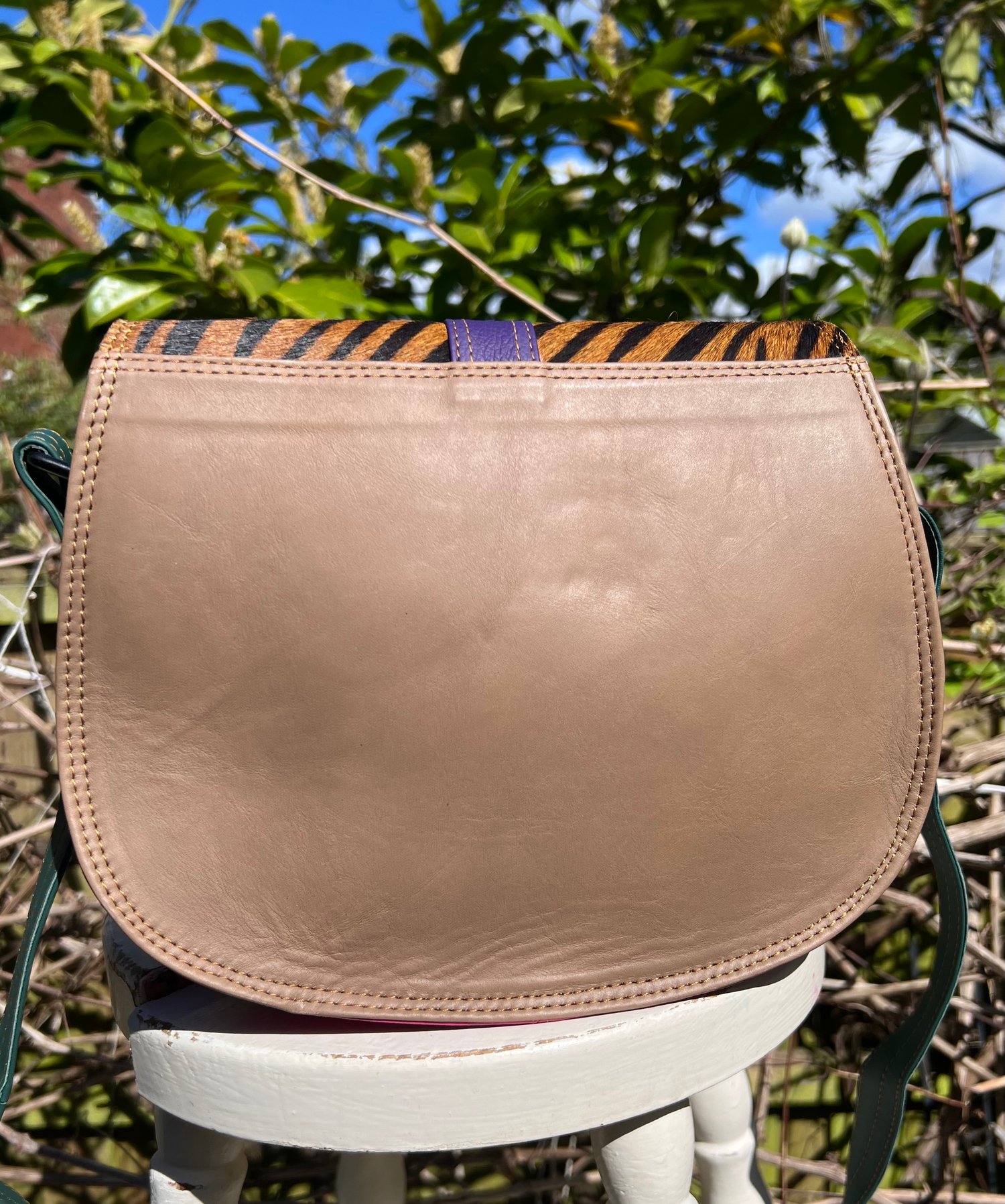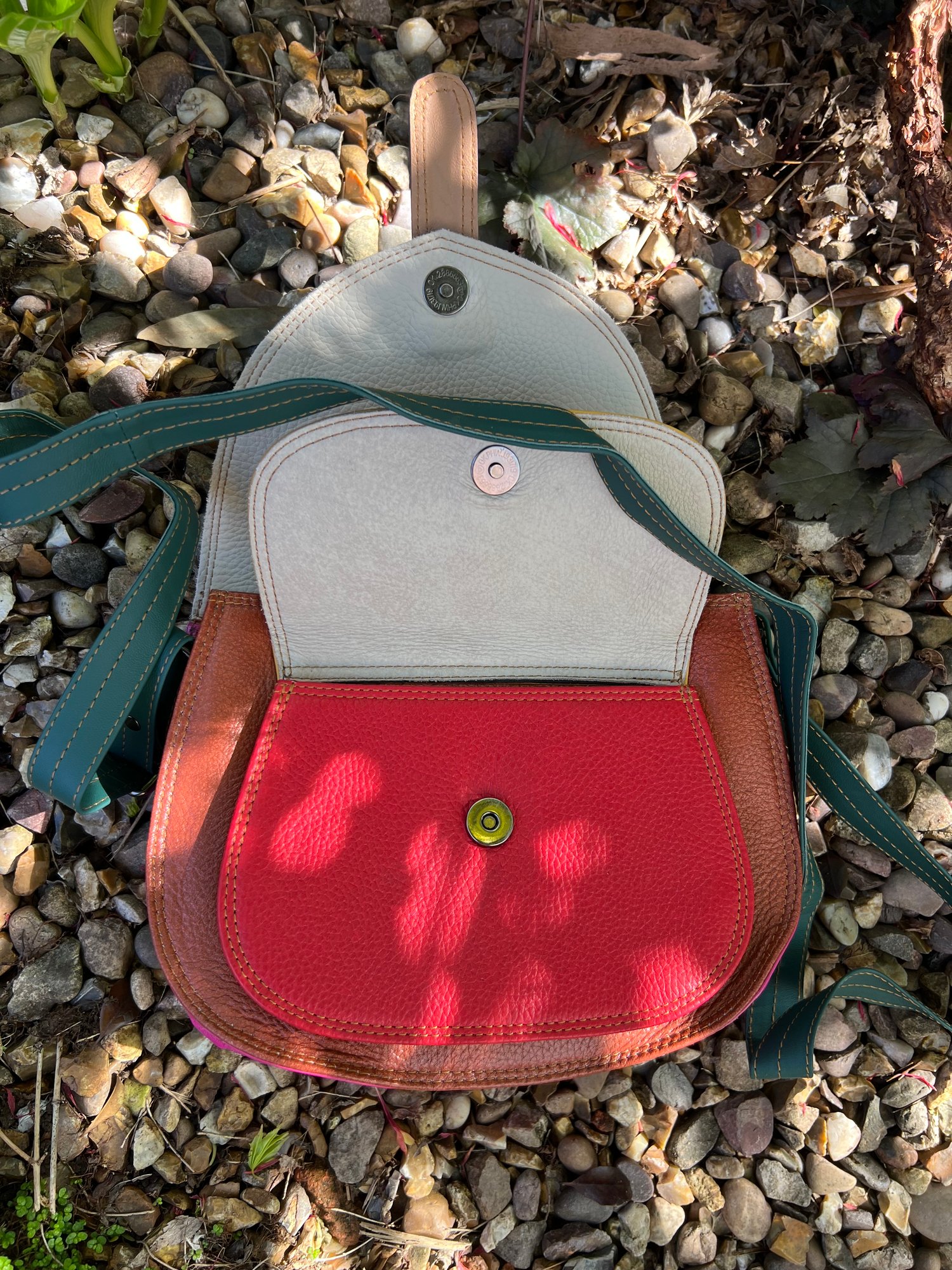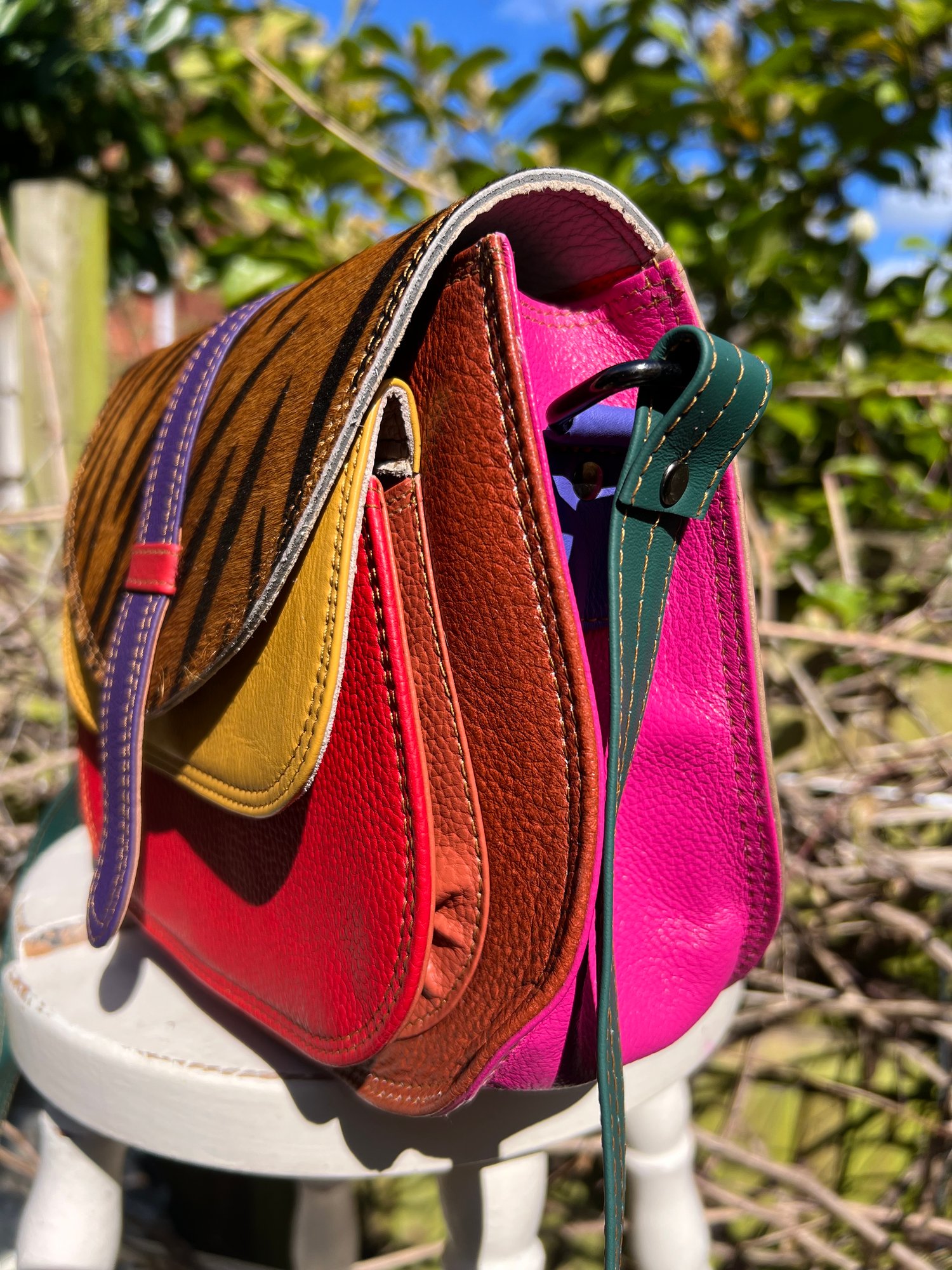 This buffalo leather bag is made from offcuts, which are collected from Indian factories. This left-over waste, which would otherwise go to landfill, is crafted into a unique, one-of-kind beautiful bag for you, whilst helping the environment with zerowaste sustainable fashion.