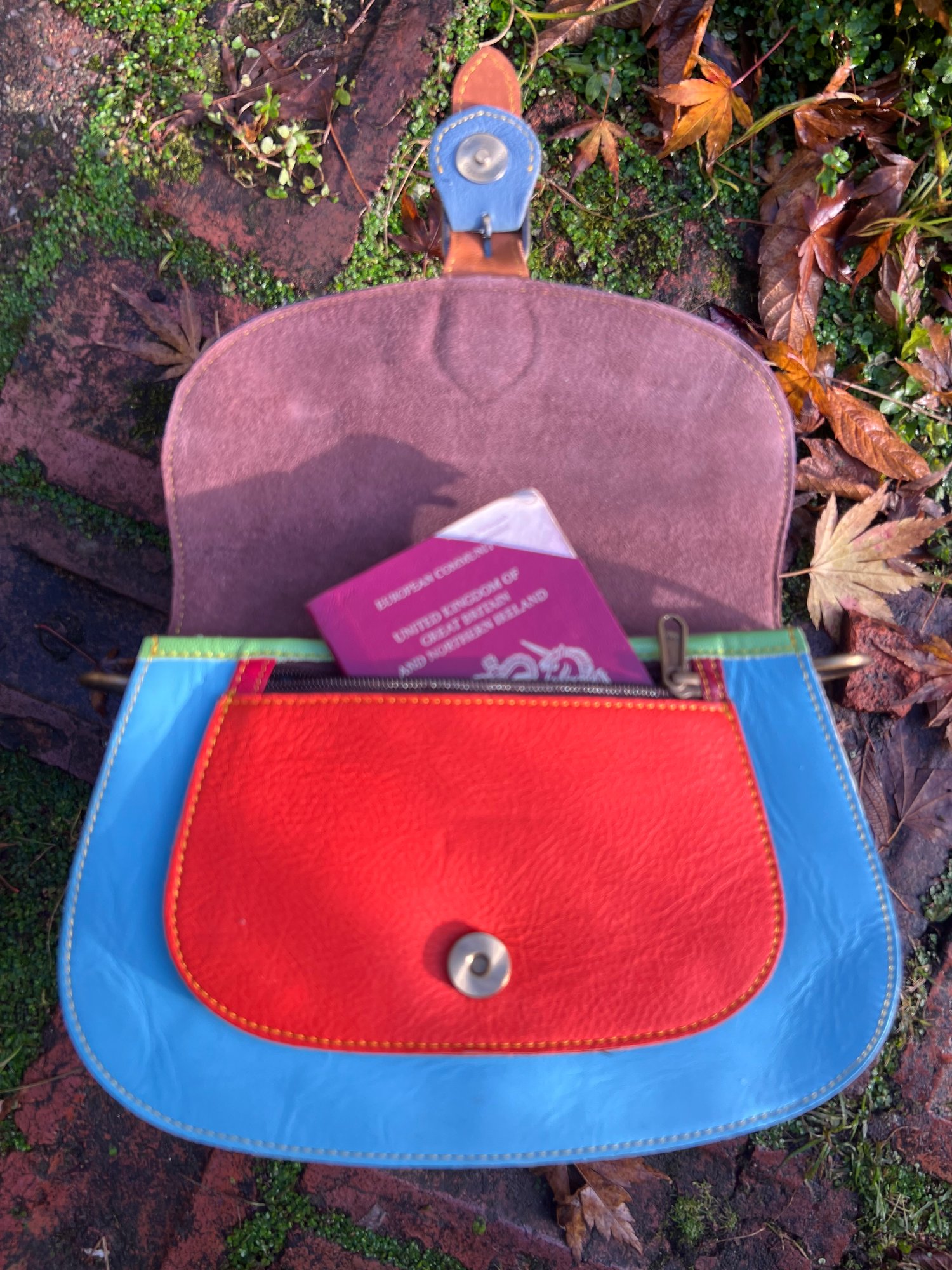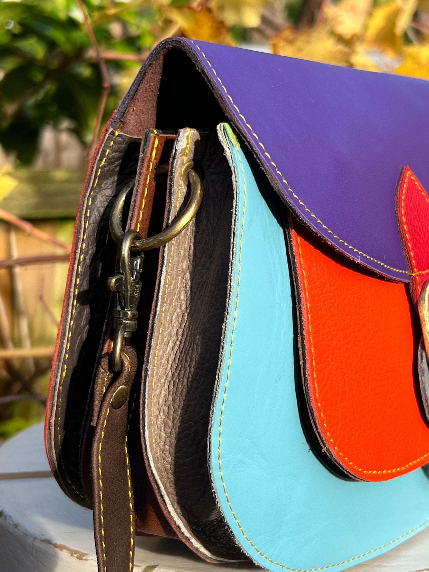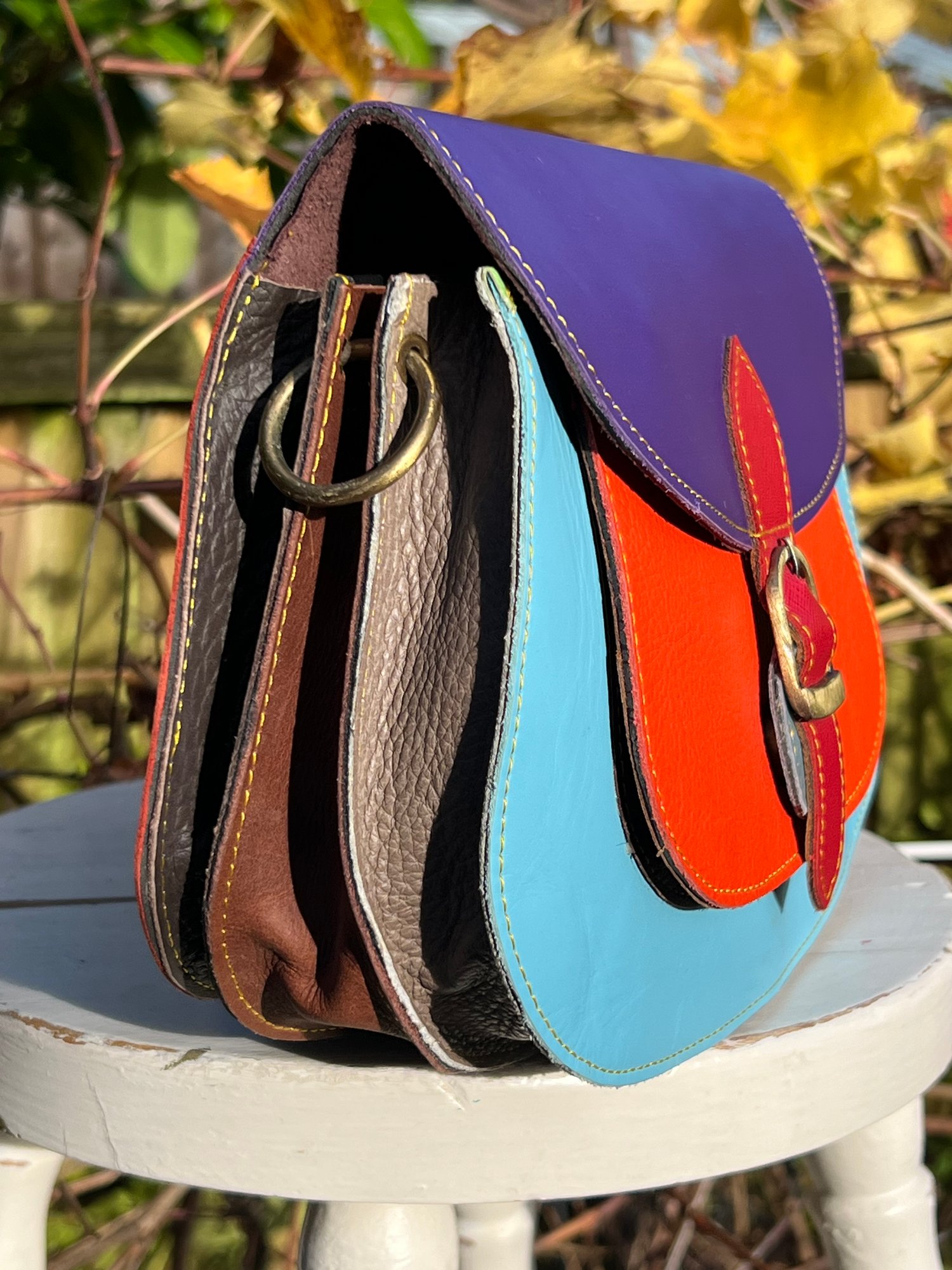 This small buffalo leather bag is made from offcuts, which are collected from Indian factories. This left-over waste, which would otherwise go to landfill, is crafted into a unique, one-of-kind beautiful bag for you, whilst helping the environment with zerowaste sustainable fashion.