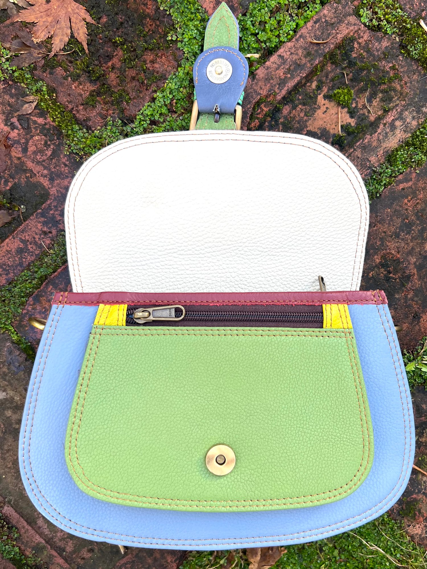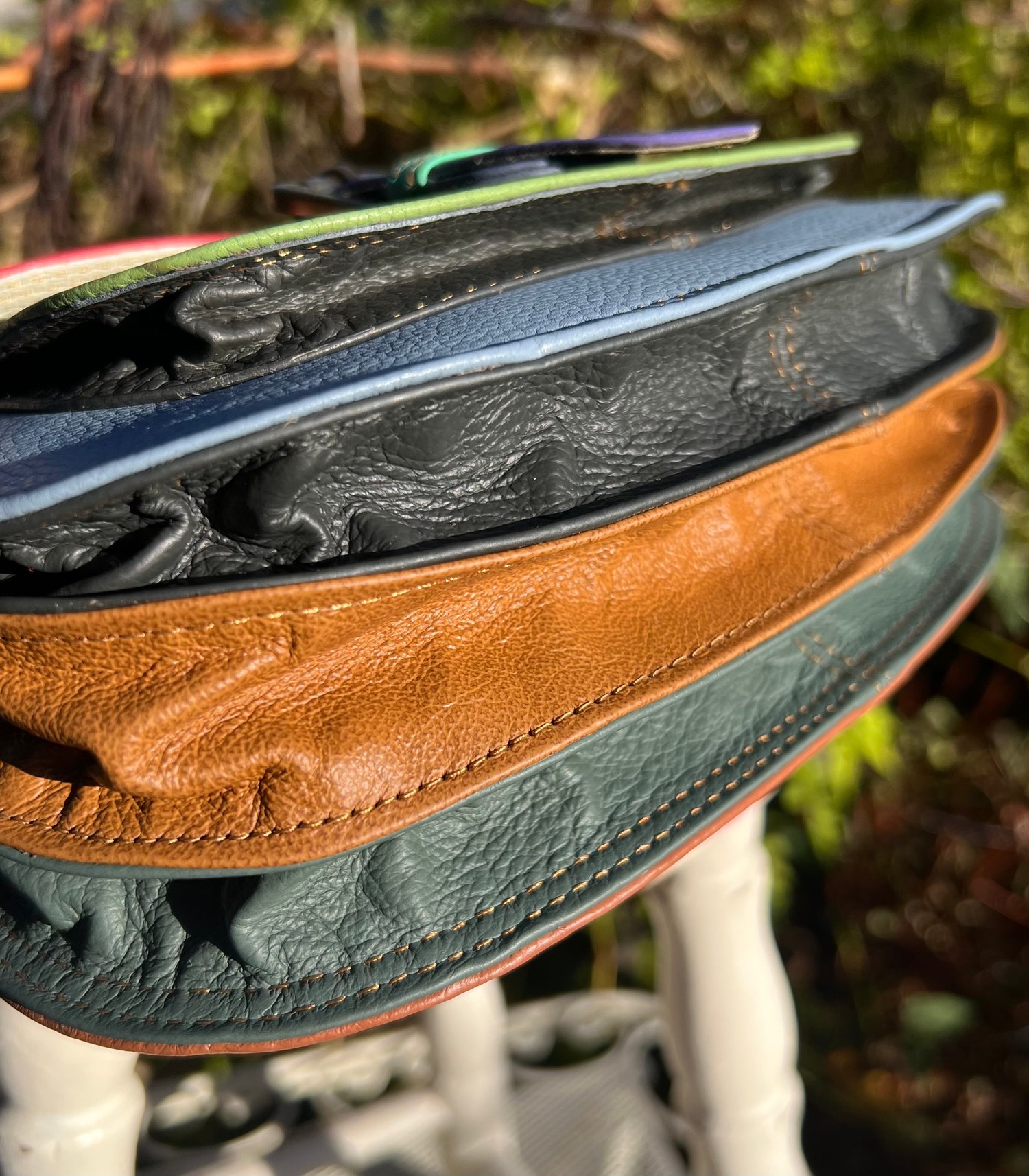 This small buffalo leather bag is made from offcuts, which are collected from Indian factories. This left-over waste, which would otherwise go to landfill, is crafted into a unique, one-of-kind beautiful bag for you, whilst helping the environment with zerowaste sustainable fashion.