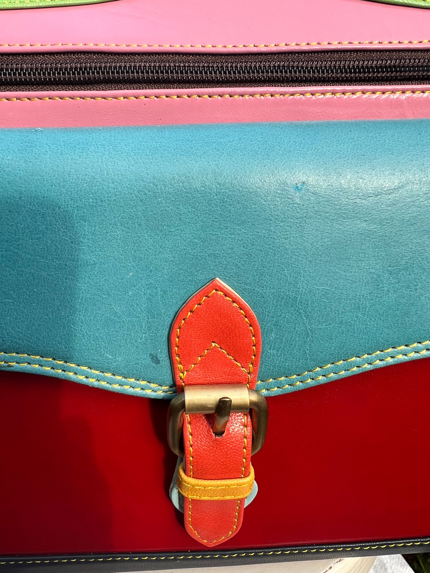 Issue - 2 small marks on front pocket plus leather a little creased on rhs.