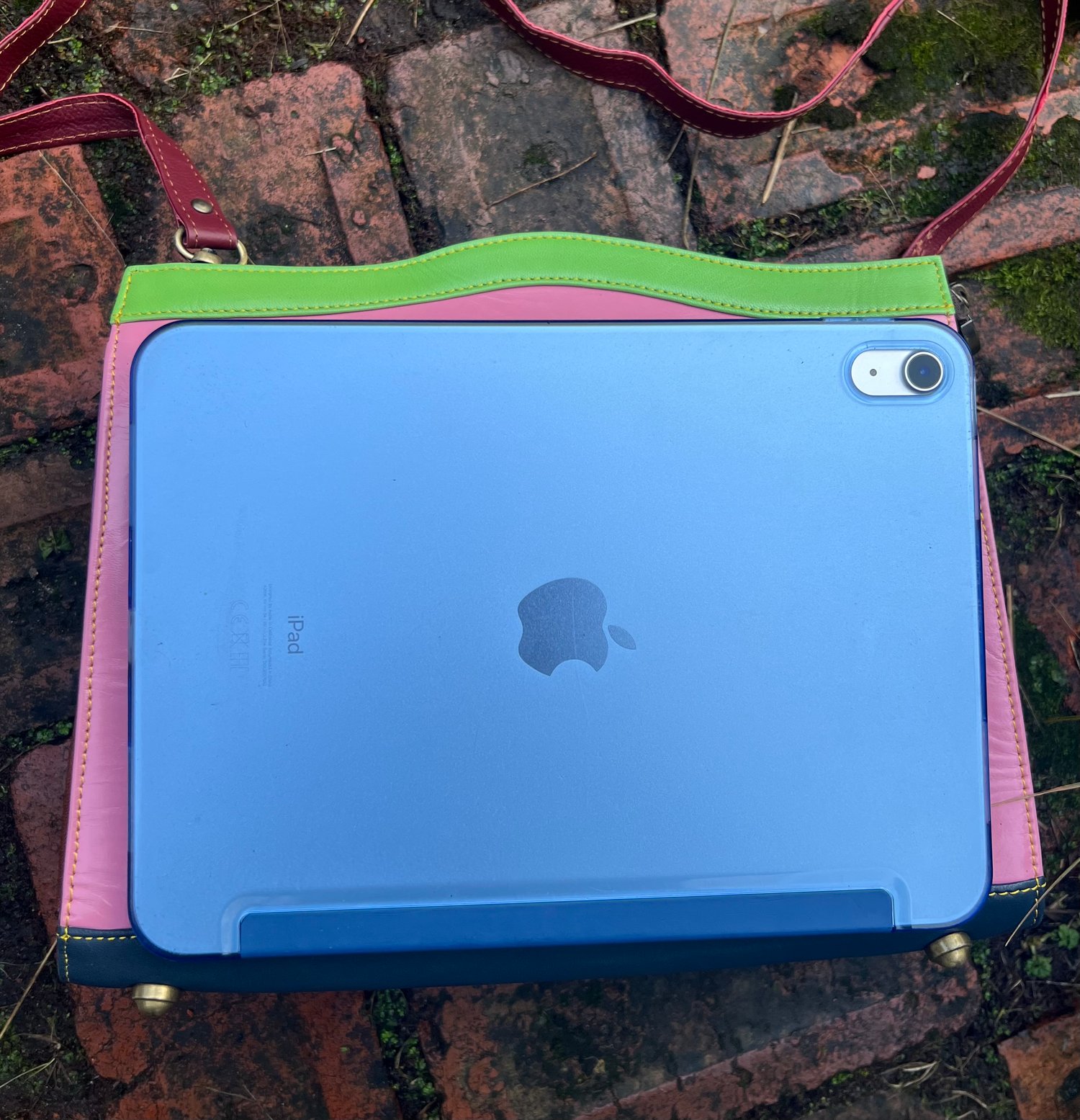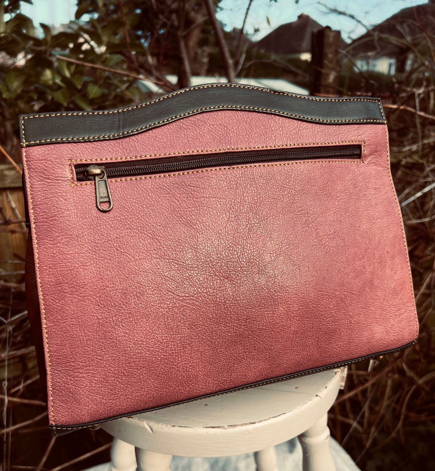 The bag is made from discarded leather offcuts and crafted into a unique one-of-a-kind bag.