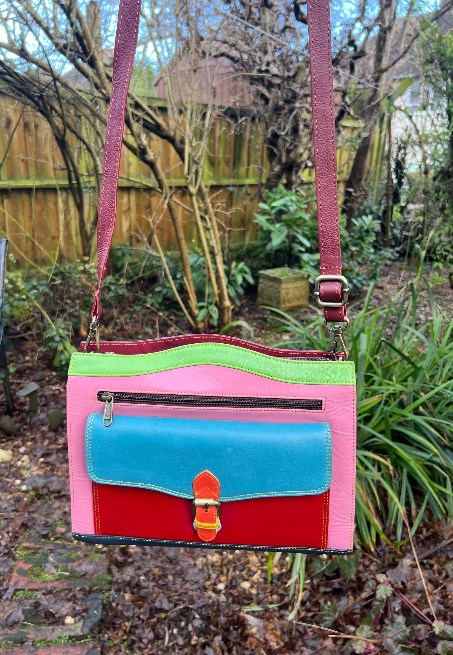 New to our Harlequin collection is this fabulously stylish bag, unusual in design and made in the most fabulous colours.