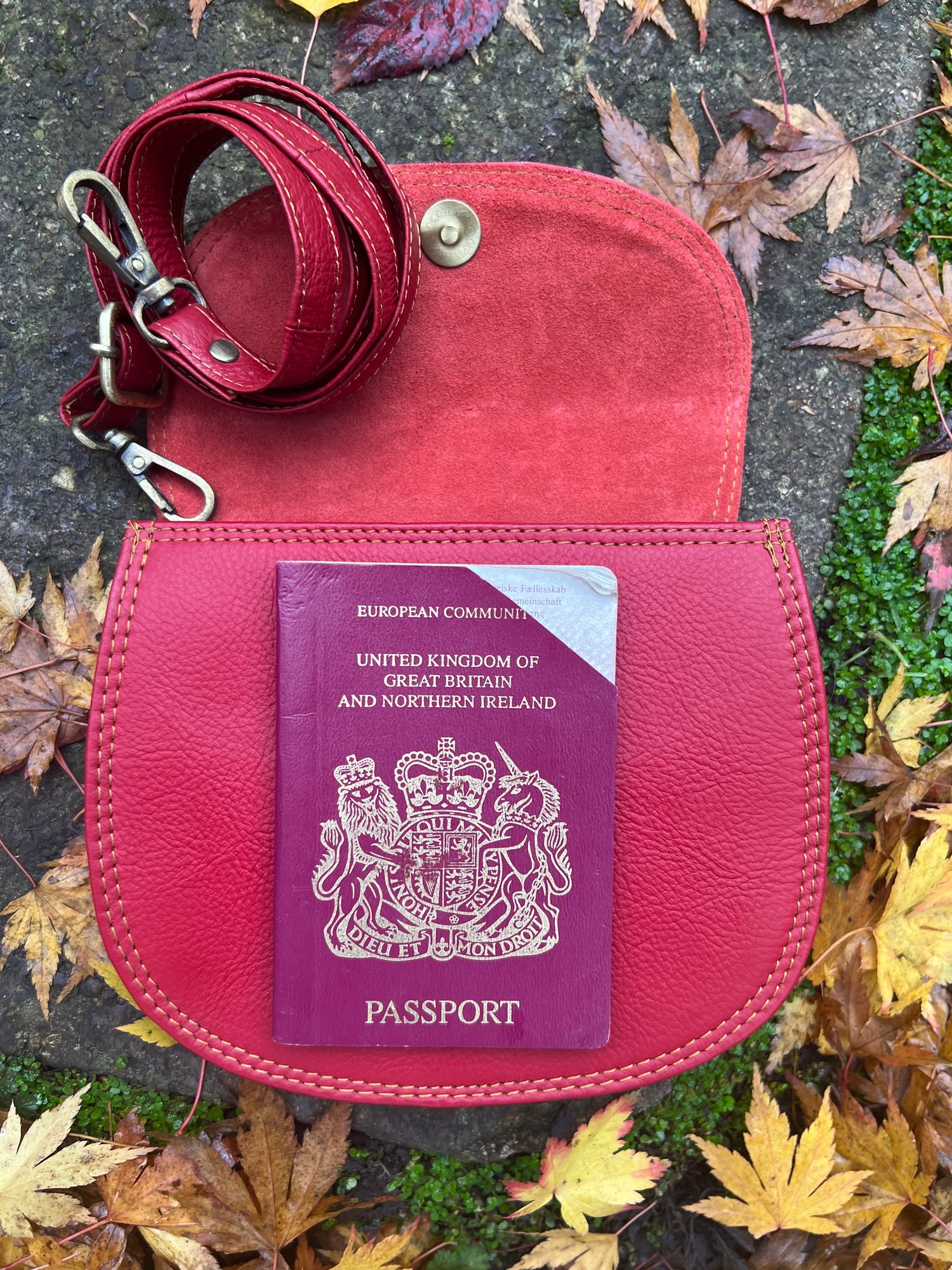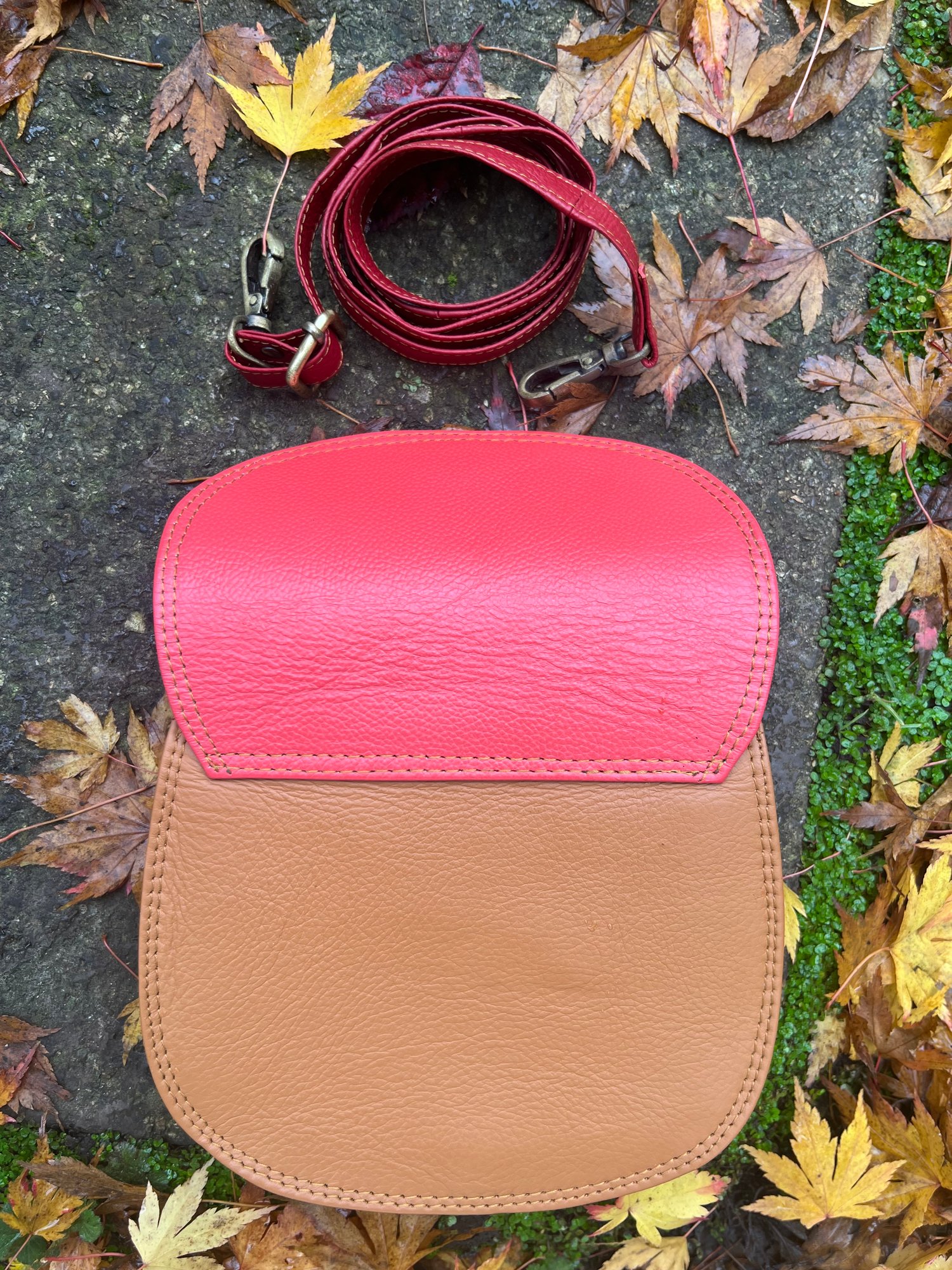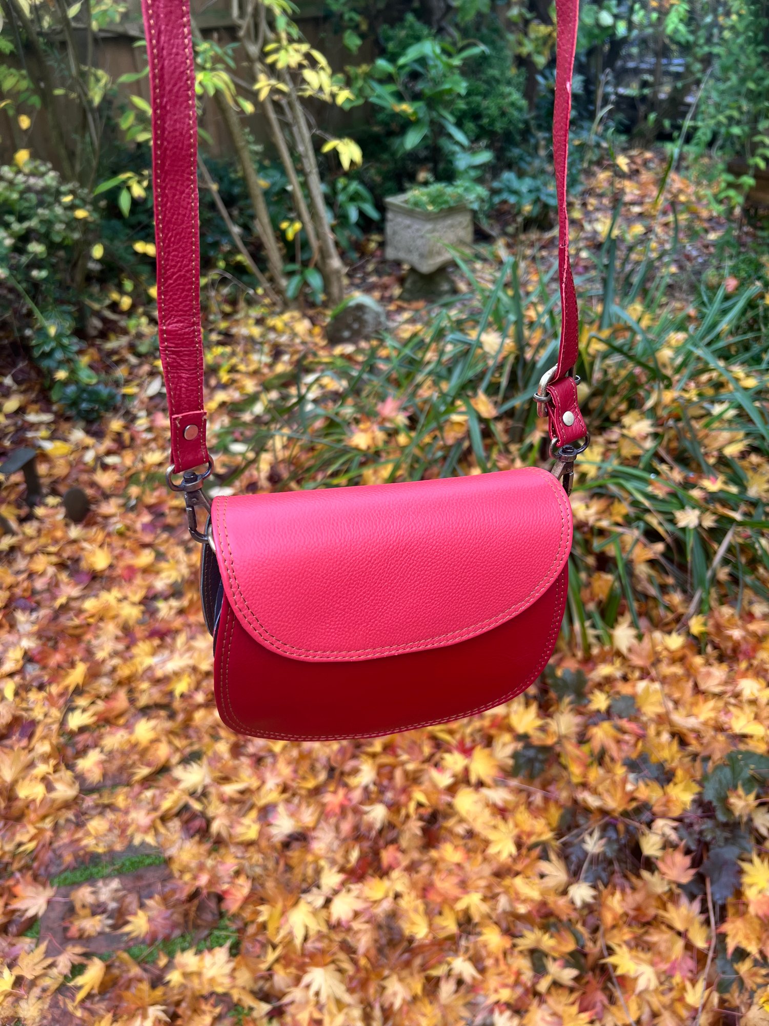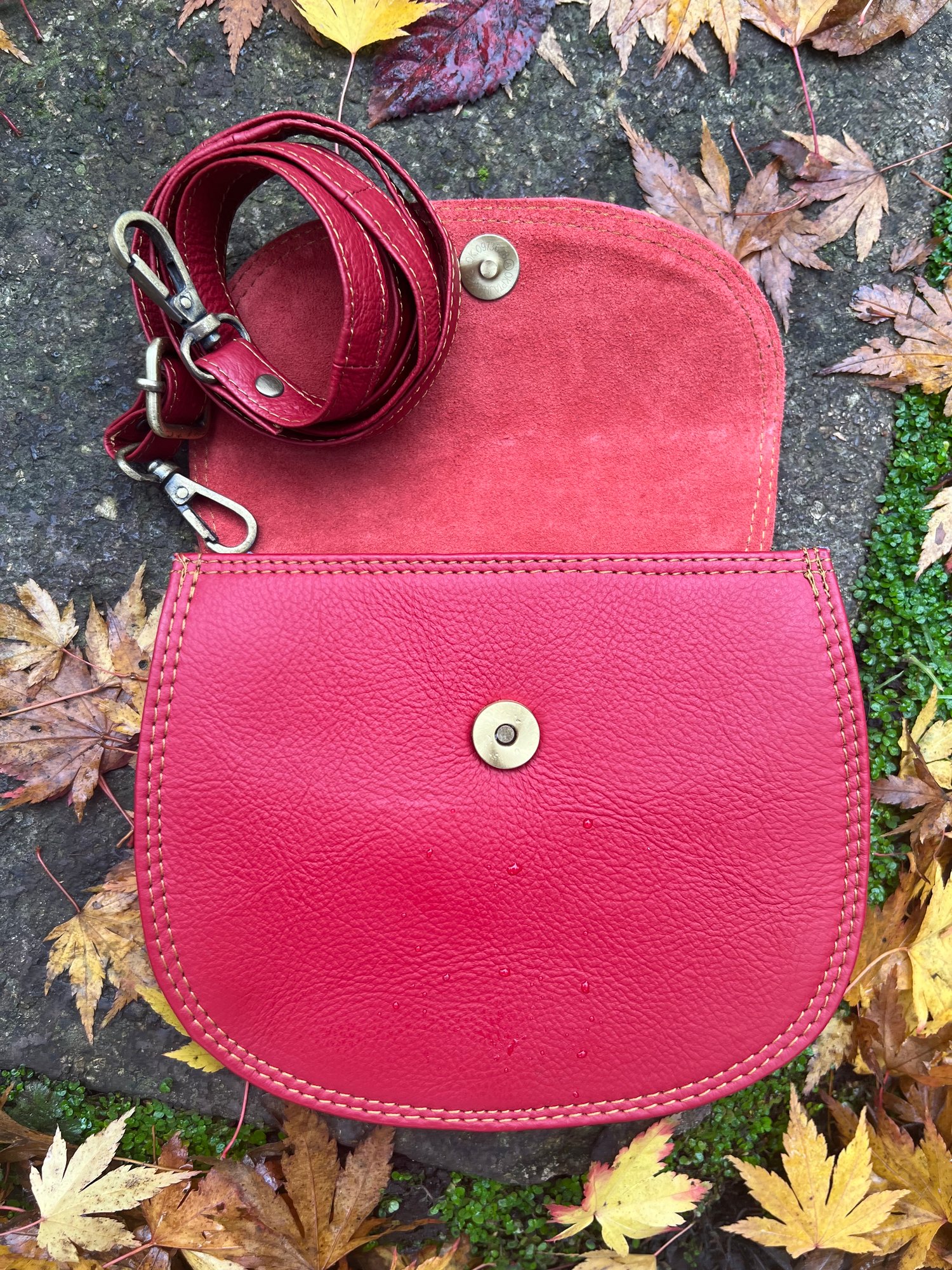 This small saddle-shaped bag is versatile, compliments all outfits and can be dressed up or down. Will easily fit your phone, purse, lippy and essentials in the three internal compartments.